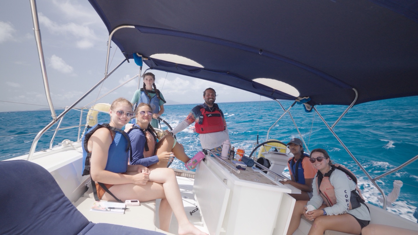 Hi everyone! It’s Coco here, taking over as skipper! Our morning started off with a later morning, around 7. For breakfast, we were delighted with Heloise and Annabelle’s delicious French toast and joined by the wonderful photographer, Dave, who has been in 2 Star Wars movies as a stormtrooper! We then set sail to Anegada (about a 2-hour ride) for an afternoon of snorkeling their many reefs! Fun fact: Anegada is only 23 ft tall, so it’s not an island you can see from afar. These reefs were beautiful, and we spotted many different creatures. Annabelle encountered a pufferfish and a sea turtle, Maya saw a hermit crab with a big yellow shell, and of course, we all saw lots of fish (my favorite were these larger rainbow ones, not sure of the name….I’ll get back to you on that one!). After Dave took amazing videos and photos of us and the reefs, he swapped his diving gear with Heloise so that she could get a piece of the action! Anyway, we all struggled to climb onto the dinghies and headed back to Hagan Time! We motored over to Savannah Bay from Anegada, about 2 hours, where pretty much everyone (Bella, Lia, Amelia, Maya, Ella, and I) took much-needed naps..we’re still adjusting to island time, these long days in the sun have been kicking our butts. At some point in the day, the generator felt the same way and gave out. Riley had been spending quite a while trying to fix it, which involved dumping out loads of “caca water” (his words, not mine). For dinner, we had chicken Caesar salad (an all-time favorite), risotto, and corn. After dinner, we moved quickly to clean up and ocean shower (where we received our clean fresh water towels, yay!!) so we could finish the third Pirates of the Caribbean movie and enjoy Bella’s brownies once again!! Good night!
