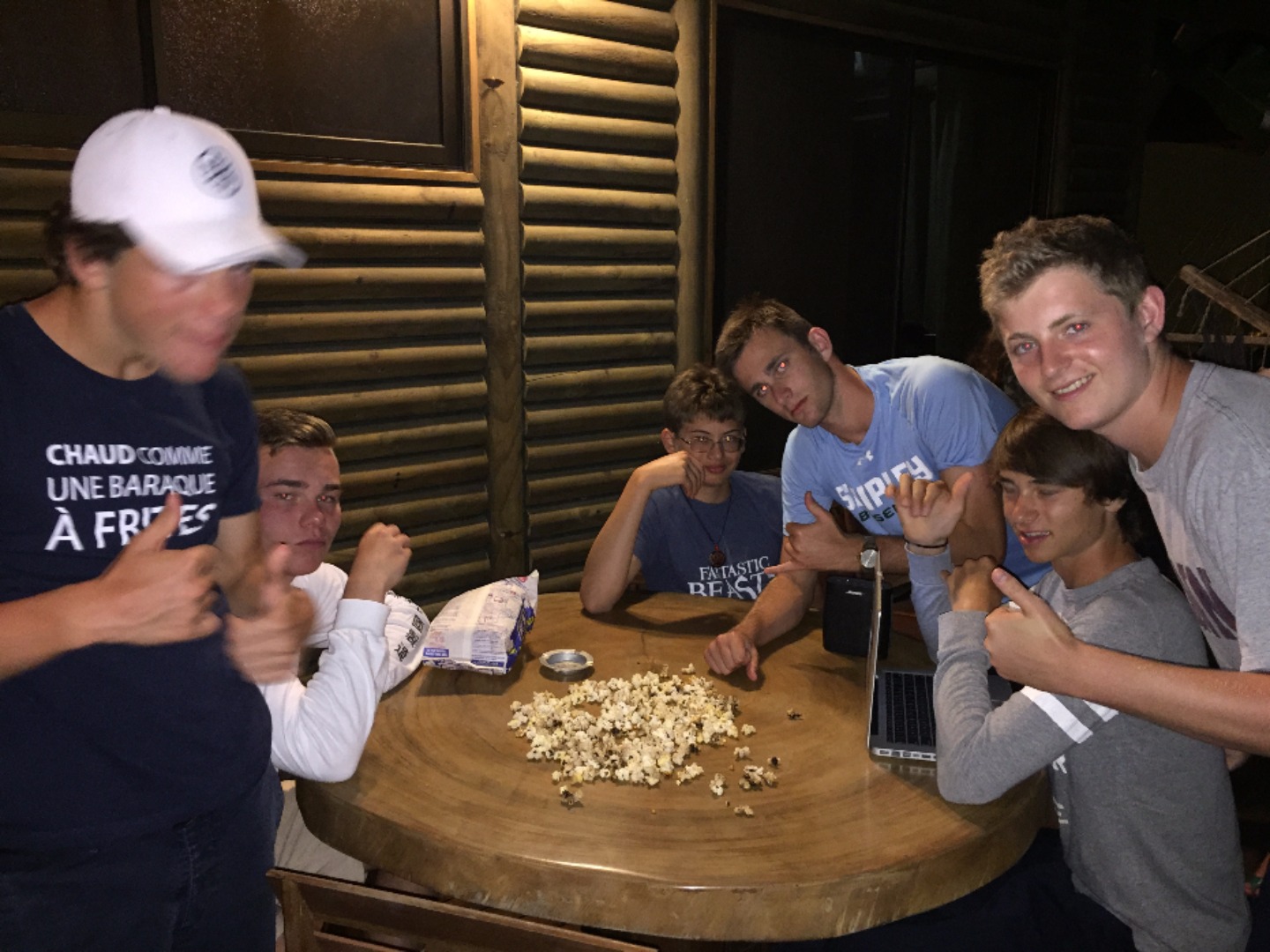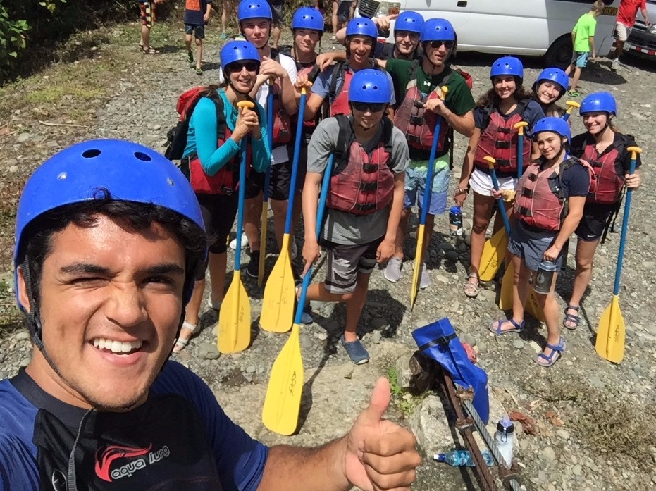 Today we had an early start; we woke up at 6 to get packing and ready to move hotels. We drove to a river rafting office, with whom we were going to spend most of the day. On the way, our tour guide showed us many wonders of the surrounding ecosystem. Luckily, he showed us things like teak oil which when crushed turns a leaf from green to red. In addition to that, he showed us a breath-taking, astonishing banana spider, it’s web is so strong that it can be used as fishing line, and sometimes even bulletproof vests. After the 1.5-hour trip to the start of the river, we decided to get on that stream and have fun. After a ride downstream, we got off the raft and got splashoodled by several wet water falling molecules in the form of a waterfall. The guides capsized our boat and proceeded to chop pineapples and put cookies on it as a snack. When we got to the end of the river, we ate a scrumptious lunch of rice/beans (how were we not surprised). We then took the bus to two bungalows; probably the best place we have stayed so far. They have Wi-Fi, TV, hot water, AC and even a pool equipped with a water slide. Then we cooked dinner. We burned the popcorn afterward, but we managed to eat the good pieces. Btw, a shout-out to big poppa, the Pope, rip Mohammed Ali, Gandhi and Moses; wish they were all alive to see this…