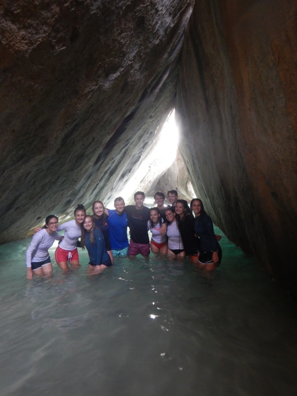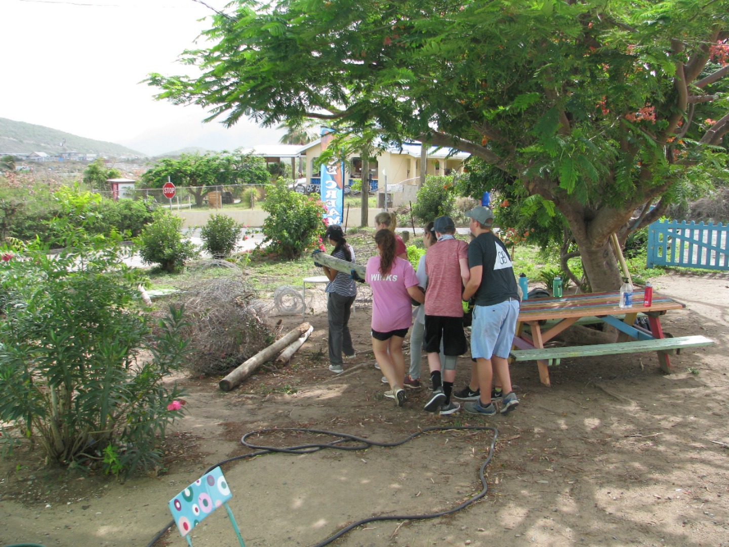 Today had a long morning, but a short and sweet afternoon. It started early once again, and we headed off to the Valley Day school, but not before losing Jamie and some of our group to a clinic run. The remaining group split off after arriving at Valley Day School, with David maintaining the charge of the Valley Day crew, and Elliot breaking off to finish the swing set at Little Rainbows School. First, we ripped out the old fence, which had ingrained itself in some trees and posts. While that was completed quickly, the rest of the morning proved a challenge: putting in the new fence. We managed to get the posts in, but we could not link on the actual wire. The Valley Day crew soon learned that the Little Rainbow group faced similar results; they were not able to finish the swing set. However, we quickly boosted morale with some local ice cream. After this, the crew was able to contact our families for the first time in days and were granted two hours of time to explore Spanish Town. After, the entire group (having met up with Jamie) went to The Baths. They were stunning, and David led us through its labyrinth, from the jumping rock to Devil’s Bay at the end. We ended the day with a satisfying veggie burger barbecue. Altogether, while still fun, today reminded the entire group that we still had a lot to do in the upcoming days!