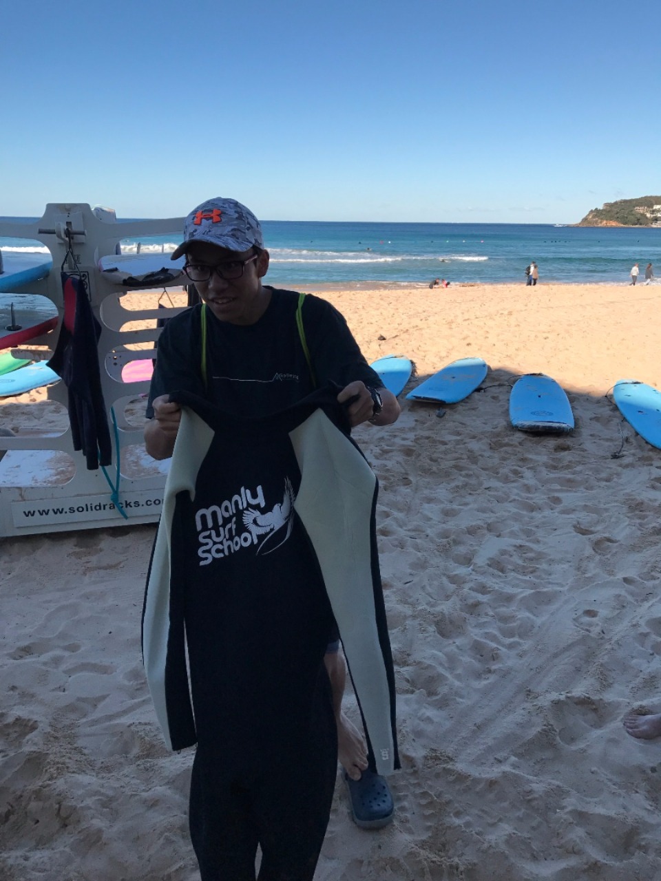 Technically, today was Day 3 of the trip because of our travel days, but it was the first day that we met as a whole group. After we all got together at the airport, we went into two shuttle buses to get to our hostel – Bondi Beach YHA. Being a bit behind schedule due to the traffic near the airport, we didn’t have much time to go over the orientation, so we just introduced ourselves and then rushed into one of the public buses to get to our ferry. Sydney’s temperature was much colder than what all of us had packed for. While already turning into a popsicle on the side of a street we couldn’t imagine what it would be like on the way back after we surfed. Luckily, even with the tight schedule, we managed to still make it in time for our surf lesson at Manly Surf School. Some of us were already experienced in surfing, but most of us didn’t know how to surf. I was able to stand a few times today on the surfboard but getting knocked back by the waves continuously made it hard to get back out into the ocean. We turned in our phones today, which was a good thing even if it is our safety blanket. We all started socializing more once our phones were taken away…we became humans. Tomorrow we visit the Sydney Opera House which will be a first time for me. That’s it for the first of many blogs of this GoBeyond trip and yes…I’m still alive mom.