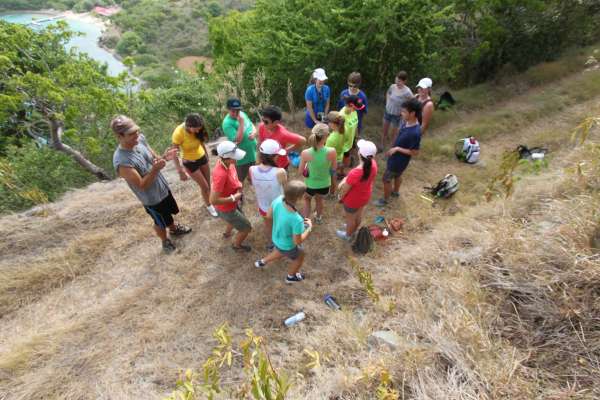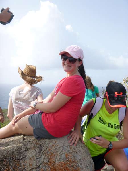 After that game, we embarked on the other half of our hike. After the 12 minutes really steep hike we finally got to the top of Spyglass mountain. We spent about half an hour looking at the spectacular views on the top of the mountain and did a Lifeworks activity. Then we hiked down the mountain. We got to the dock and went back to the boat. After that long hike, we jumped in the water for a bit and then got ready to for a very long sail to Savannah Bay on Virgin Gorda Island. We motored for about 2 hours and then started to sail. We had a leisurely sail for about 2 hours. We finally got to Savannah Bay and as soon as we anchored, we all jumped right into the water. We then decided to go to the beach and play Frisbee and football in the water. After an hour on the beach, we got back to the boat and started making dinner of cheesy Alfredo pasta. After dinner, we did an organization activity. Then we all went to bed. We’re having so much fun volunteering in BVI!