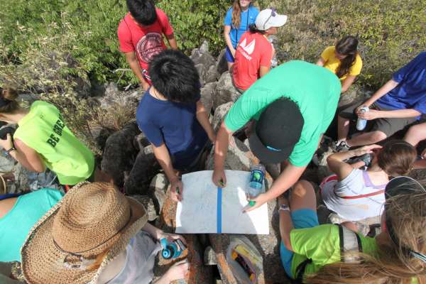 Today was a very ACTIVE day! We woke up at around 6:45 and had amazing eggs made by a shipmate, Nick D. After breakfast we got all of our hiking gear on, made sure we put on a lot of sunscreen and filled up our water bottles to the brim. We got into our two dinghies, Azul and Smoke, and motored over to the loading dock in The Bight. We piled on to the docks and then set off on our short but very steep hike. From the start of the hike, we all knew that this would be a very sweaty hike hence the title of this blog entry. After probably the hardest and steepest hike I have ever done in my life, we got to the road which marks the half of the hike. We did a name game for the two new shipmates from Thailand.