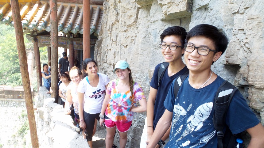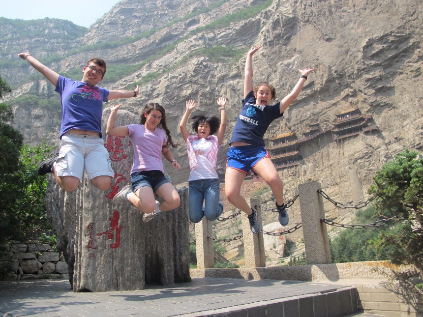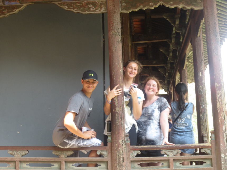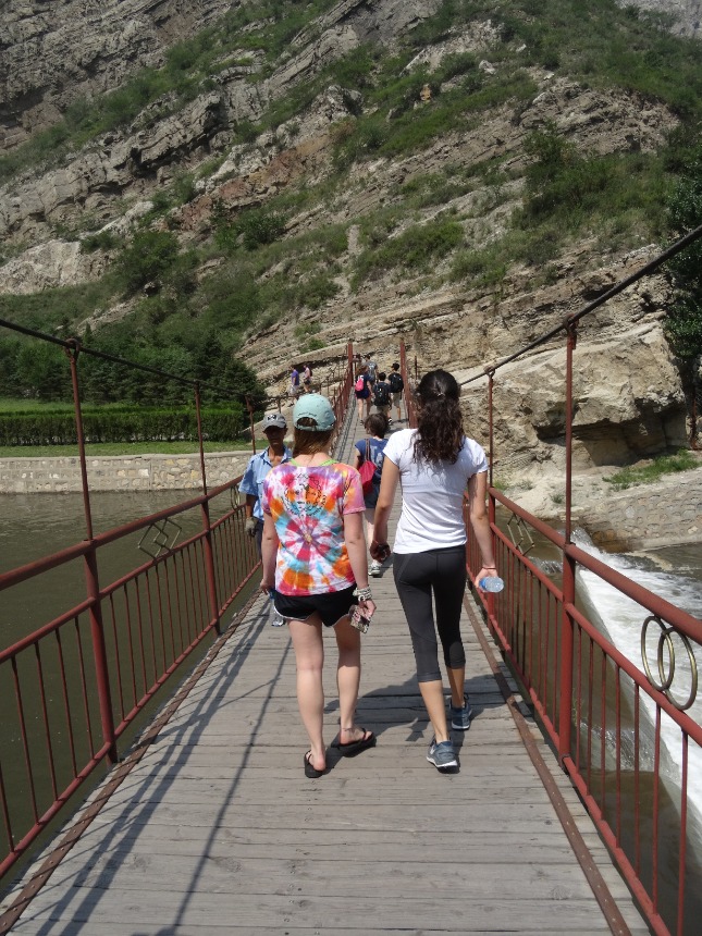 Today we had to travel a lot, but it was fun on the bus. First, we woke up in the beautiful hotel rooms we stayed in overnight then headed down to breakfast which was a sandwich veggie egg thing. Then went back on our bus to head off to the hanging monastery. It was magnificent. This building was constructed on the side of a mountain hundreds of years before modern heavy machinery was created. We spent about 1 hour there then went to lunch which was a pork onion sandwich on the go. Everybody loved it. Next, we had a long drive to a state-run orphanage and got to spend about an hour with the children there, which felt so rewarding and fulfilling to help them. We weren’t allowed to take pictures though. After that, we ate dinner at the most delicious noodles restaurant. We had broccoli, watermelon, beef cones and of course noodles with a choice of 3 sauces; pork, tomato, and mushroom. Then we ended our day with a traditional squeeze question and props. Then lastly we headed off to sleep in another hotel.