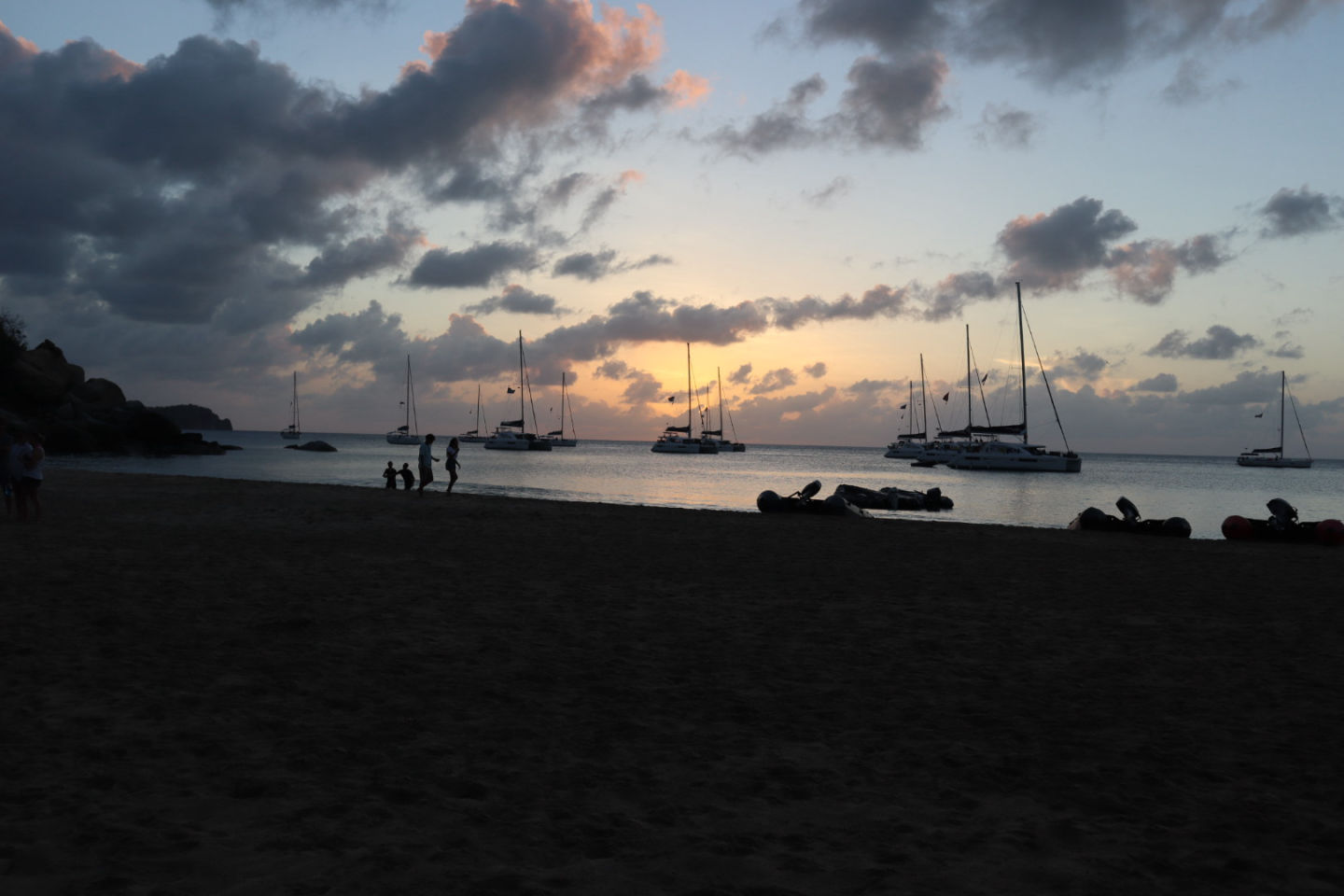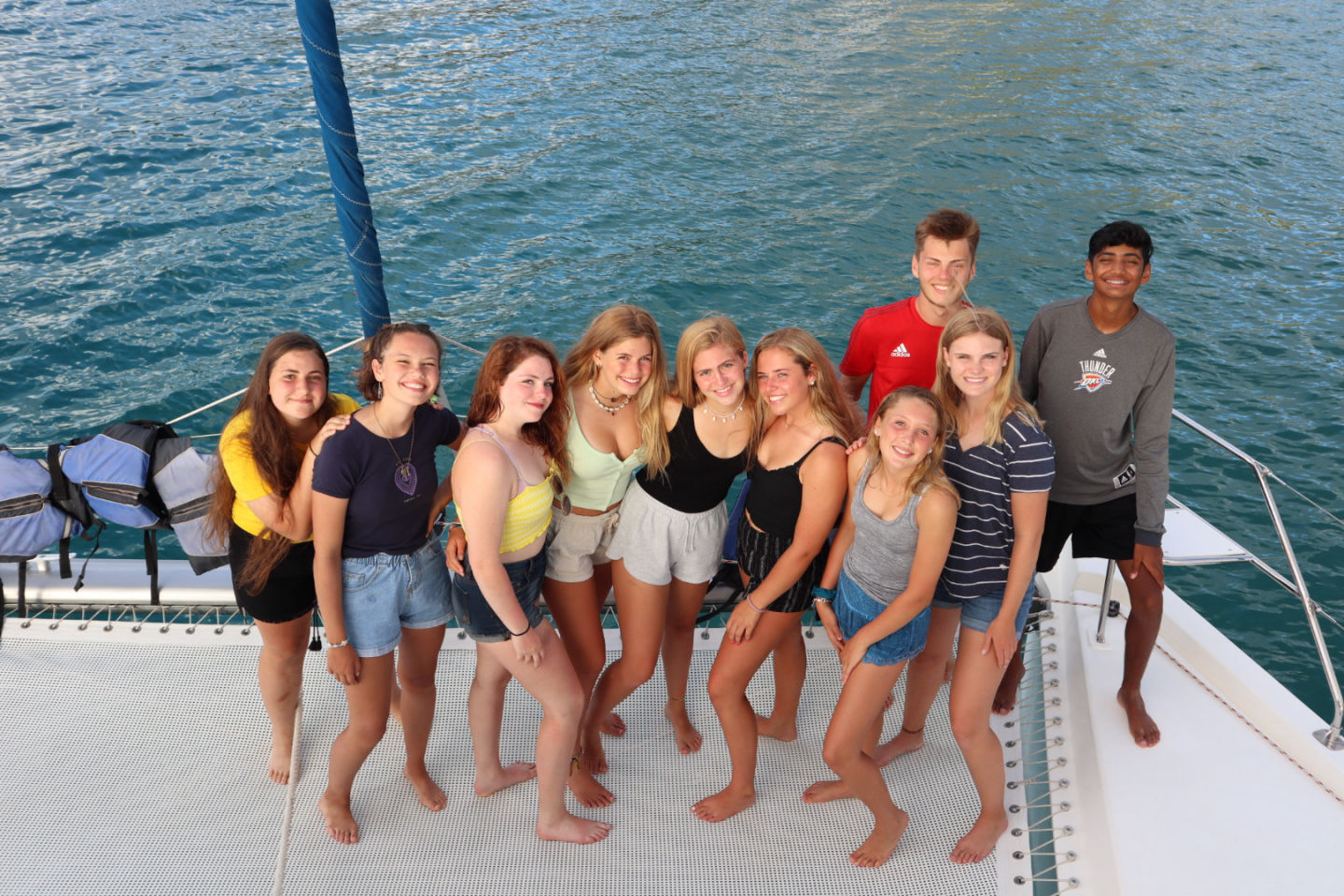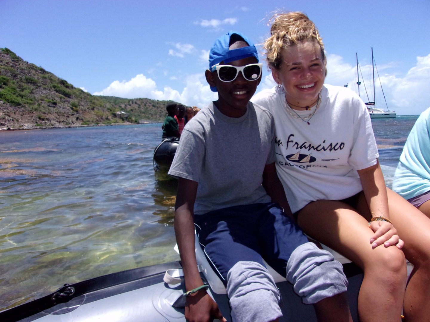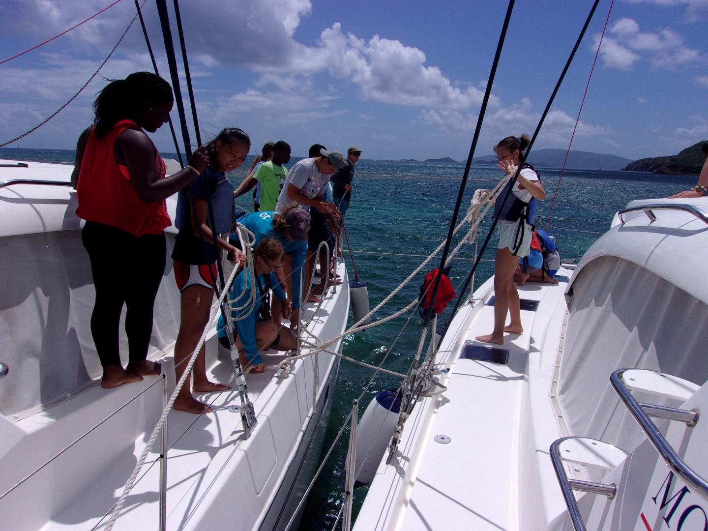 After we cleaned up as much of the beach as we could we headed back to the boat where we sailed back to Trellis Bay to drop the kids off. We then had shore time and got our phones. Around 4:00 PM, we went back to our catamaran and got ready for the beach barbecue. We headed to the beach where our boat and all of the other boats, including the ActionQuest program, would be. We ate food and made friends from other boats. After being there a few hours we were tired and got back on our dinghy to go back to our boat. Before bed, we got to watch a movie. We all gathered on the blue lagoon (my favorite sleeping spot) and watched The Hunger Games. After the long, exhilarating movie, we all got into our sleeping spots and went to bed.