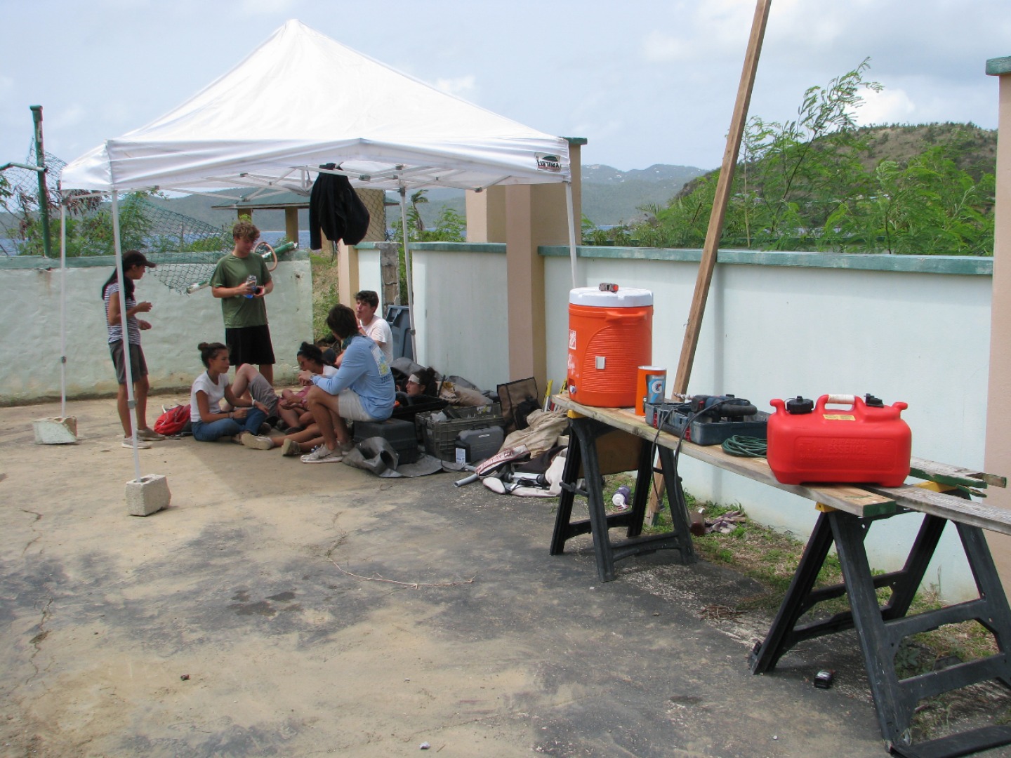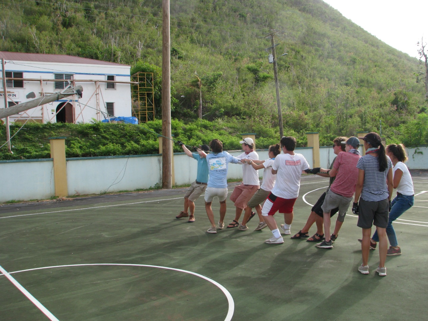 So generally the person writing the blog would be the skipper of the day… Today, I am the Terrestrial Leader, since we are living in a villa, not on a boat. Anyways, we got our day started on the worksite at around 8:00. The park that we are rebuilding needs a lot of work done to even look like a park again. Jamie, Elise, Clem, and I were on removing the weeds from around. While David and Isaac worked on the bleachers, and Jaden, Stefan, and Chase were all over the place with their jobs. Everyone was hard at work all morning, so a lot got done. The entrance to the basketball court is almost completely cleared and tamed which looks amazing! Jaden, Elliot, and David are still at a roadblock on how to get through the 7 inches of concrete without a jackhammer. Around 1:00, when the hottest part of the day comes rolling around, we take a two-hour break. During this break we eat some lunch at the villa, we can shower, nap, walk around with a buddy, and according to Elliot, stare at the ocean on the rock peak. While all the guys went to the docks, the girls and I stayed back to nap, and I did just stare at the ocean for a while. We returned to work around 3:00, continuing the handwork in the not so hot heat. The people from Preserving Paradise came on in to help clean up the grasses around the cement wall. Moving on, Jamie and I found a Barbie doll that was on a telephone pole, so I told her to grab it. And as I am on the other side of the wall, I just begin to see the legs of the barbie moving but can’t see Jamie’s head. Jamie comes back and says that there is a huge screw through the abdomen of this Barbie doll and that it can’t be taken off. So a staff member from preserving paradise goes and rips off one of the legs. It was a “have to be there” moment, but it honestly was so funny. Preserving Paradise left around 6:00 and we stayed until 7:30 or so. We came back to the villa, and we all watched Jaden be Yoda. Walking around with a walking stick and sitting criss-cross wherever he could, it was pretty weird. It was a really fun night; everyone was just cracking up all of dinner.