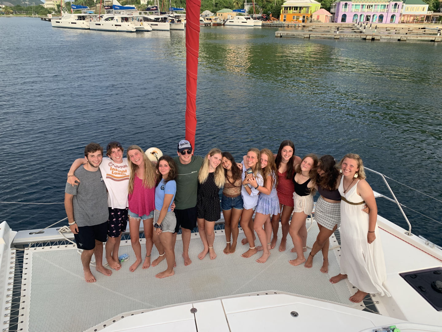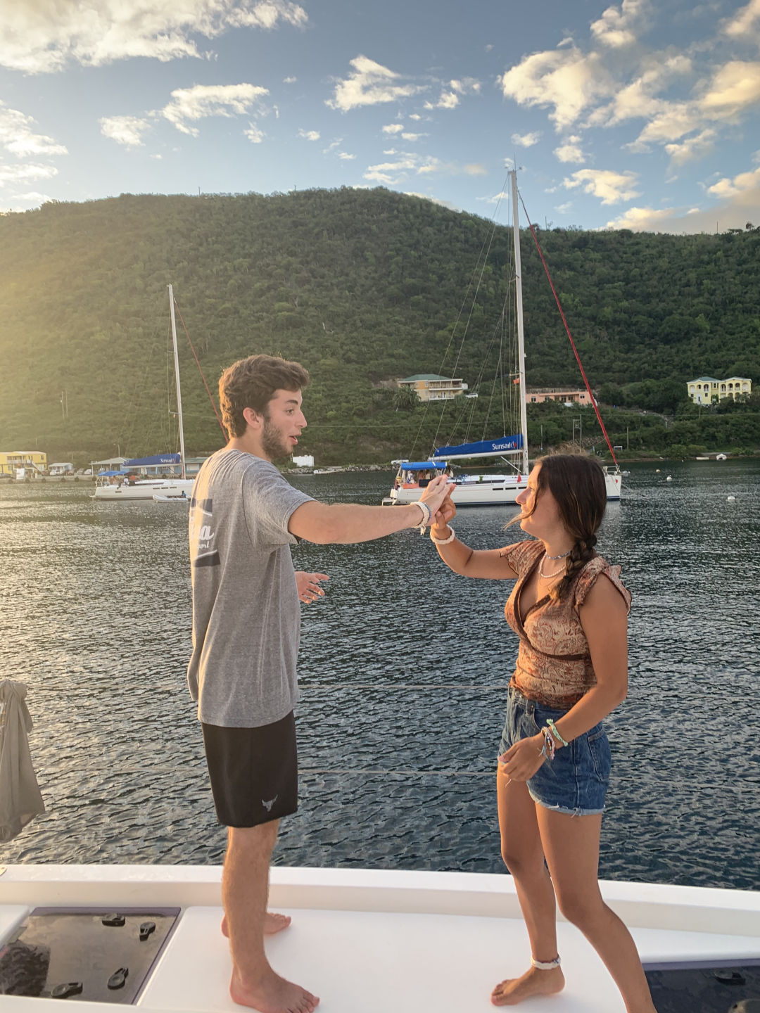 Today began with a casual wake-up at a reasonable hour. To fulfill my duty as the skipper, I was taken to a meeting with 1 skipper and their staff from 7 other boats in our fleet. The purpose of this meeting was to prepare for our big race from Sandy Spit to West End. After the meeting, the race began, and with hopes high, we rushed to raise our sails and begin the journey. After a great start, we sang songs and shouted at other boats as we swiftly passed by our competitors and won the race in a clear victory. After celebrating our victory, we quickly began our next race, the cleaning. We spread out amongst the ship and put all of our newfound skills to the test as we truly appreciated the ship. Toilets were cleaned, floors were brushed, and suitcases were filled. Now with spirits high, having won our race and now on a superbly clean boat, we continued on with our day. To end the trip, right where it started, we met back up with Action Quest for a grand BBQ. Drinks were drunk, and food was eaten as conversations from past friends were told. To end off this amazing send-off of our journey, we gathered back on our freshly cleaned boat and congregated with happiness and also sadness due to the knowledge of what is to come in the morning. But with great effort to ignore what is to come, we ended the night with card games, great talks, and a terrific dance party.
