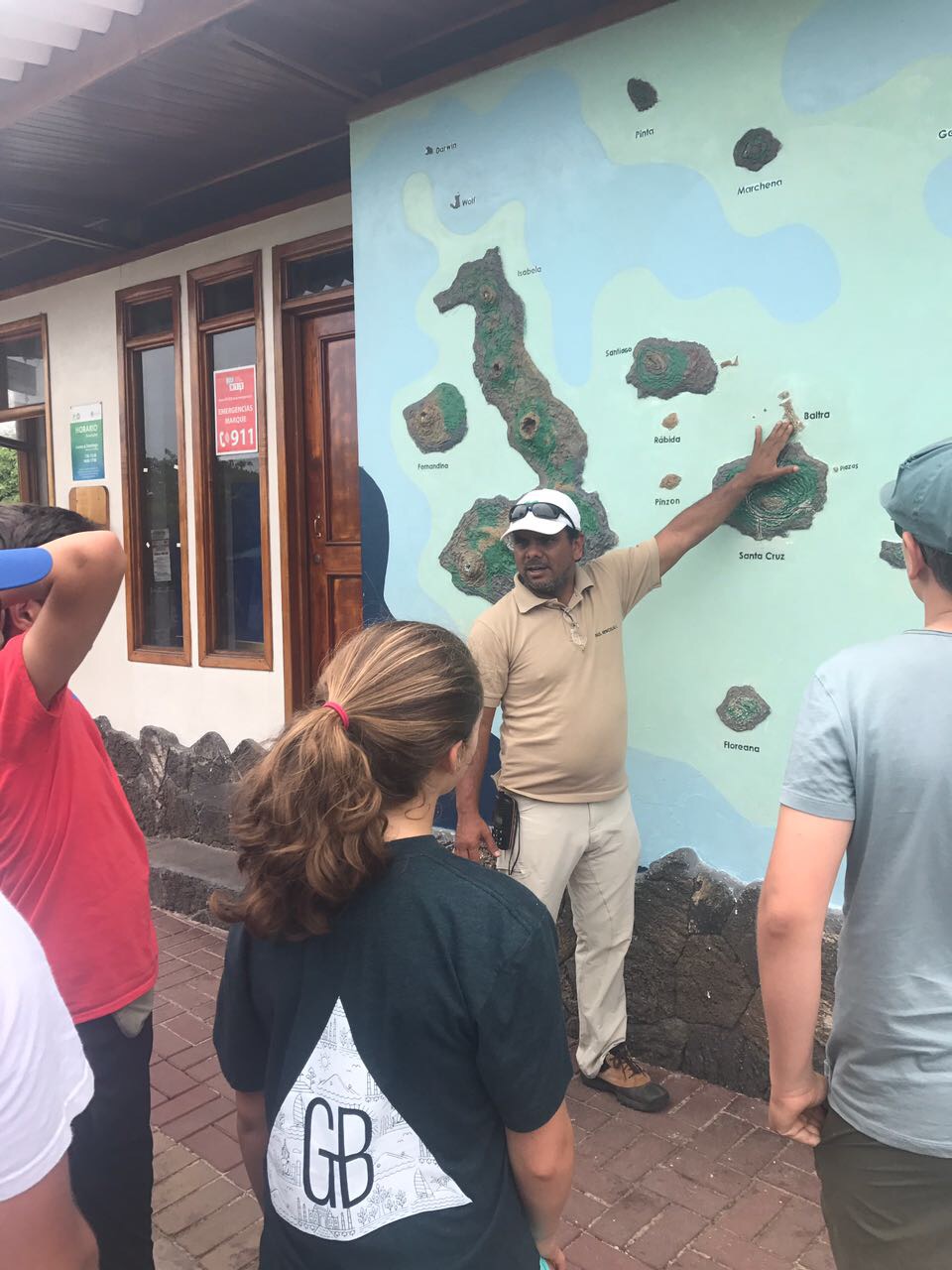 We woke up at the early time of 3:30 to get to our flight to the Galapagos. Once we arrived in the Galapagos, we headed to the boat. On our way there, we stopped at the “Los Gemelos” craters or the same twin craters. After the nice stop, we continued on our way to the catamaran, which would become our home for the next four days. Before boarding the Panga that took us to the boat, we were greeted by a curious sea lion. The sight of this adorable creature brought smiles to everyone’s’ faces. Once we arrived on the boat, we got the lay of the land, had a delicious lunch of spaghetti and then had a meeting about our plans for the next few days. Our guide, who is a certified naturalist, took us on land and showed us around Darwin’s center and taught us about the many plants and animals that the Galapagos has to offer, like the tortoises. We then walked around the town. We came back to the boat and finished the day off with some dinner and a game of cards. Today was a very nice day to travel, and all eight of us enjoyed our first day in the majestic Galápagos Islands.