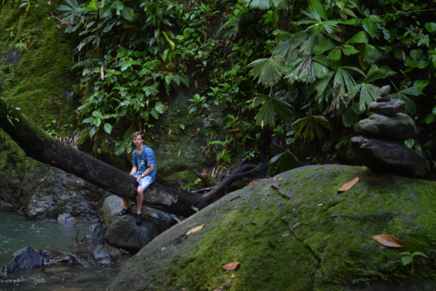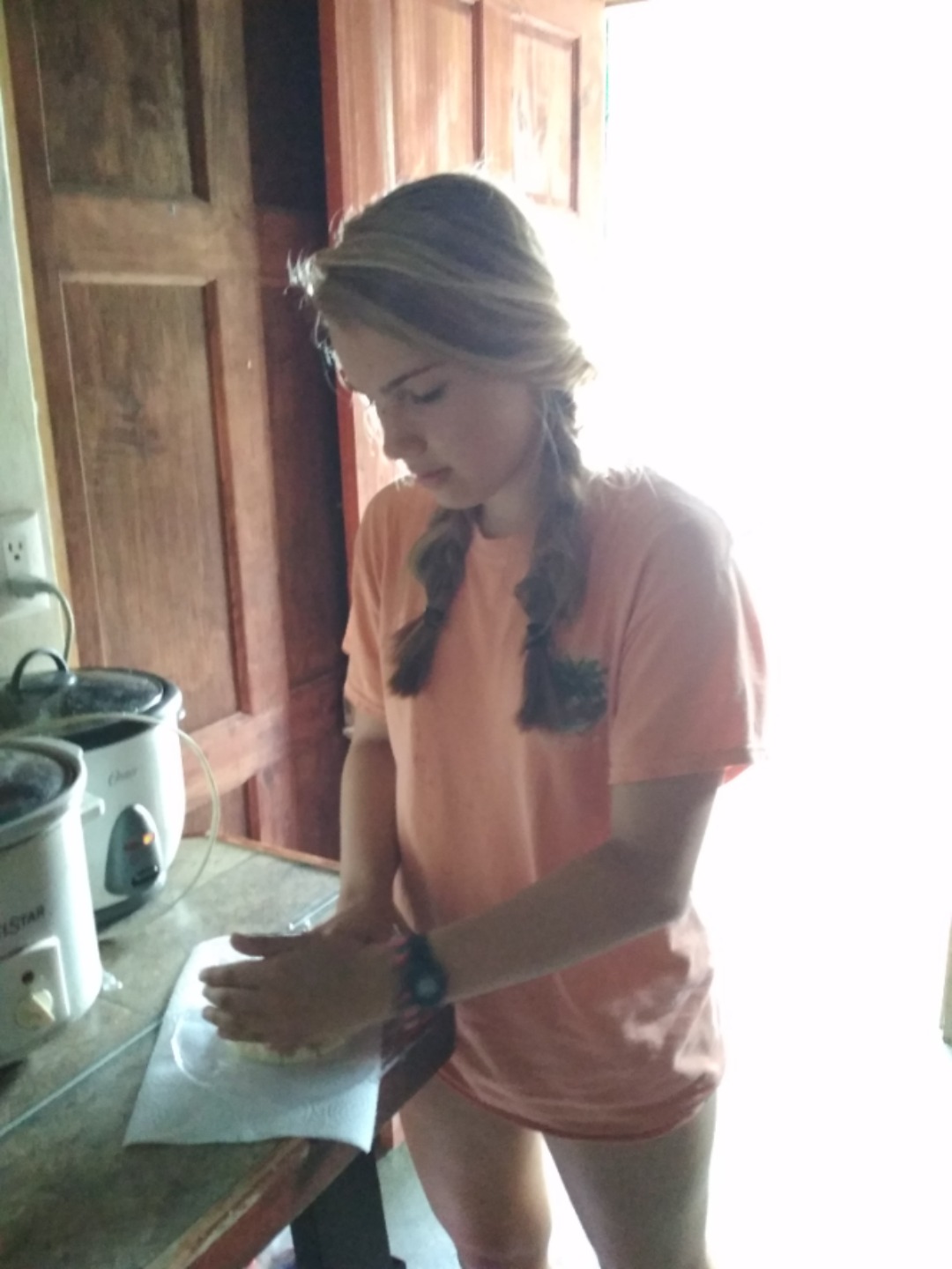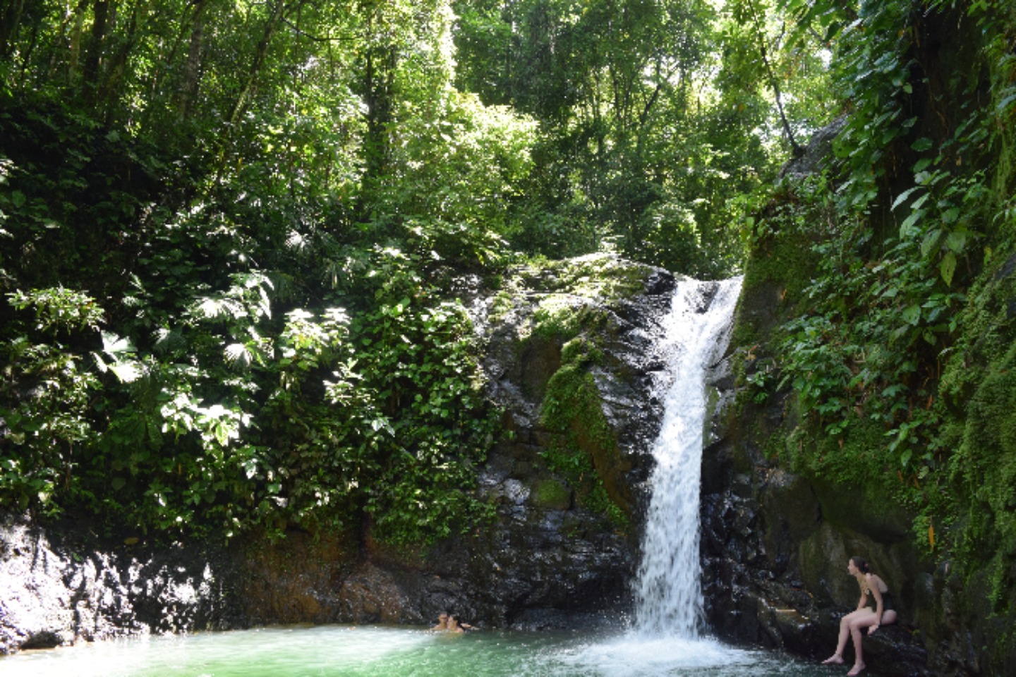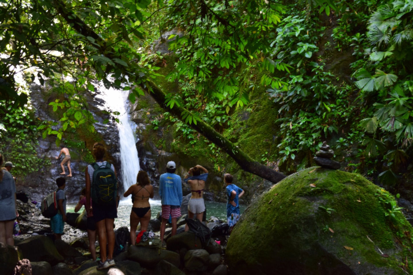 We woke up at a normal time (7:15), and had a delicious breakfast at Hotel “Suenos Tranquilos.” The normal – eggs, toast, rice, and beans – was our entree per usual. We were excited to start our hike to the waterfall. Little did we know we would be hiking on a sweltering, hot road. We were hiking for about forty minutes before we came to a stop at the entrance place for the waterfall. After 5 minutes of waiting, we finally got into the jungle. Our hopes and dreams were crushed when we figured out there was another hike to the actual waterfall. Fortunately, the walk was short and beautiful. After slipping and falling on the slippery rocks on our way, we finally made it to the waterfall. Although the water was cold, the water was hard not to get into. We were accompanied by daredevils that seemed to be from Costa Rica. They climbed the waterfall from the rocks. It was scary to watch because if they fell back onto their head, they could have been seriously injured or even killed. As they made their way higher and higher, everybody’s mouth dropped lower and lower. Finally, they made it to the top. After staring down below their feet for a minute, they jumped… Our jaws dropped. The sound of their body hitting the water was terrifying, but they were fully safe each time. After ten minutes of them repeatedly going up and down the waterfall, Mara and Kayla wanted to do the same thing that they were doing. The counselors were hesitant at first but then gave in. Anna, the instructor, took them up the long way, not the waterfall way, for safety purposes. After five minutes of not seeing them, they appeared out of the jungle. Their faces filled with excitement; they were ready to go down the waterfall. Mara was up first. She had a perfect slide down and went smoothly down into the water. Kayla, on the other hand, rotated a little bit backward and landed a back flop. The noise was terrible. Luckily, she came out of the water with a smile on her face.
