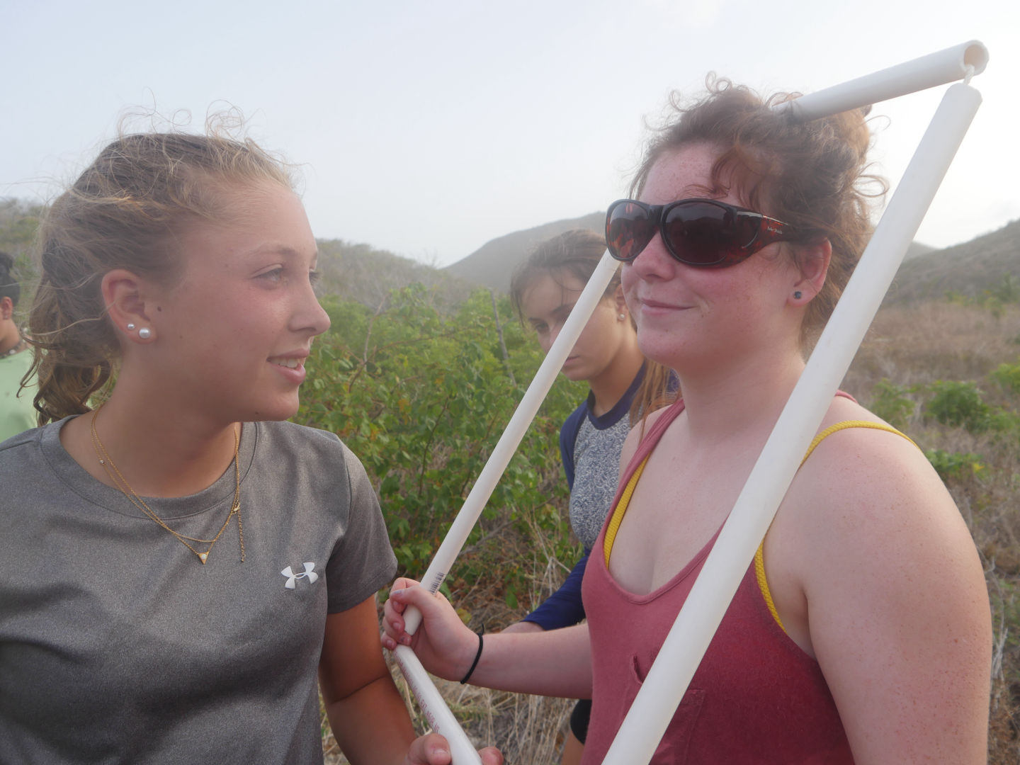 When we got back to the boats, utterly knackered, there was no time to breathe as everyone set off to a nearby beach to practice our next research project. This time learning how to observe and collect data on seagrass and how it’s been doing since the hurricane.