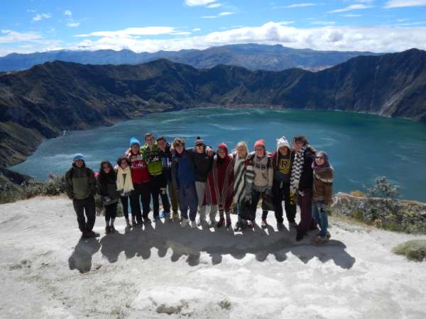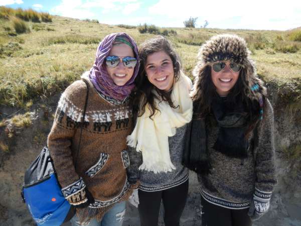 Today was our first full day in the Andes. After a lovely breakfast of pancakes with syrup, we boarded a stand-up bus with no real place to sit. Our journey consisted of beautiful views of winding mountain roads and getting stuck in the mud! What an amazing beginning to the day! Once we arrived, we had time to visit a local market where we purchased local gloves, ponchos, and sweaters because it was very cold and windy. Finally, we began the trek back to the Black Sheep Inn. We started at the top of the Quilotoa crater that has a beautiful lake in the bottom. We continued our journey, and after one hour we had lunch. The rest of the hike lasted nearly five more hours with periodic breaks. Even though everyone was tired, sore and dirty, finishing the hike was a proud moment for all. However, showering was one of the best moments of the day! After a long and exhausting adventure, we had dinner, did a group activity then went to bed early.