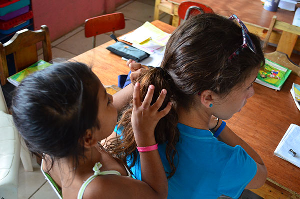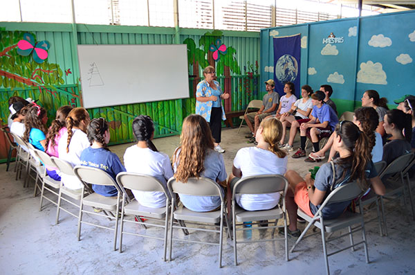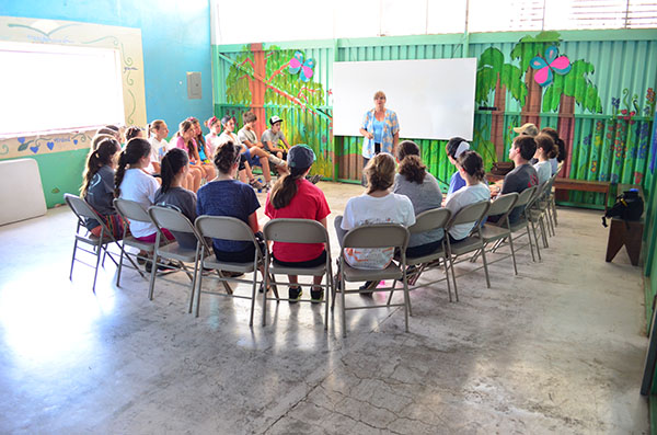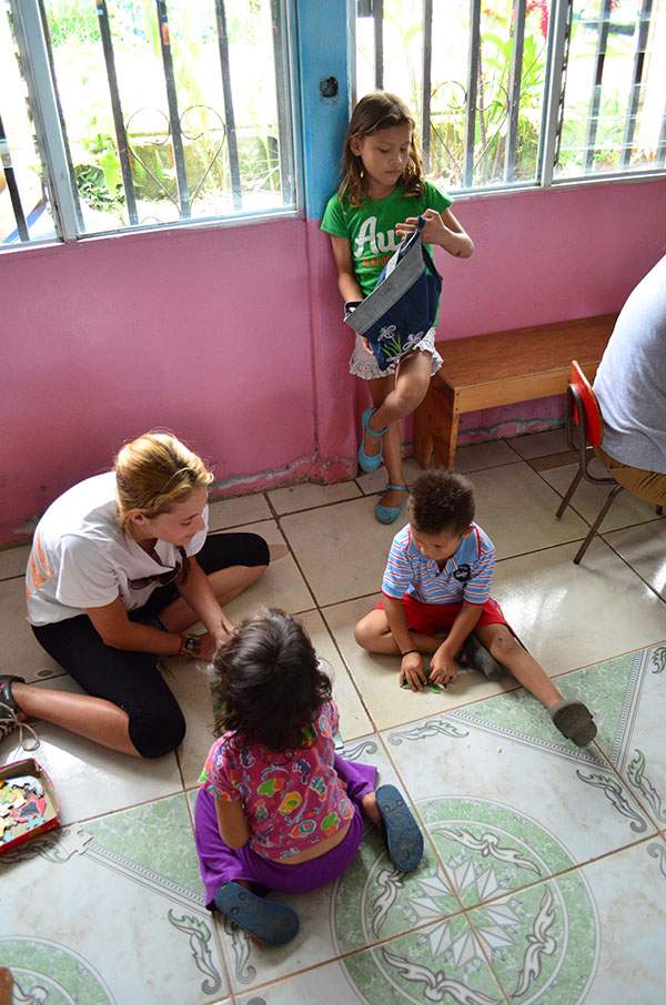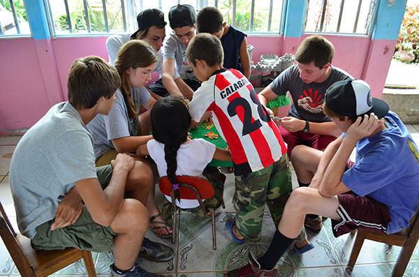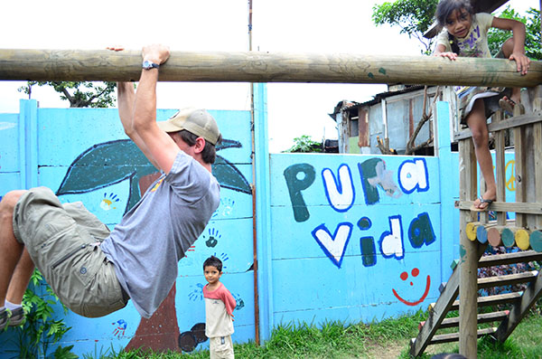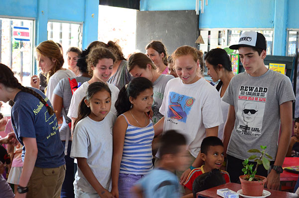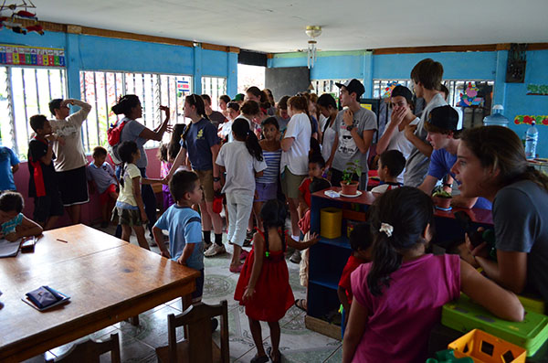 Today we went for the first time to La Carpio where we learned the history of its poverty and met the children of a school. In the school, the conditions were drastically different from everything we have experienced in Costa Rica so far. Although the buildings were run down and the river heavily polluted, the children had gigantic smiles on their faces and were ecstatic to play with us. We crossed a steep, rickety bridge that connected La Carpio to another village. At the top of the bridge, Kaity noted that the people of La Carpio have very different priorities: most of them have radios and speakers and tv but cannot even afford food. Then we went to eat lunch at La Finca. Devin made fabulous guacamole. We then went to a coffee plantation and feasted on free coffee and chocolate espresso beans. After this long day, we went to Ana’s house to meet our new homestay family, and they make a very good eat and get to know us.