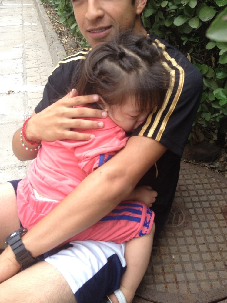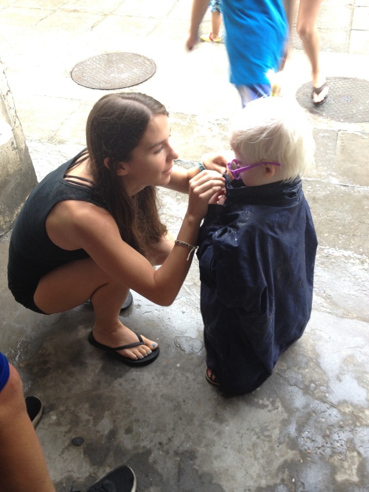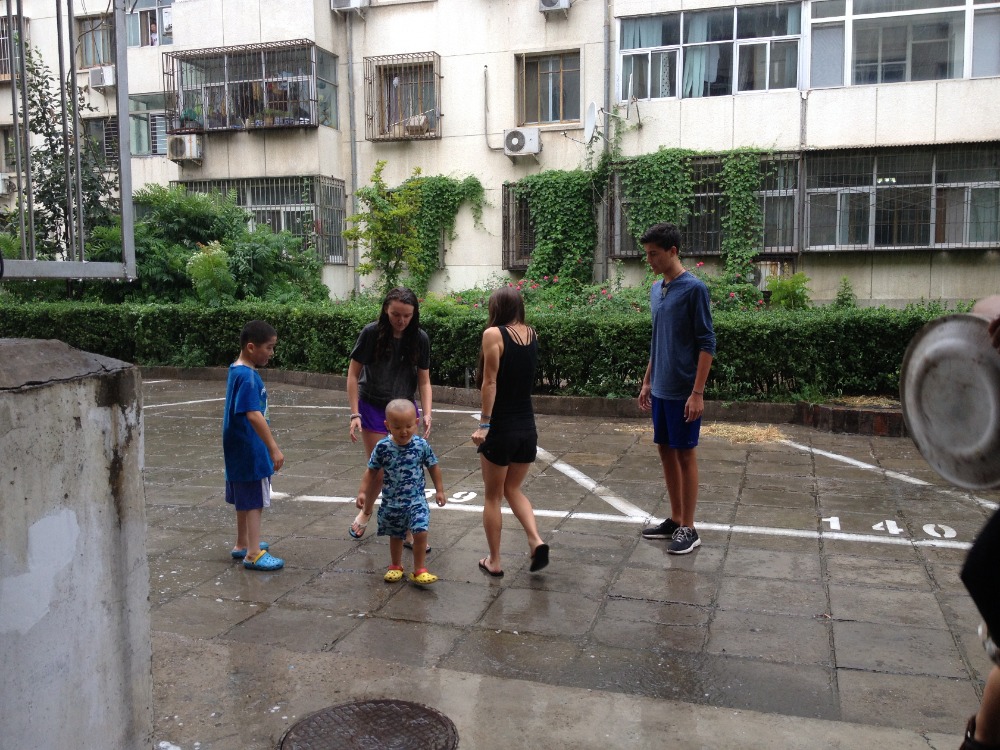 Today was the second to last day of the trip. I am not sure how to feel about that. I am going to miss the friends that I have made here so much but, I also miss my little sister and sleeping in my bed, but hey, that’s just me. Today was one of the slower days. It was rainy, so everyone was kinda slow at getting up and starting the day. It was a double service day today, and for those of our readers who don’t know, that means we have service in the morning and afternoon and depending on where you were in the morning, you go to either the Baby or Group homes. So I had Group home in the morning. Because of the rain, we spent most of our time inside our apartment. We painted theĀ children’s’ faces, and then we went to go dance in the rain. There is a little albino girl named Xiao Jie who is the favorite out of the GroupĀ Home Bunch. She loves to be picked up by me and some of the taller kids and loves to be spun and turned upside down, and we took her outside in large rain jacket that belongs to a 17-year-old.