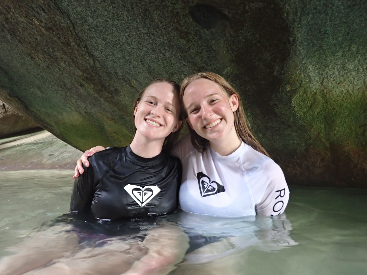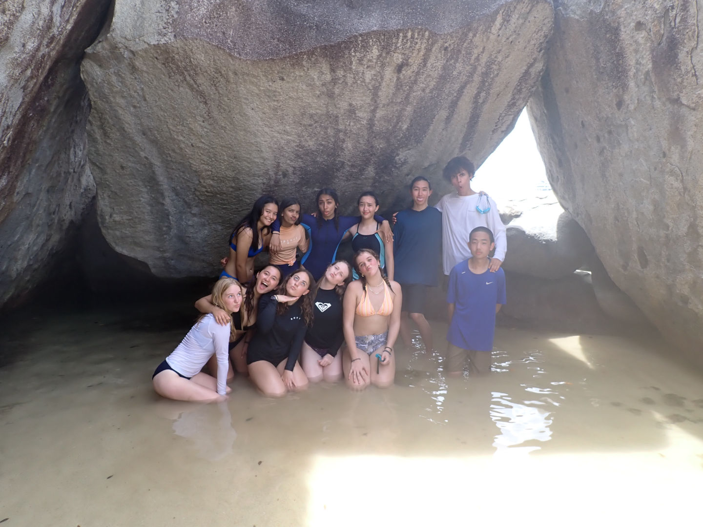 Hi parents! We had a late start today with the grace of Captain Krisz. After a delicious breakfast prepared by Zoe and Delphine, people from the other action quest boat, “Shapeup,” came to visit. Jess then gave us all an incredible presentation (dubbed “trash talk”) in which she described plastic’s impact on our oceans and ourselves. We specifically discussed microplastics and reflected upon our footprint on the environment. I was personally impressed by how well-versed Logan was with these topics. After the presentation, we had a short break and traveled to a national park island. We planned to jump off a rock about 10 feet tall directly into the ocean, but first, we decided to walk through the park itself. The sand was hot, and everyone’s feet were burning. The climb was definitely worth it, as we got to go through the island’s cave system, and Gavin was particularly impressed by the view. After this, people started diving from the rock. Everyone had a ton of fun! After this, everyone ocean bathed, and we had dinner. Huge props to Adele, Gavin, Samaara, Azi, and Chava for cleaning up for us and Maeve for being wonderfully wholesome emotional support^^. We then settled in for the night. (Settled, meaning everyone is currently raving to music as I’m writing this.) Day 4 has been wonderful.