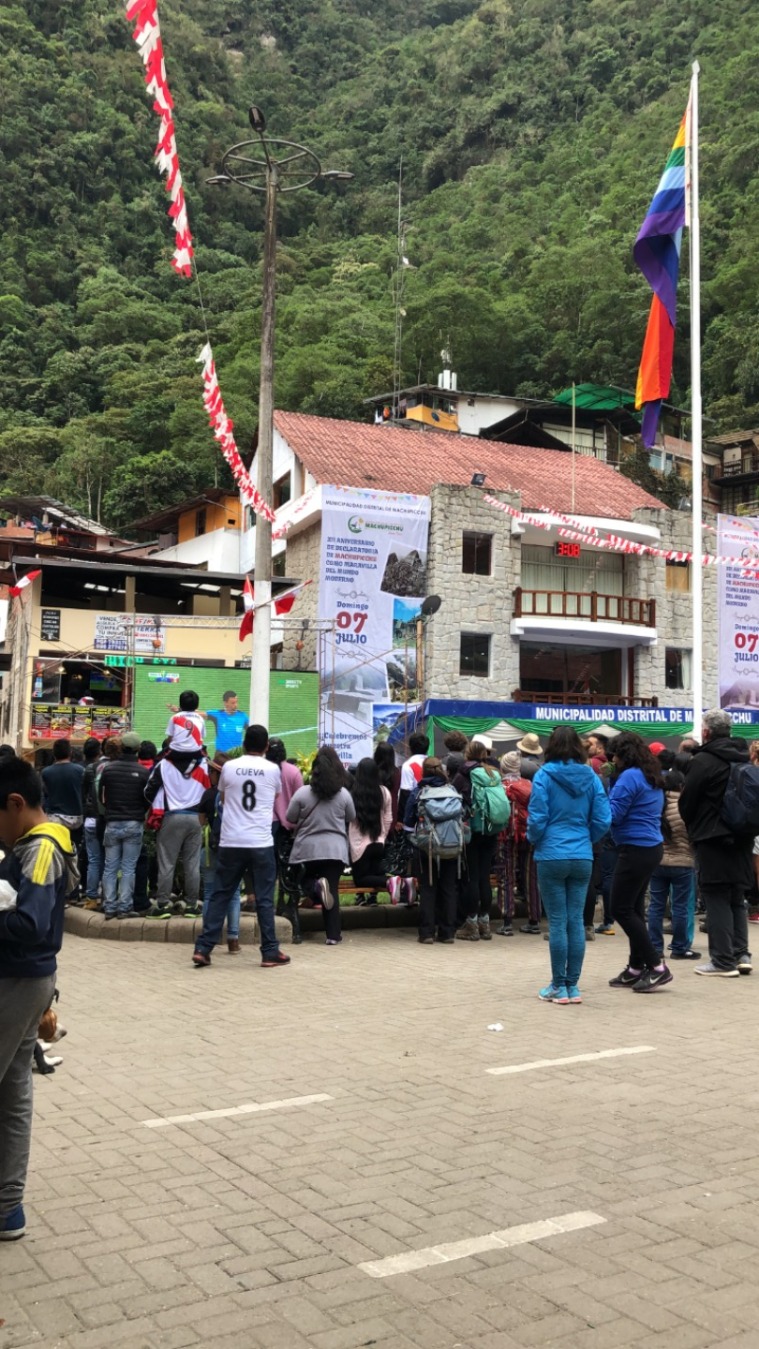After starting our day with a late breakfast, the group headed to the train station to hop on a train headed for Aguas Calientes. Aguas Calientes is known for its hot springs and is the town you must go through to get to Machu Picchu. In fact, some people are attempting to change the name to Machu Picchu Pueblo. After settling into the hotel, we went out for lunch and then watched Peru play in the Copa America final in the town square. Supporters were parading in the streets, and Peruanos were still pleased with finishing the tournament in 2nd, even if they (and we) would have preferred them to win. We then went back to the hotel to change for the hot springs. The hot springs were nice and relaxing and matched with a beautiful setting, in the jungle. We finished off the evening with a fun dinner at a local restaurant and were serenaded by a Peruvian harp player.