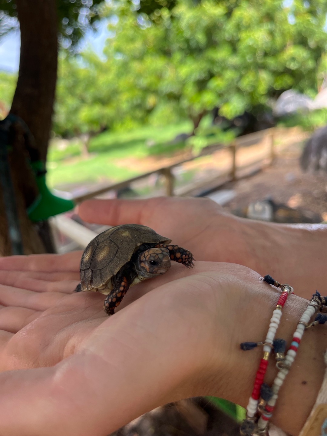 Earlier, we found a baby tortoise lying on the ground. It appeared dead, but after Siena spotted a slight movement, we were able to nurse the baby back to life. We even named him Turkey!