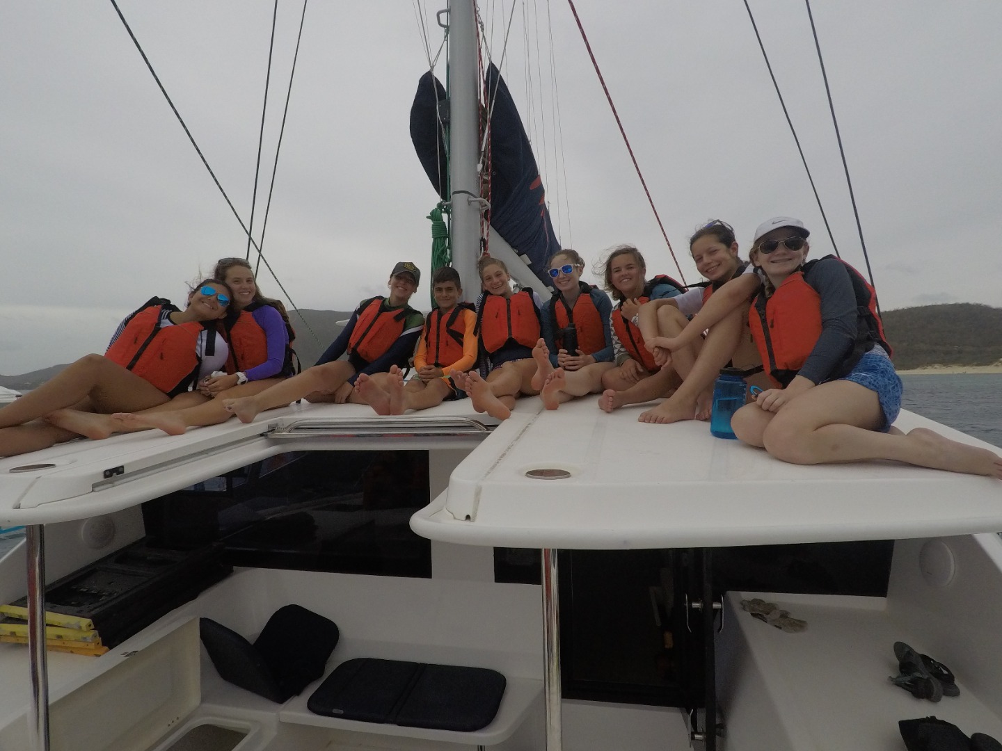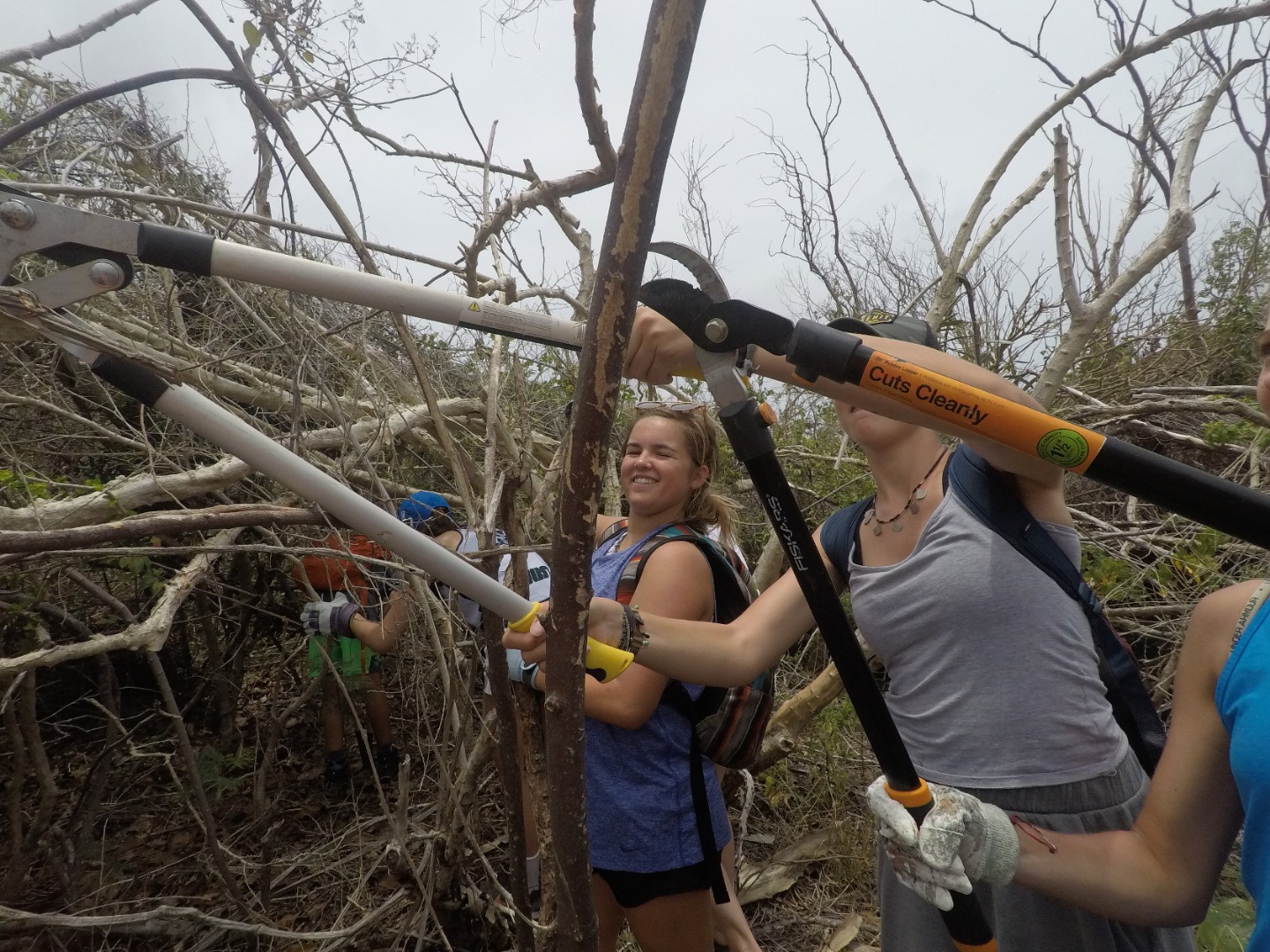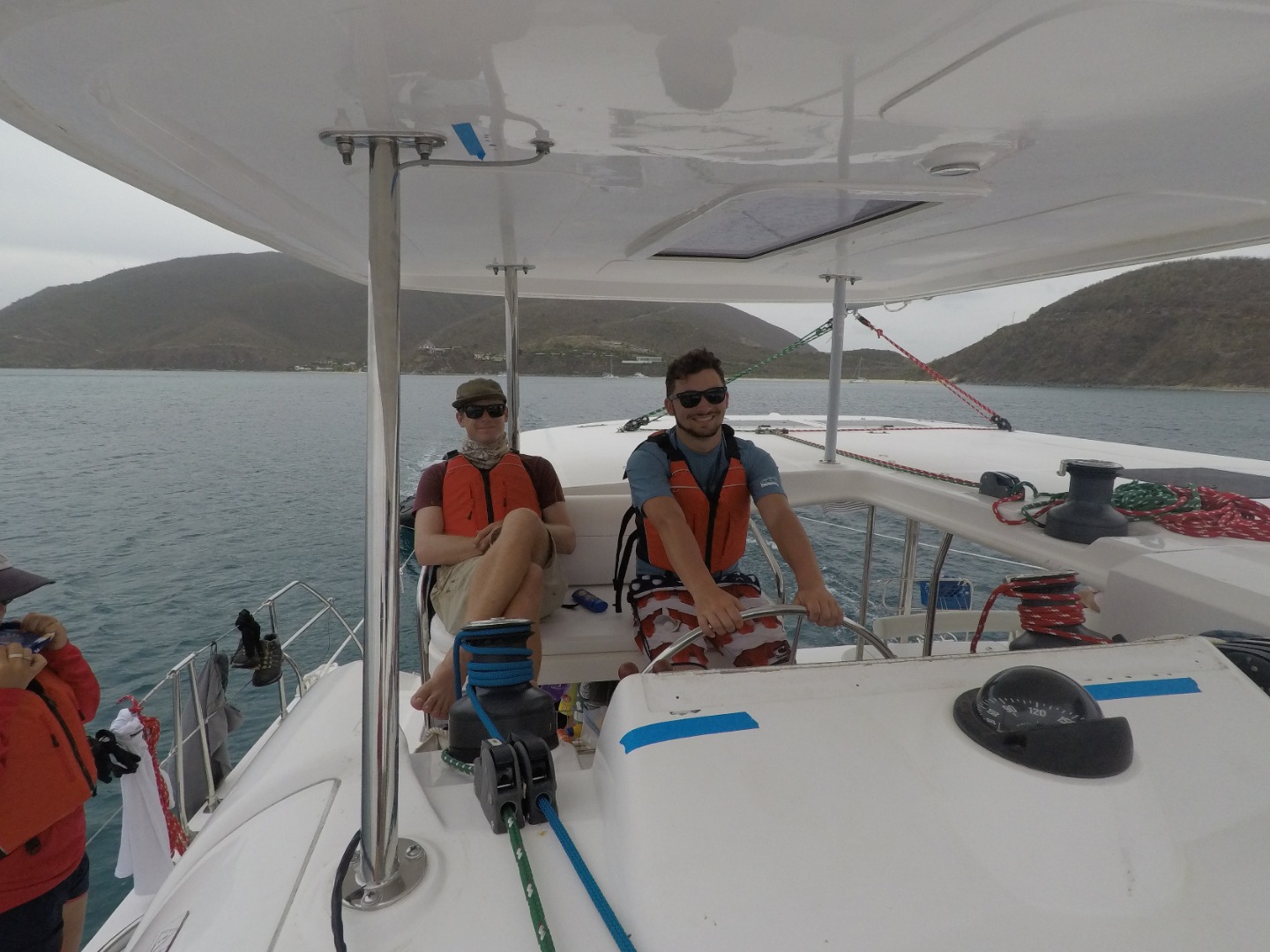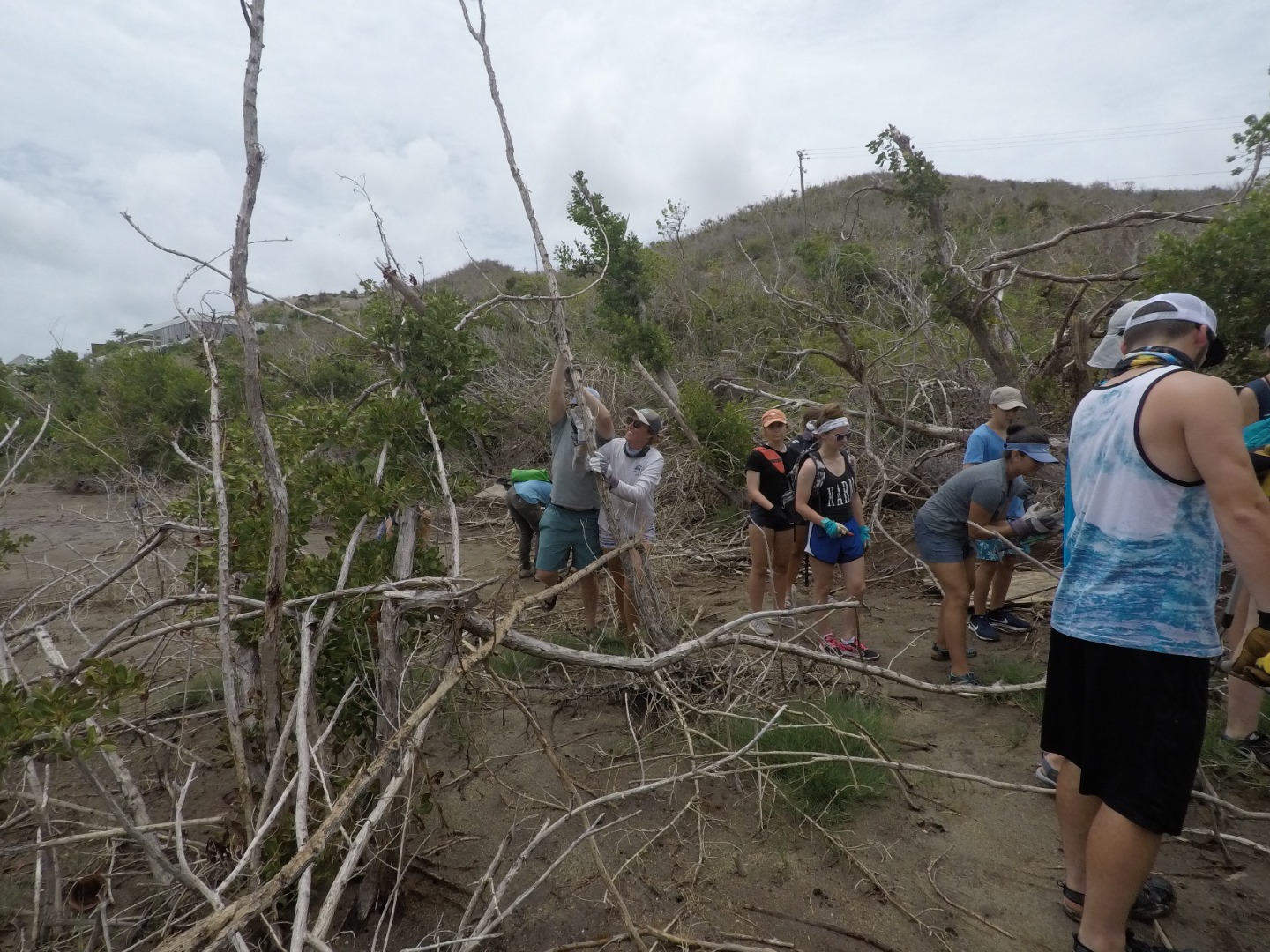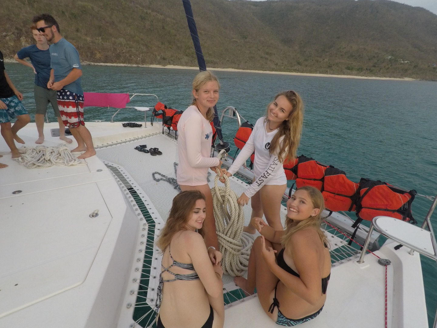Today was the first day we were able to sleep in, but everybody woke up due to the smell of pancakes being made. We all ate the pancakes and cleaned the entire ship to pristine shape. The other GoBeyond ship came over, and we watched videos about water pollution and how plastic affects the world. We watched a couple of videos of Boyan Slat and how he was 17 and started doing Ted Talks. Now he is in his early twenty’s raising nearly 40 million dollars to his company to help end water pollution dealing with plastic. We then left and went to an old hiking spot that Action Quest and GoBeyond usually go to every year, but the hurricane destroyed almost all of it so instead of doing the hike we set out to remake the trail and clean it as well as possible. After that, we went back to the boat and ate some Kraft mac n cheese. Then we moved our boat to a private resort called Rosewood, and the bay was called Little Dix. At the bay, we started the process of turtle tagging. After about an hour and a half one person finally caught the first turtle. It was huge and was at least 80 pounds. After we caught it, we measured it and did all the statistics of it and released it back in the bay. We started going to a new place called Mountain Point where we brought both GoBeyond boats together, and we had a huge dinner with both boats to end the day.