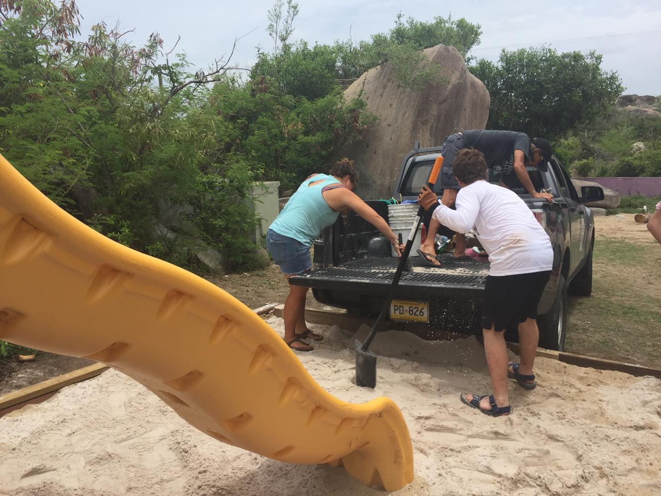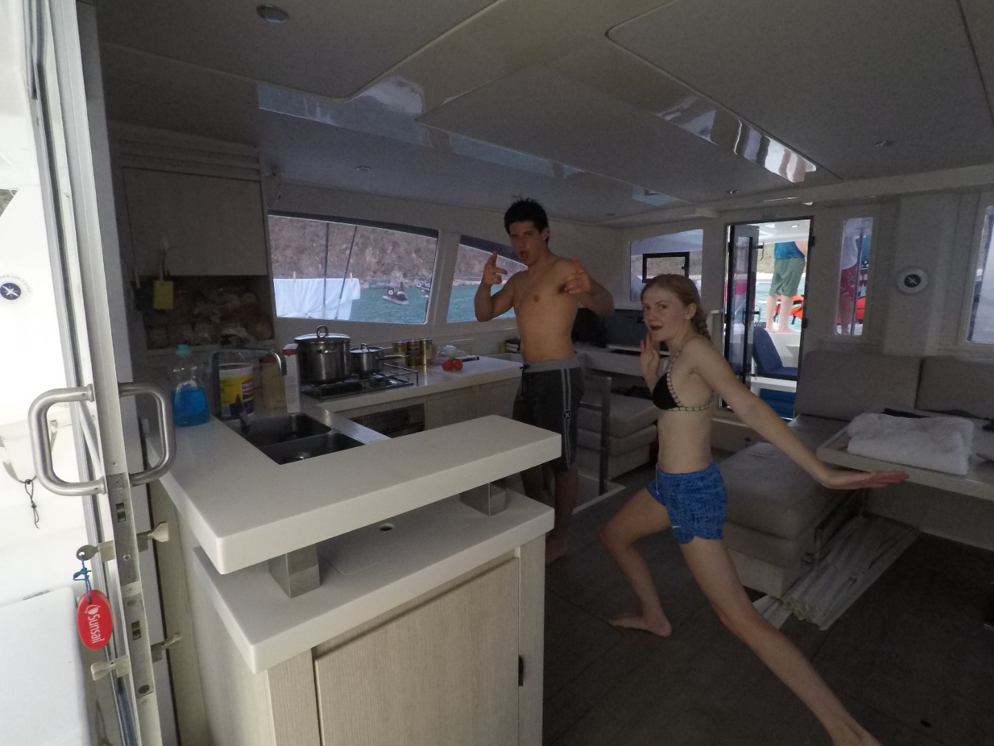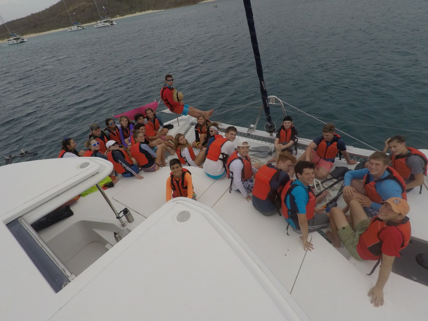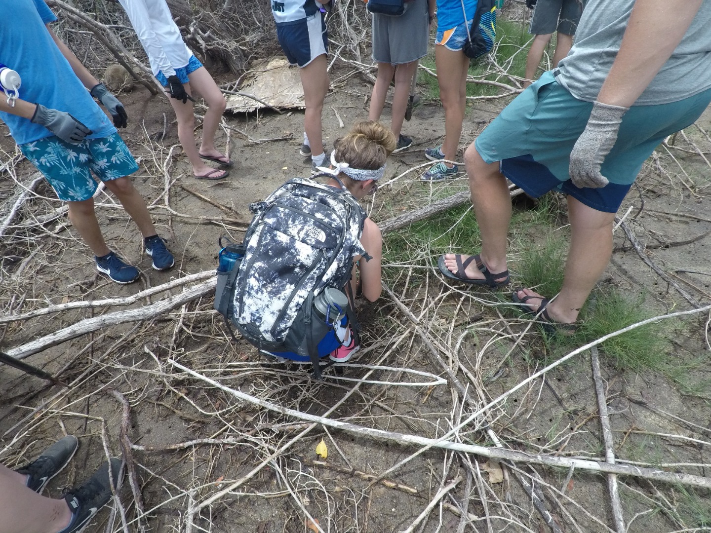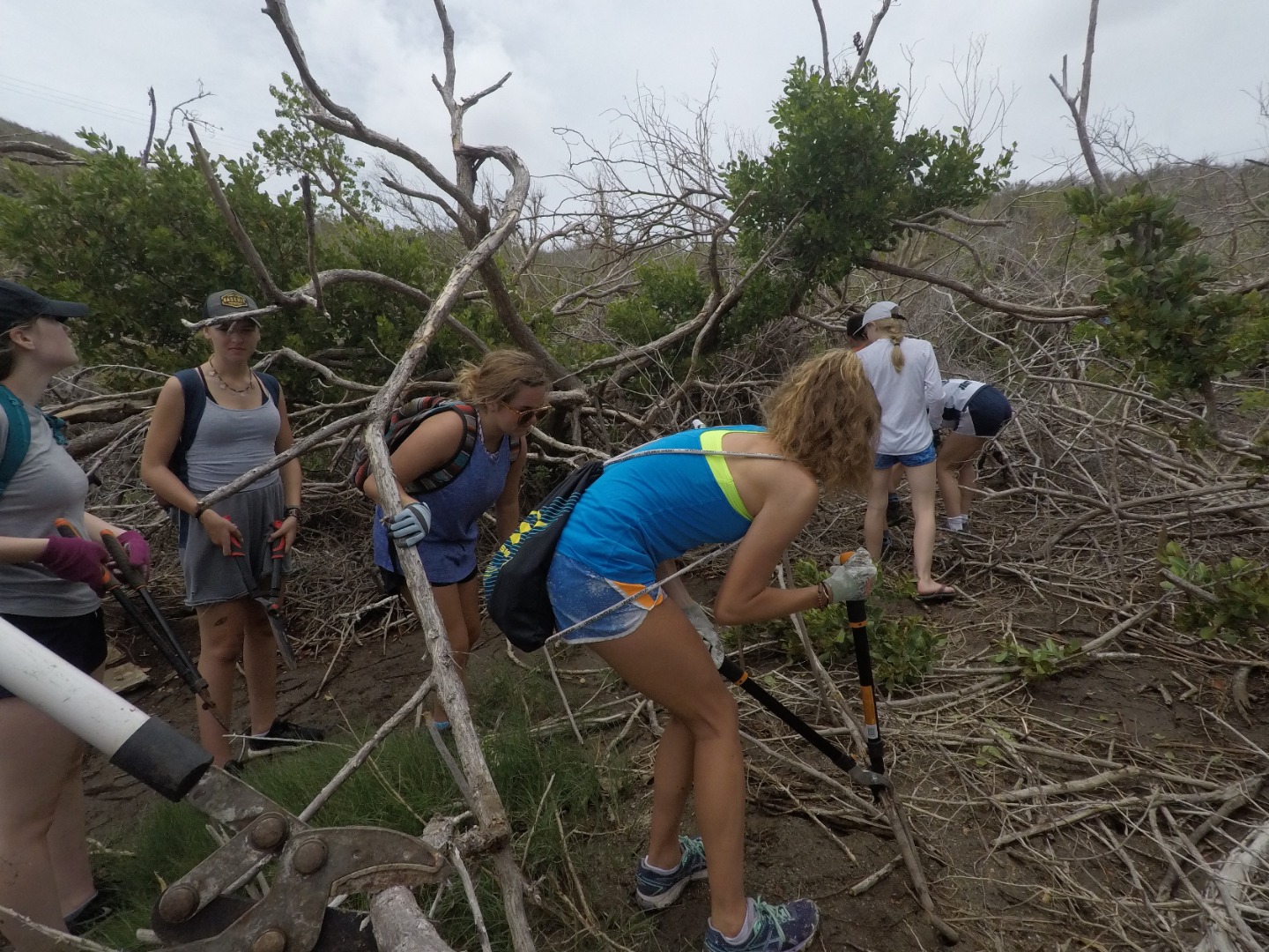 Today was the first day we were able to sleep in, but everybody woke up due to the smell of pancakes being made. We all ate the pancakes and cleaned the entire ship to pristine shape. The other GoBeyond ship came over, and we watched videos about water pollution and how plastic affects the world. We watched a couple of videos of Boyan Slat and how he was 17 and started doing Ted Talks. Now he is in his early twenty’s raising nearly 40 million dollars to his company to help end water pollution dealing with plastic. We then left and went to an old hiking spot that Action Quest and GoBeyond usually go to every year, but the hurricane destroyed almost all of it so instead of doing the hike we set out to remake the trail and clean it as well as possible. After that, we went back to the boat and ate some Kraft mac n cheese. Then we moved our boat to a private resort called Rosewood, and the bay was called Little Dix. At the bay, we started the process of turtle tagging. After about an hour and a half one person finally caught the first turtle. It was huge and was at least 80 pounds. After we caught it, we measured it and did all the statistics of it and released it back in the bay. We started going to a new place called Mountain Point where we brought both GoBeyond boats together, and we had a huge dinner with both boats to end the day.