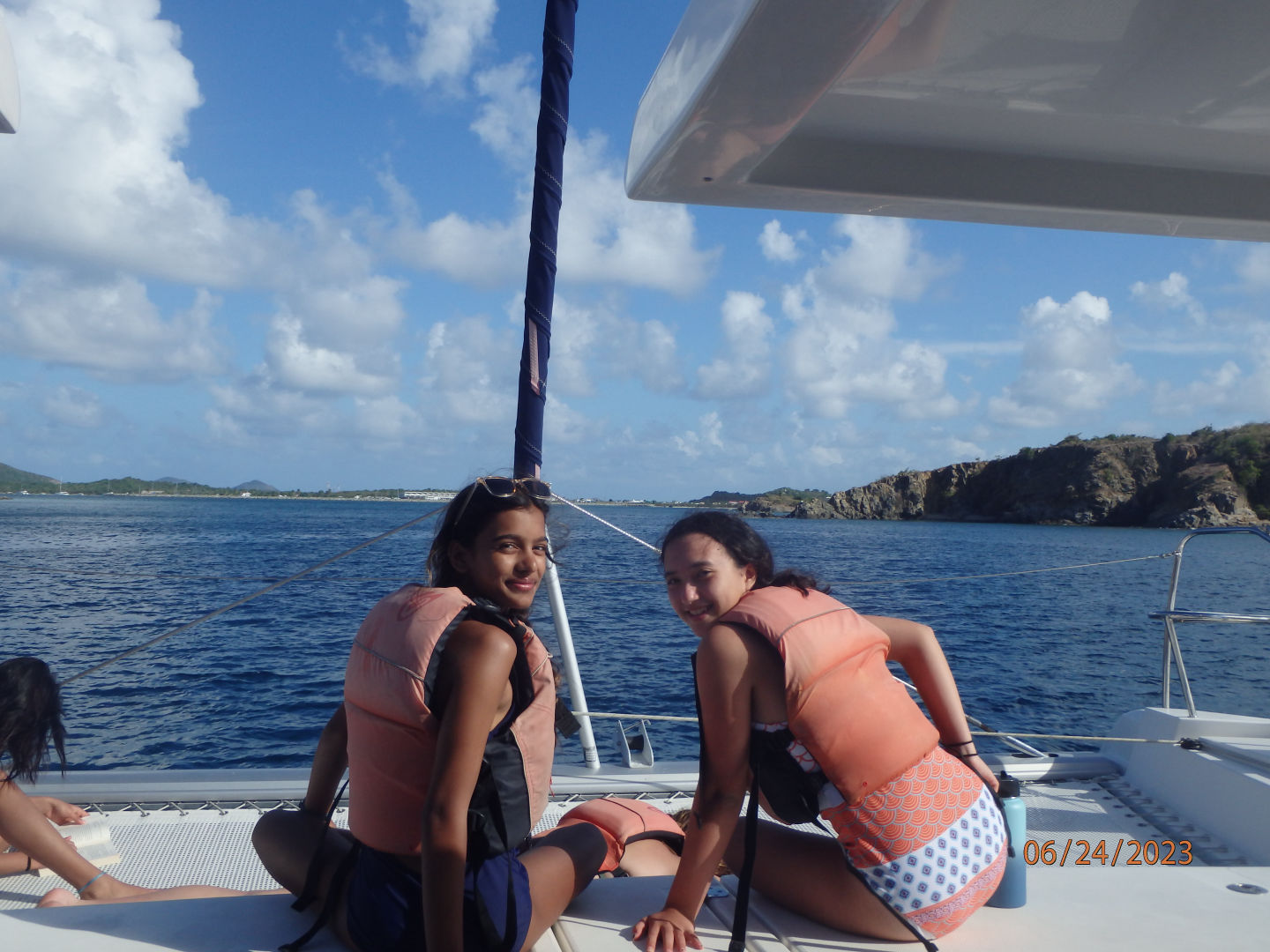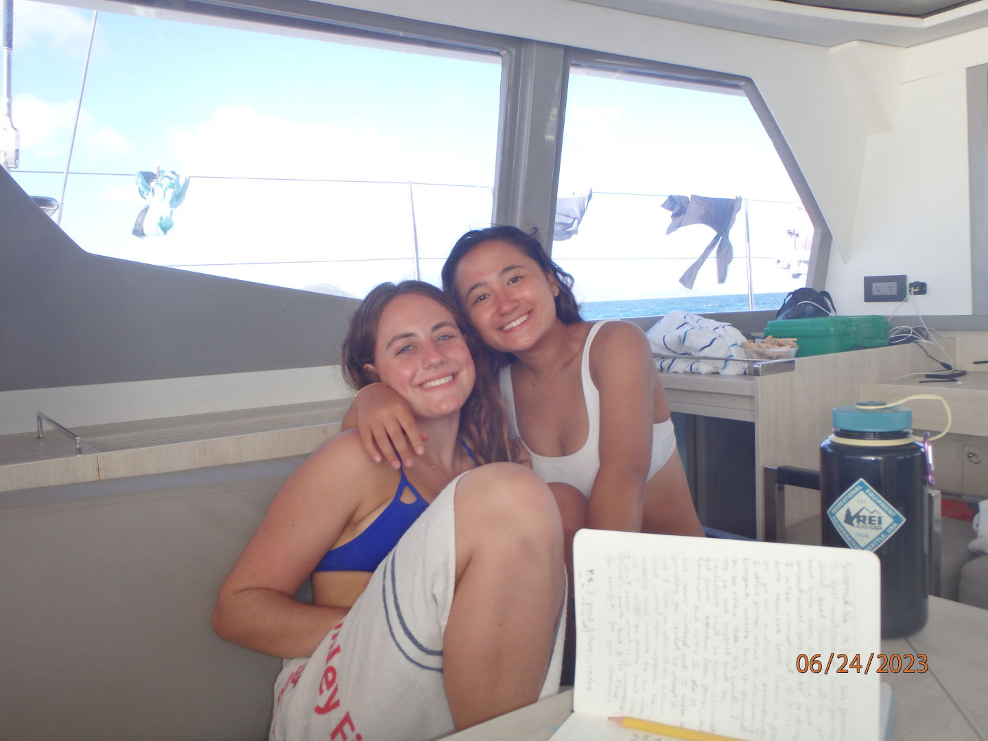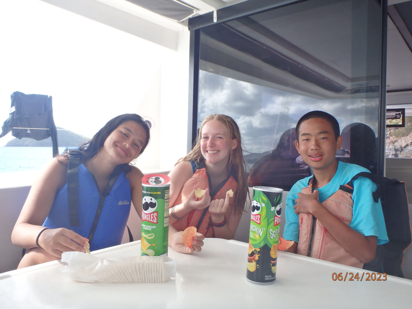 Everyone around the boat is doing something different as I write this… Ella, Chava, Azi, and Lindsey are conversing. Adele, Zoe, Maeve, Gavin, Delphine, and Samaara are o the roof listening to music, and Sanaah, Jess, and Krisz are in their cabins getting ready for bed. Today was a rather “chill” day (as Krisz stated at dinner). We woke up rather late today (compared to most other days on this trip) a