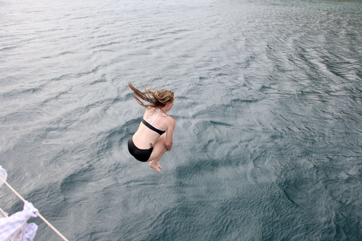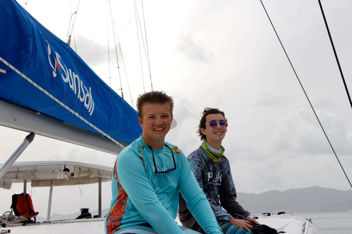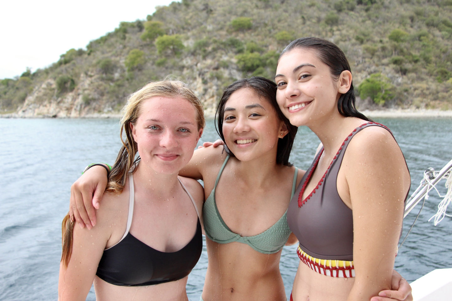This morning, most of us woke up later than normal, around 8, which was nice to prepare for our busy day. Many of us slept outside last night — we fit seven hammocks, which was a new record for this session. As people were putting away their hammocks, the chefs got started with breakfast. We had scrambled eggs, apples, and blueberry muffins. However, we had some issues with this. First, the oven was being quite difficult this morning and not staying on, so the muffins took a LOT longer than expected — so much so that we needed to start sailing to our new anchorage before we could eat. So, the people that were not cooking helped pull up both of the anchors and longline the dinghy while the cooks and gopher finished getting the meal ready. All of us had loads of fun eating while we were moving, and the muffins turned out really yummy.