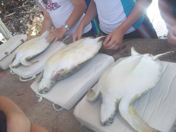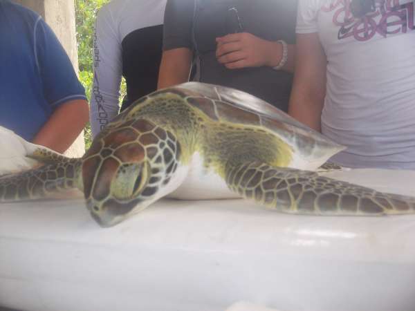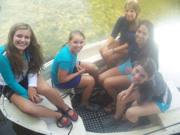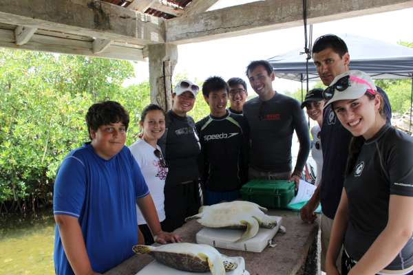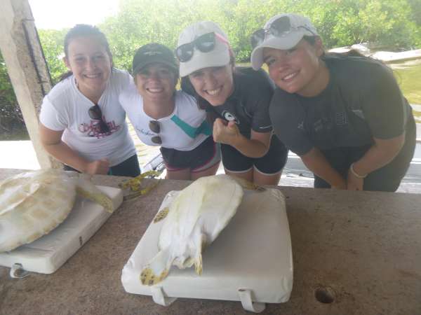 Today was a favorite for many of us on board the Catalinaville. It began with a rush where our chefs expertly prepared scrambled eggs in record time so we could catch our 8:30 taxi to a very small dock where we began the ultimate life experience: catching sea turtles. We used a method called rodeo turtling in which one person stands ready in the side of the dingy or small motorboat as the driver chases the turtle while the others aboard must keep it in sight. Next, the turtle hopefully tires and slows (contrary to popular belief those little beasts are surprisingly speedy) enough so that the person in the side may pounce on to the turtle chest first and grab its’ sides (Note: this does not harm the turtle in any way). I attempted this three times and only ended up bruising my legs, but we ended up with a total of six turtles caught by Michael, Victoria, Camille, and Phon. Back on land, we measured various parts of the turtles while trying to keep them calm and comfortable. It was interesting because the staff told us scientists would be using the data we collected which meant we had to be very precise. We also inserted flipper and PIT tags. The flipper tag being an external ‘earring on the turtle’s flipper with a number showing on the metal. A PIT tag went inside the turtle in a rather large shot so when the turtle is caught again, a device can scan for the bar code and read the number off of it without going inside the turtle. Fortunately, our turtles were shockingly docile and had little to no serious reactions to any of our procedures. I hope to speak for everyone by saying the experience was better than expected and unforgettable. After we got back to the boat, I think the dance, hike, and today’s activity hit everyone at once, and we are all very exhausted but managed to clean the entire boat: an extreme task. Chores are finishing up, and I’m anticipating an early bedtime all around. To my mom, dad and family: I’m sorry my phone has not been working and just wanted to let you know all of the people surrounding me are so wonderful and some of the best times and moments of my life have happened around them. Also, please find a way to send me my final grades, it is incredibly nerve-wracking. Thank you to all the other parents who have raised such amazing children, they change me every day, and I love every one of them. Missing you but I don’t want to leave!