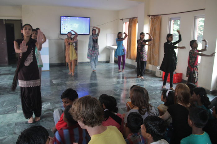 After a good night of sleep, I woke up everyone at 7:30. After having breakfast, we went up to the town and met our learning partners. We had lunch at Common Ground and then went to visit Indian children in a slum. They were excited to see us. Then we went to the hostel where some of these children live, thanks to the monk that own this hostel and give a chance to each family to send one child there and give them the opportunity to get an education. The children welcomed us showing us their rooms and then short movies about their lives before getting to the hostel and after. Some of the girls danced, it was really good. As we were still sitting in the room, which had approximately fifty kids, a massive dog stumbled into the room and laid his head in Josh’s lap. Josh and Graham both pet the dog for a few minutes before it laid its head in Graham’s lap. The dog wore a spiked collar and had a body that resembled a bear more than a dog. It was missing its ears, and now we know it was brought in from Russia. NEW YORK IS BETTER THEN PARIS, OR NOT. Calmly, it was enjoying Sofi Jenssen and Nigel’s petting. Suddenly it leaped up and began to shout. It barked loudly and went after Nigel. Graham defended his brother with a swift kick to the dogs face.