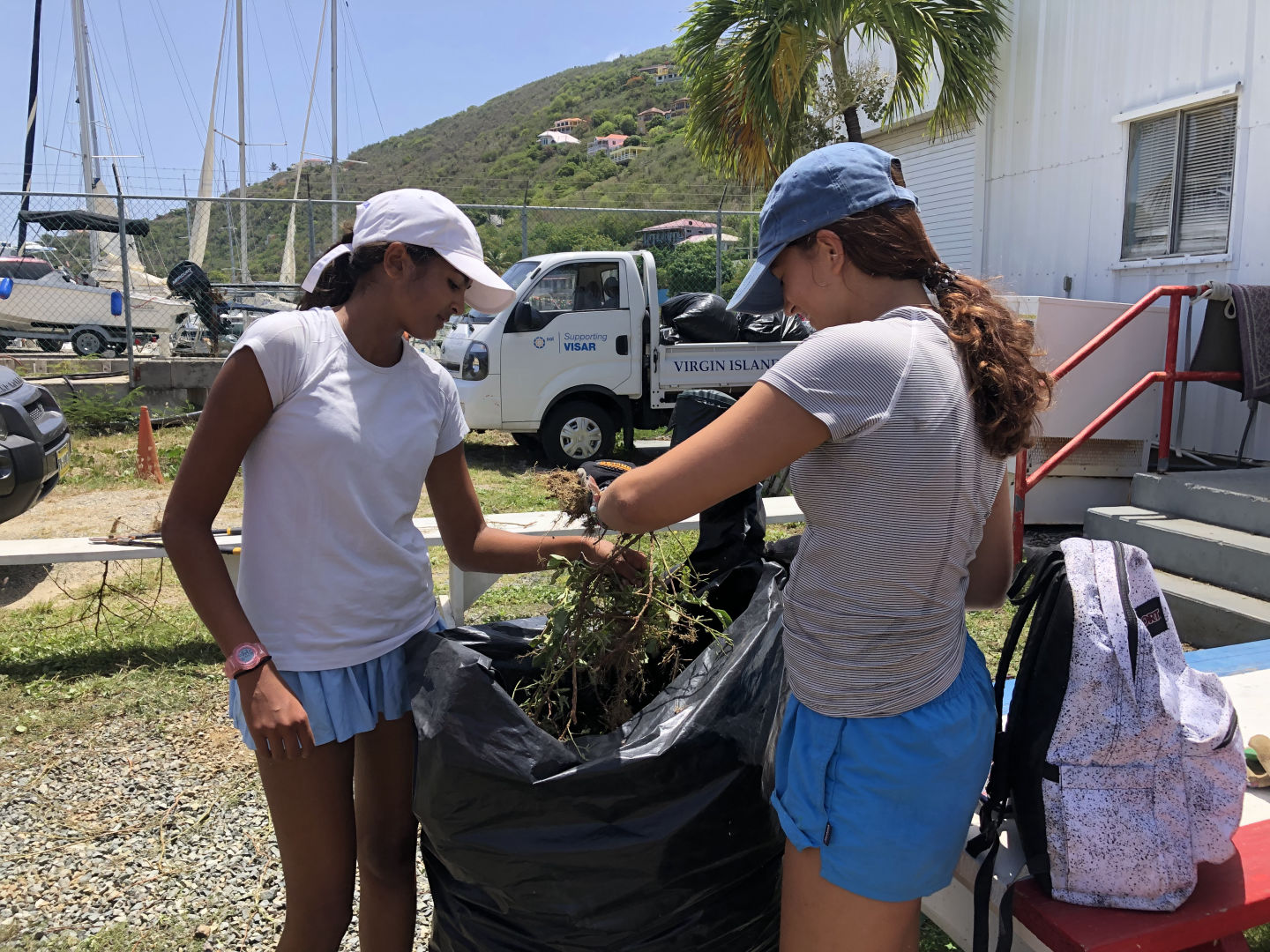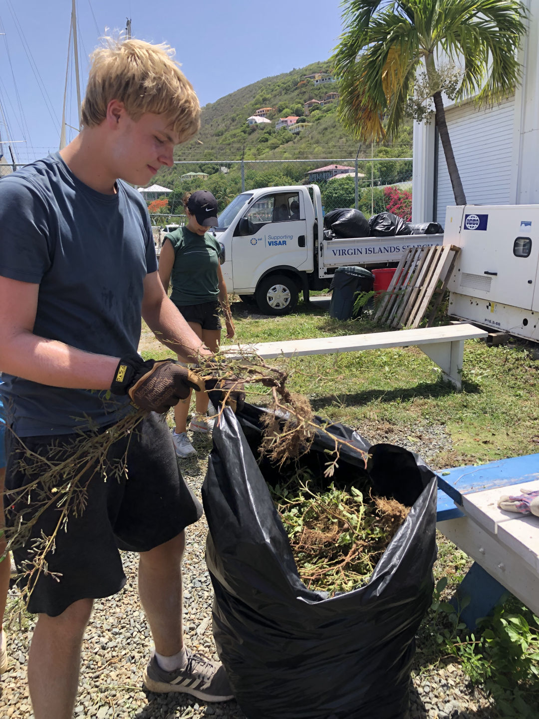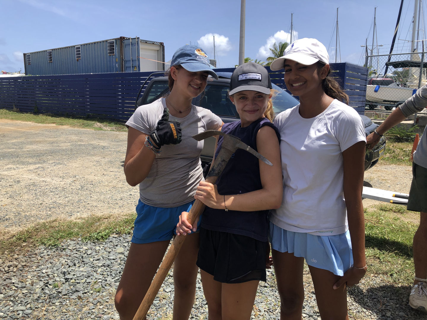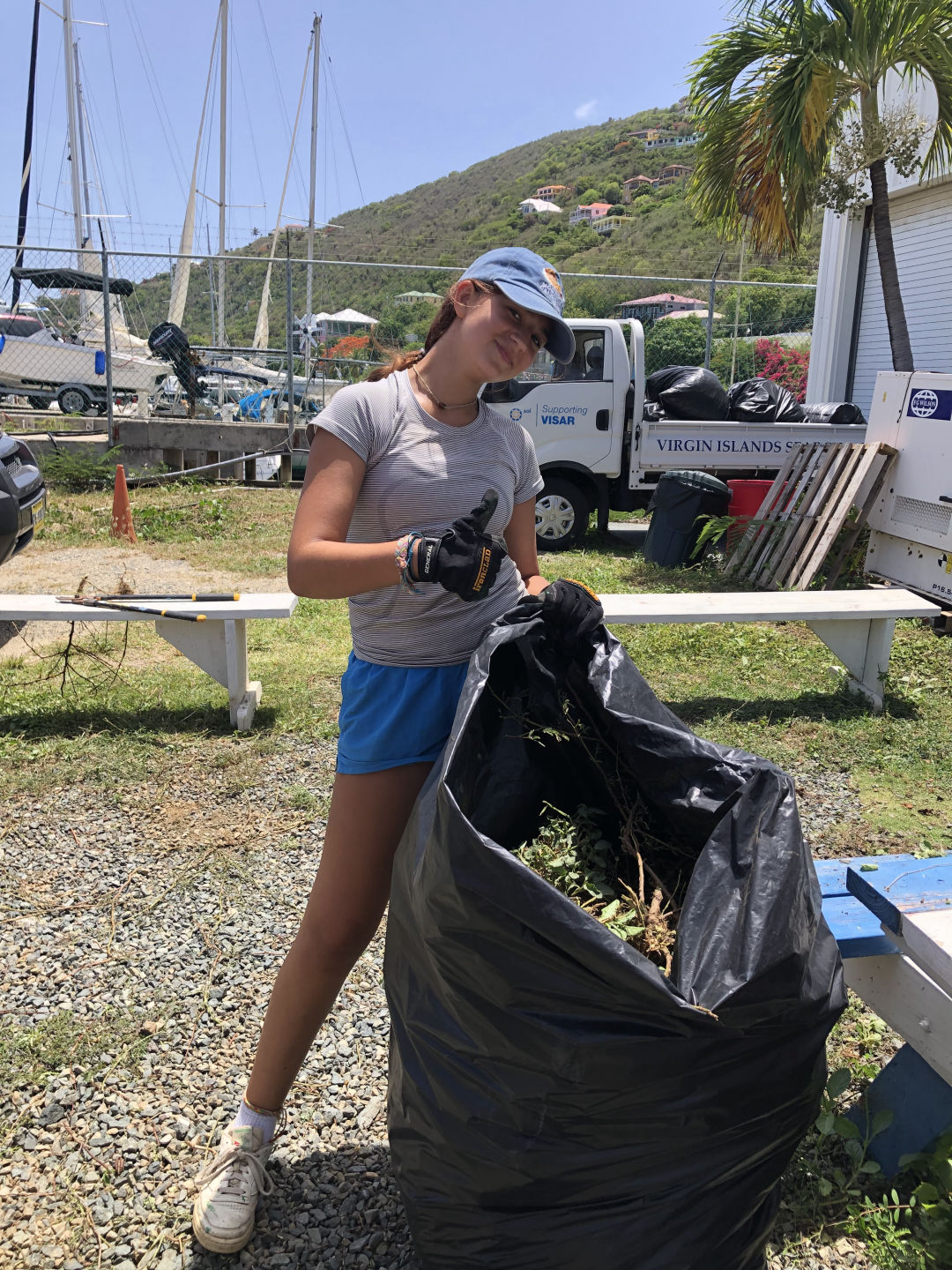 Our adventures on the boat started bright and early today. At 4 am, we set sail. We sailed from Sandy Spit and docked at Road Town, where we were able to refill our dangerously low water tank. Thankfully, the counselors were the only ones who had to wake up before sunrise. As per usual, Kris’s loud music woke us up at seven sharp. We quickly ate cereal for breakfast as Annie briefed the group on the work we would be doing at VISAR (Virgin Islands Search and Rescue). We arrived by cab at the site, where we proceeded to clean up the front and sides of the VISAR building. Anna S., Shaila, Morgan, Chris, and I had a great time pulling out weeds and raking up leaves while listening to music that Riley despises.