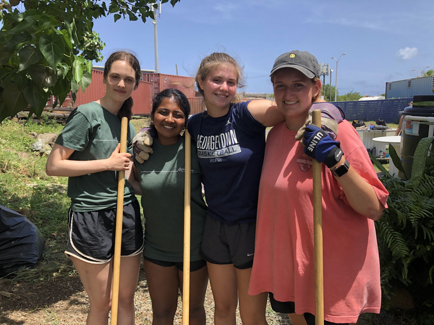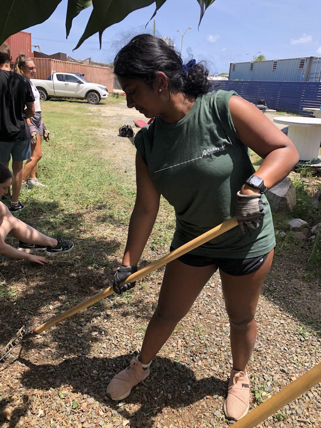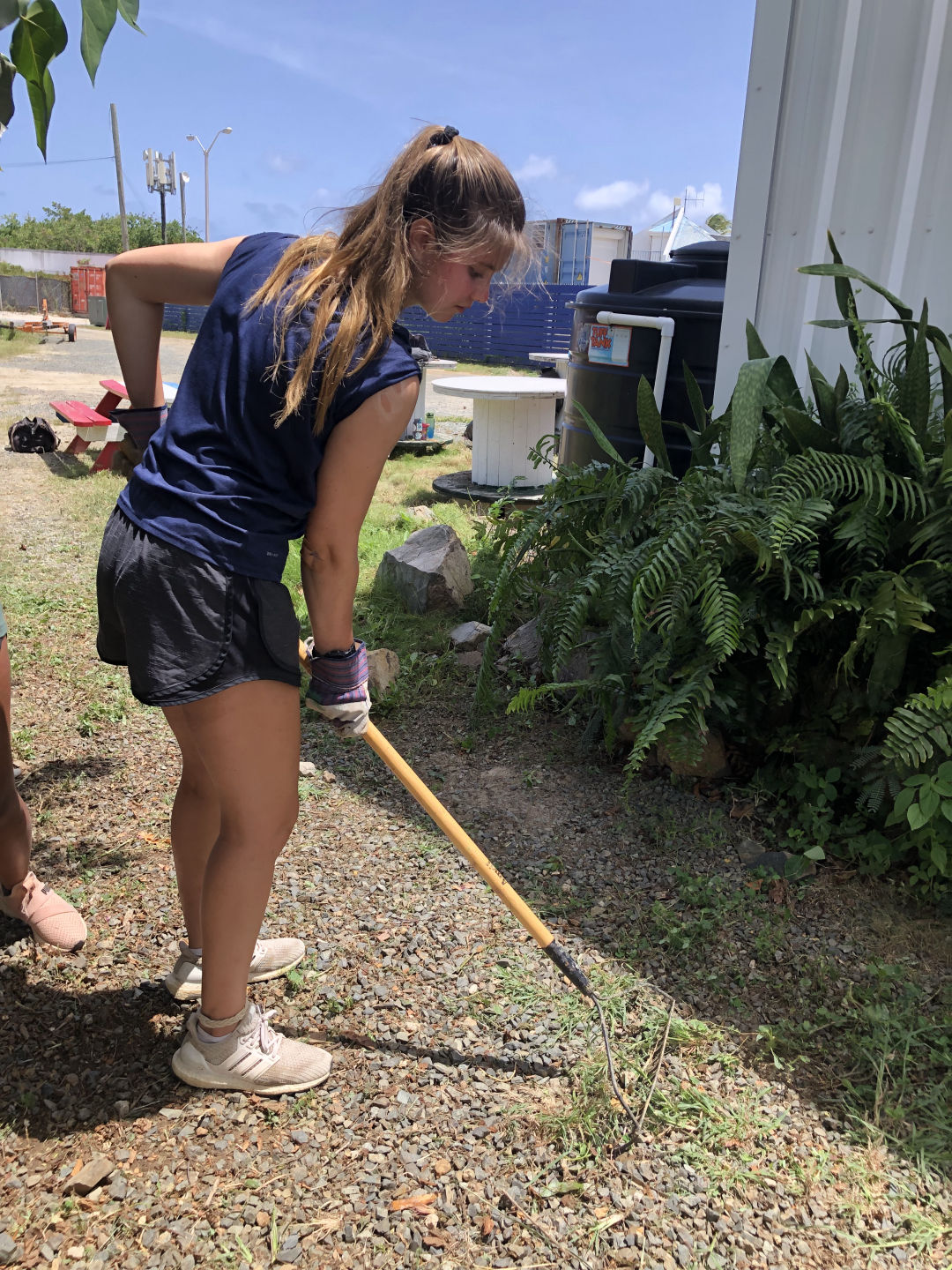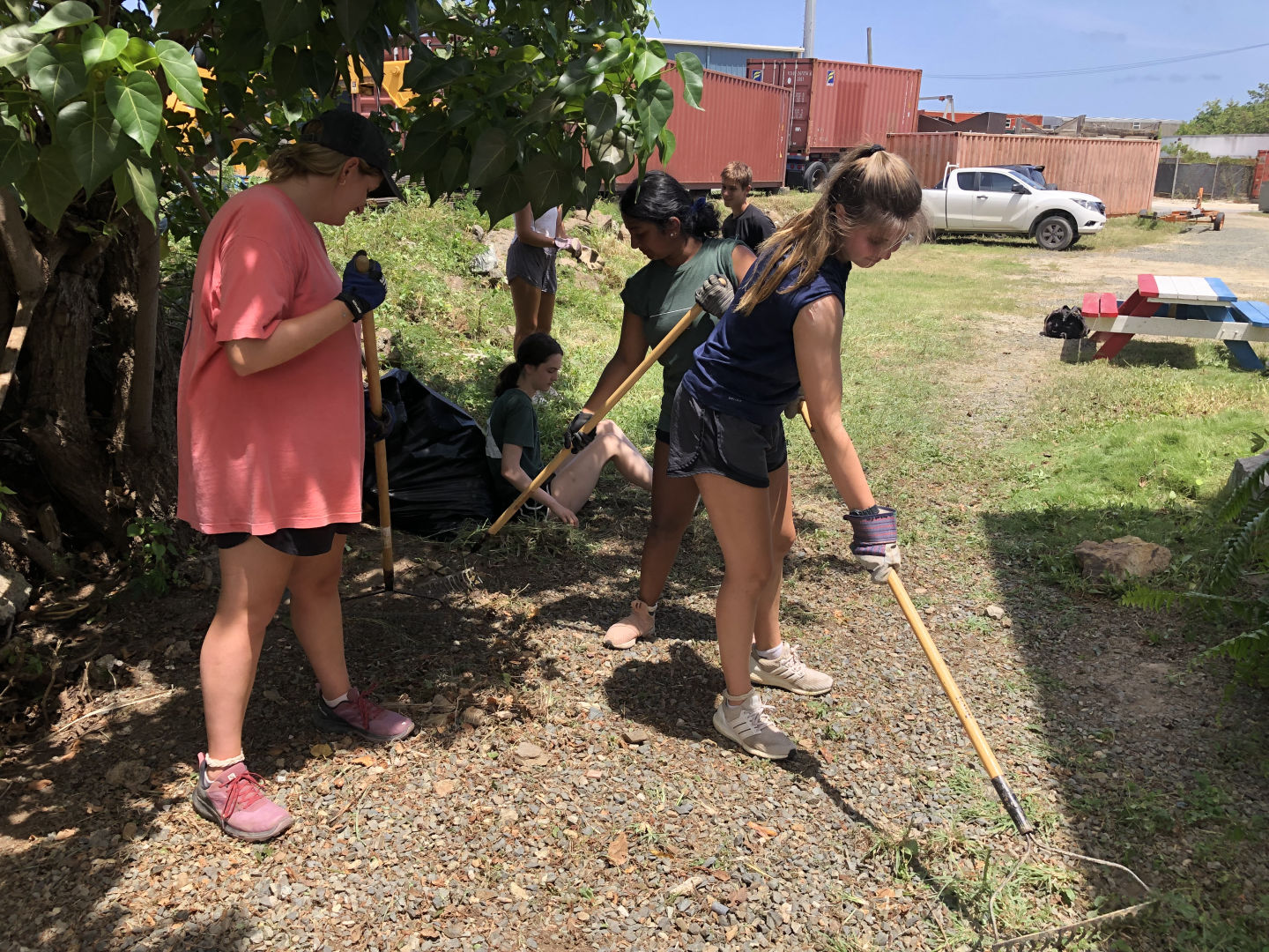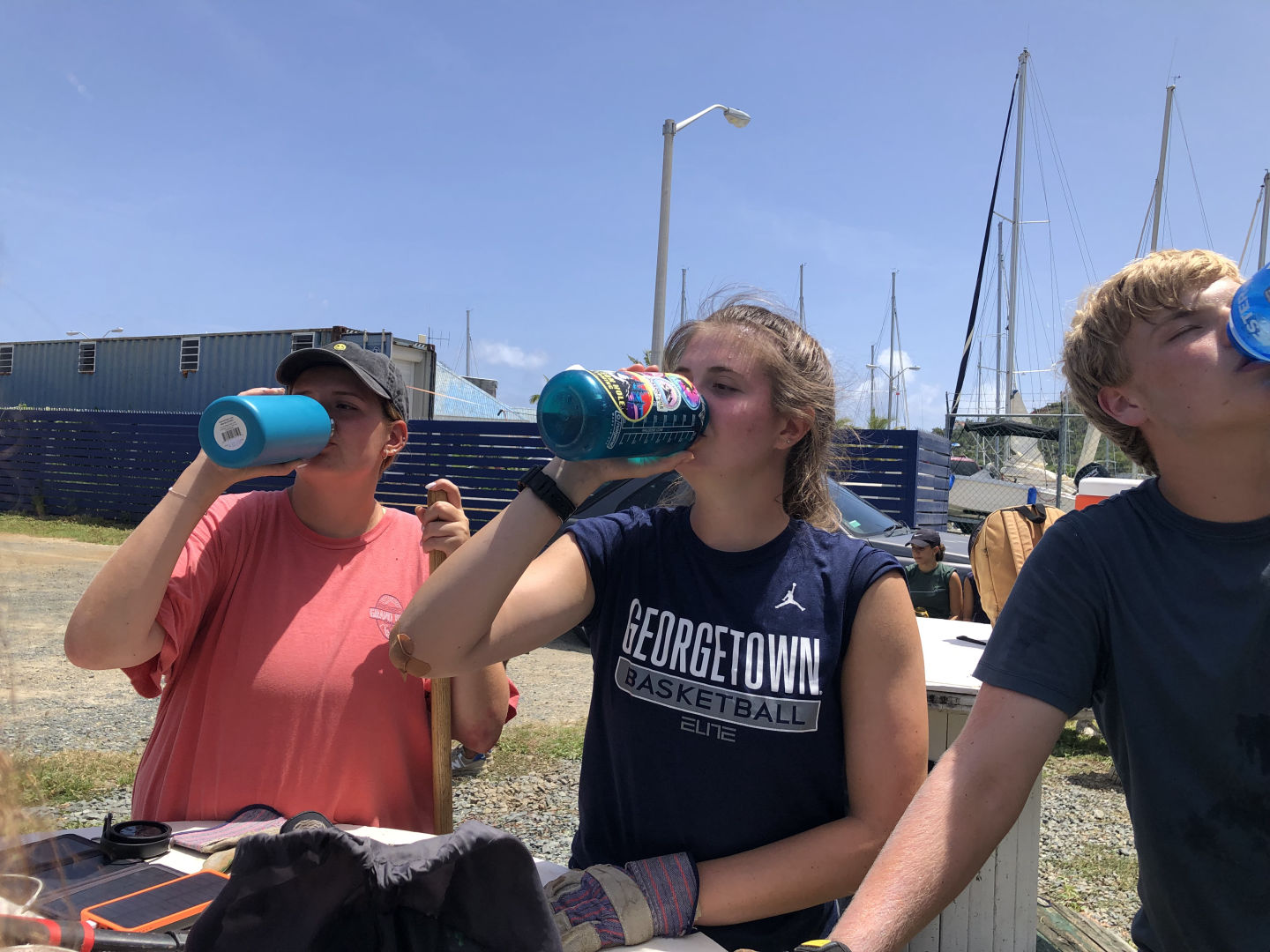 Our adventures on the boat started bright and early today. At 4 am, we set sail. We sailed from Sandy Spit and docked at Road Town, where we were able to refill our dangerously low water tank. Thankfully, the counselors were the only ones who had to wake up before sunrise. As per usual, Kris’s loud music woke us up at seven sharp. We quickly ate cereal for breakfast as Annie briefed the group on the work we would be doing at VISAR (Virgin Islands Search and Rescue). We arrived by cab at the site, where we proceeded to clean up the front and sides of the VISAR building. Anna S., Shaila, Morgan, Chris, and I had a great time pulling out weeds and raking up leaves while listening to music that Riley despises.