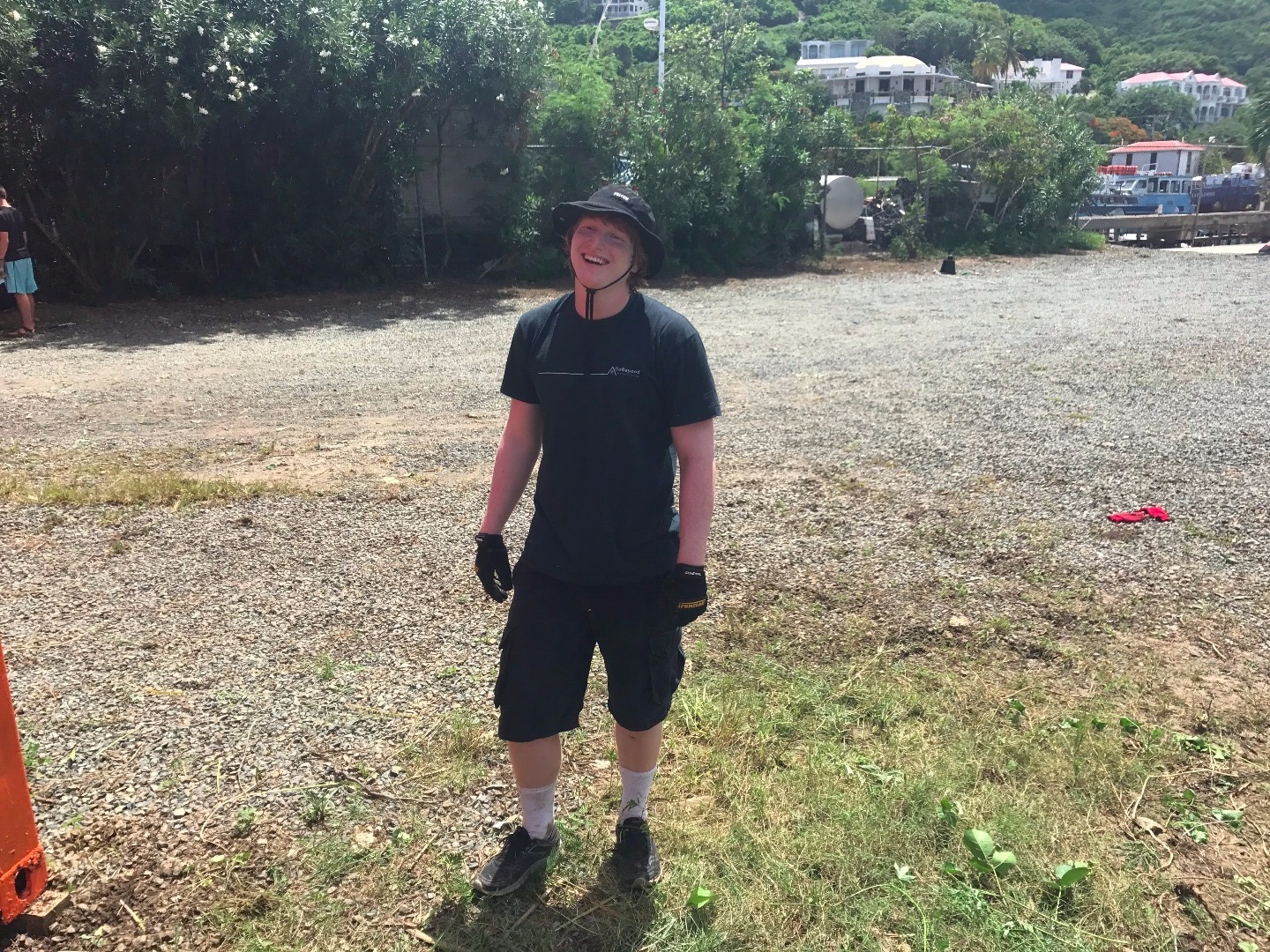 Today we woke up bright and early to the smell of blueberry muffins and oatmeal. Once done eating, we were on our way to Road Town, once again. In a rush, we threw on work clothes, grabbed water bottles and sneakers to help out at Visar, Virgin Islands search and rescue. As a joke, Elliot tried to convince us that a small, run-down shack was the base and many people believed it. Luckily, we kept driving and got to the real base, a big garage with many offices and jobs for us to do. Since the organization is entirely funded by donations and volunteer-based, every hand was needed. Everyone split into groups of weeding, washing uniforms and counting inventory of medical supply. The rain showers in the middle of the day didn’t stop any of us from working. After lunch, the rest of the day was a blur, and some of us switched over to measuring and counting mangroves. Then after the dirty day of labor, we got to use real showers on the dock and pizza for dinner! At the end of the day, the hard work paid off. 🙂