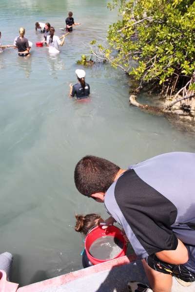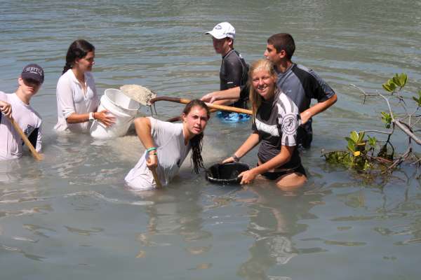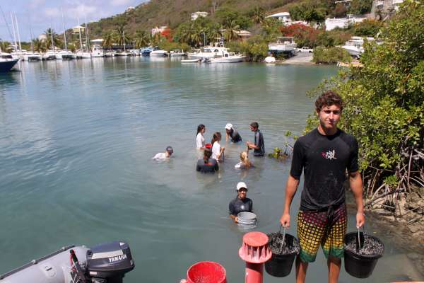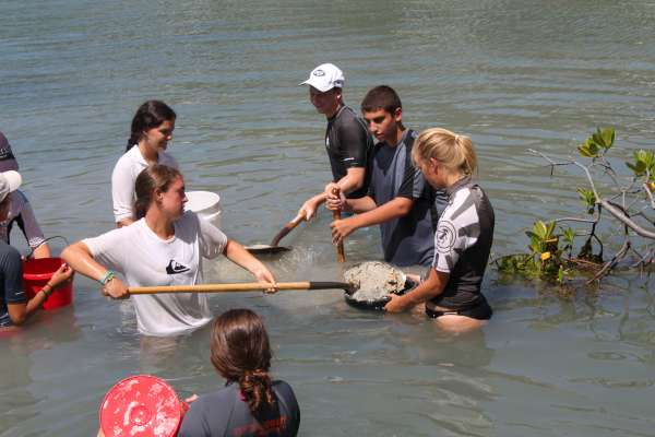This lovely morning, Catalinaville awoke, ready for another fantastic day. Today, we had an extremely important service project to do. We volunteered for an organization called the Virgin Islands Search and Rescue, or VISAR. They are a completely volunteer-based search and rescue group who responds to distress calls in the area, especially tourist rental boat calls, or “shouts.” They have one base on Tortola, where we were today, and another on Virgin Gorda. The work we were doing today was to dredge a channel so their rescue boat could get in and out easier. We stood waist deep in water, shoveling sand into buckets. It was hard work, but we all knew it was important to do a good job, so we tried our best. We worked at VISAR for almost the whole day, stopping only for a special treat at lunch we got to order pizza! Everyone was VERY excited about that. Then we returned to the boat and got another surprise-we would be showering at the Sunsail base for the second day in a row! It was nice to relax after the hard day, and we are planning on having a leisurely night. The trip is winding down to an end, and we are all trying to savor every moment!