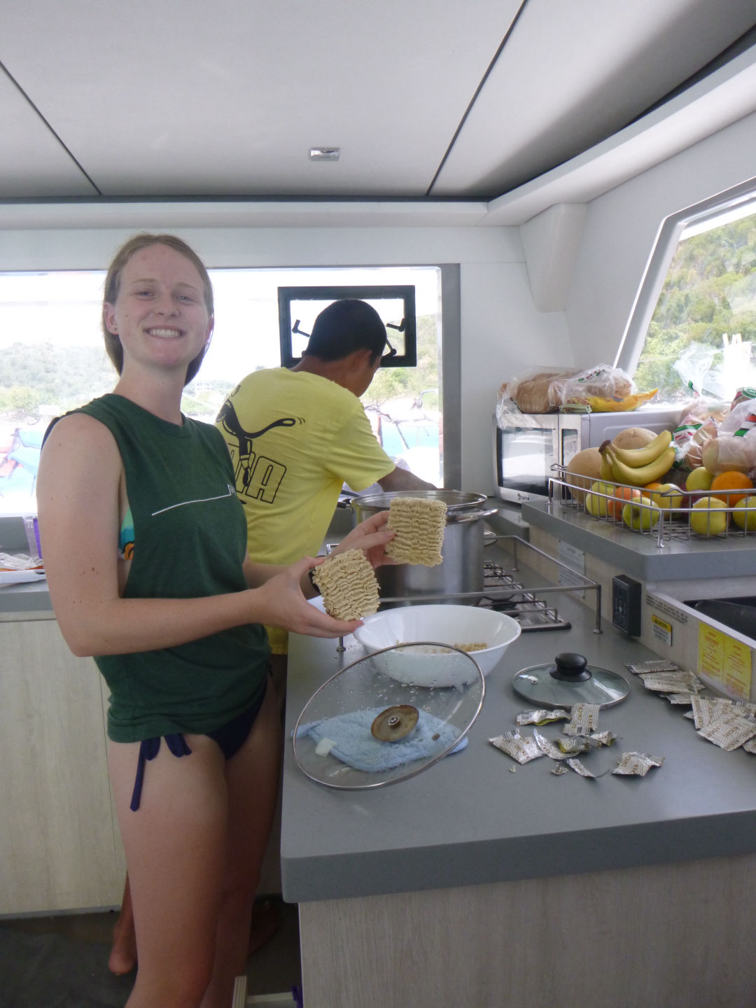 Hi everyone!! Today was a super chill day. Ella woke up early to switch up breakfast and make us all pancakes!! We got to go knee boarding and wakeboarding around the bay, which Zoe is fantastic at, and we had a solid second attempt at turtle tagging. Despite there being no turtle sightings, we saw tons of coral, fish, and a stingray. In addition to the swapping of books and joy rides with Jess and Lindsey, we had 28 packs of ramen for lunch for 15 people, which was the cherry on top of our day. Following more rest, relaxation, and flotation, Gavin served and welcomed two guests to our humble abode for a makeshift dinner of our remaining food, courtesy of Ella and Gary. After dinner and squeeze, we went around the table to share our first impressions of the group and counselors. We’re all looking forward to another fun day here and can’t wait to see our lovely parents when we get back! Miss you all 🙂