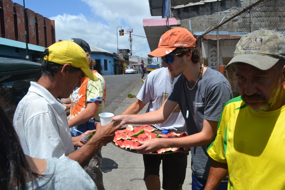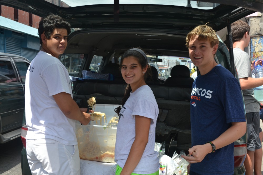 Today was something new for us because the students were put in charge of deciding what we would do for the day to give back to the people of Costa Rica. The group decided to head back to La Carpio to work on some important projects we started yesterday, including painting a motivational mural on a library wall and setting up a daycare with local children who have so little compared to us. Santiago, Michael, Sofia and I spent the morning helping the ladies at the Montessori prepare a meal to take to the homeless people in San Jose. We all had a taste of the food we made and ate the lunches that our host moms made for us before we said our last goodbye to everyone in La Carpio, a place that has inspired us and also one we will never forget. We arrived at San Jose and supplied the homeless men and women with a filling lunch of spaghetti and sauce, bread and butter, salad and lemonade (or “fresca”). They all thanked us and returned to their shelter across the street. We then quickly grabbed a bite to eat before heading back to Santa Ana to meet our families and get ready for an exciting game of futbol. What a great way to celebrate a hard day at work!