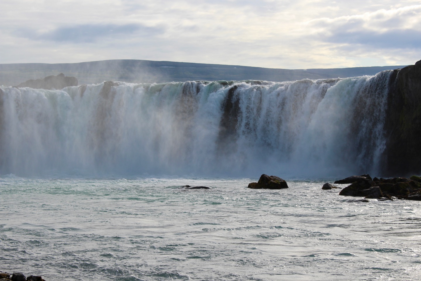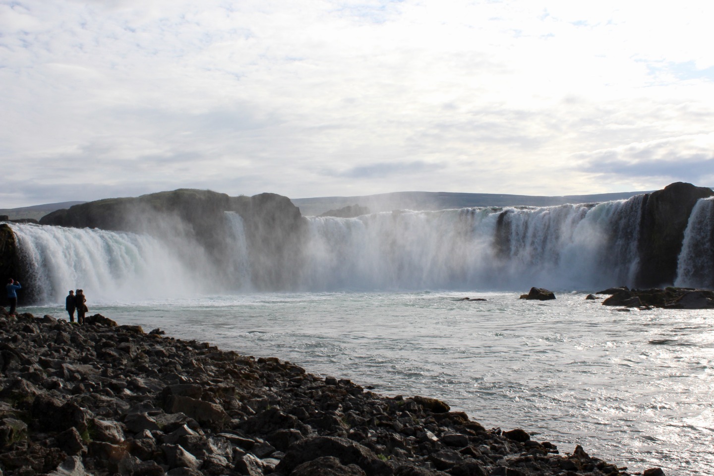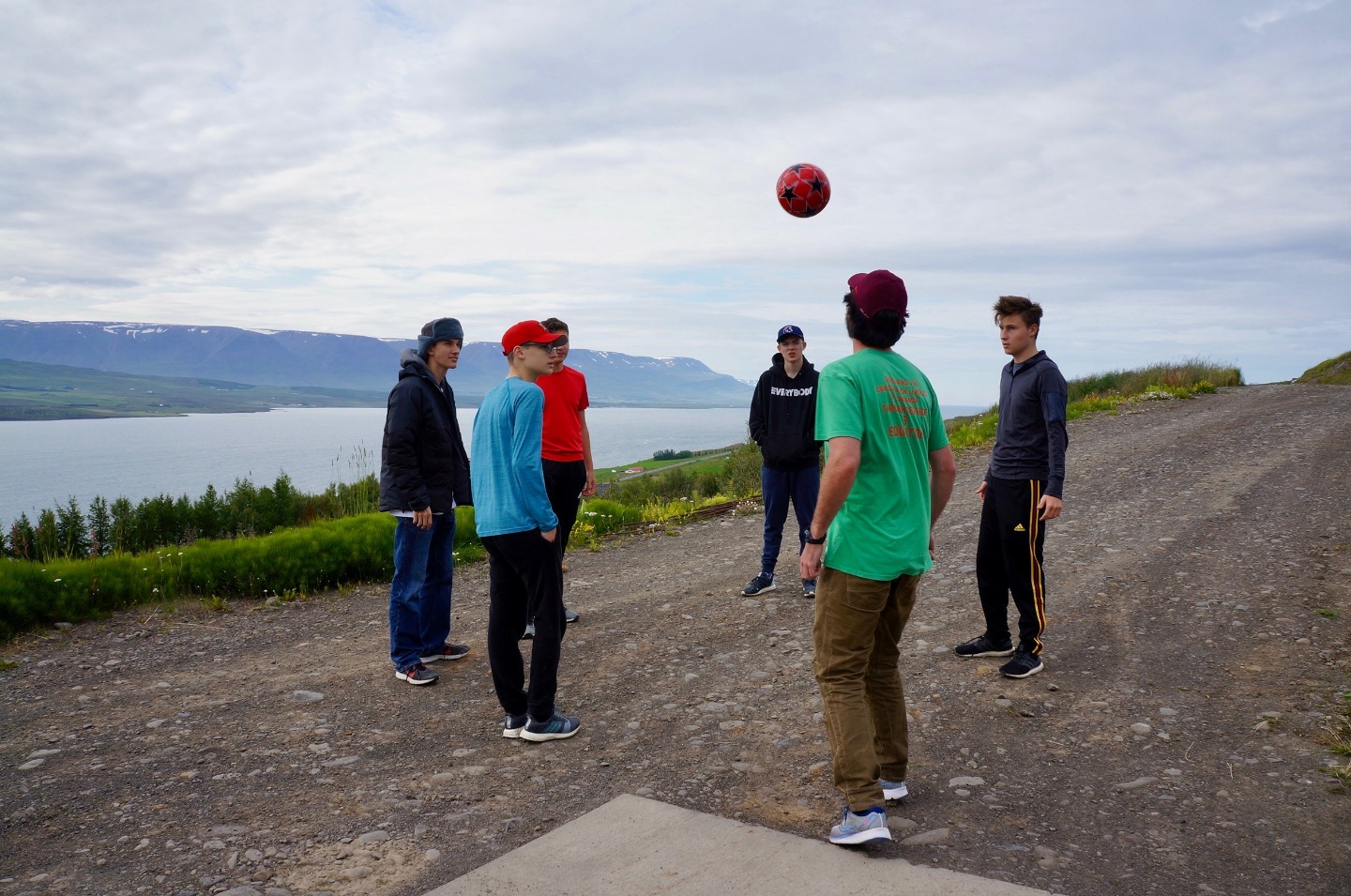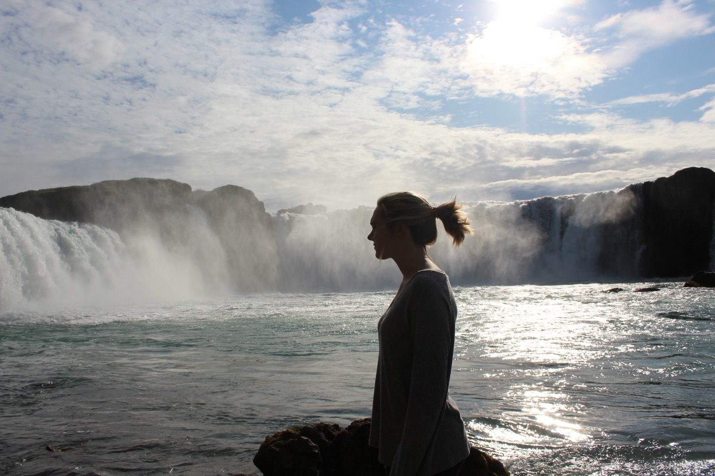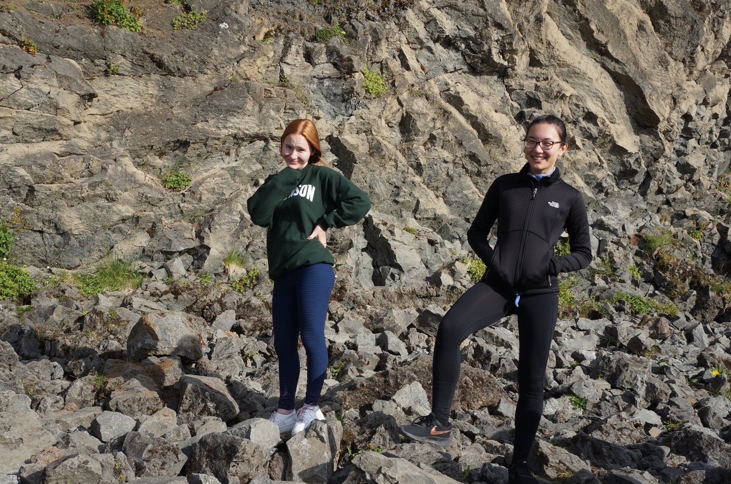 We woke up this morning around 8:45 again for breakfast before our seven-hour travel day out of Reykjavik. After some Cocoa Puffs, Skyr, and Nutella toast, we grabbed our bags and got on our bus. We talked and played two truths and a lie for a few hours before stopping for lunch along the way.. Back on the bus, we counted waterfalls, looked for horses and sheep, and occasionally cows for several hours. We later had another stop at a beautiful waterfall, Godafoss, where we took lots of pictures and explored for an hour. Then Sofi and I tried on furry hats for a solid half hour in the store before getting back on the bus. For the last few hours on the bus, we learned slang from our home towns and got to know each other a lot better. We saw an island inhabited by puffins, small penguin-like birds that can fly. At the end of the day, the seven hour bus drive had turned into a 10 hour travel day. When we finally arrived, we got our roommate assignments and everybody explored around the community while Sofi, Max, and I cooked dinner at 9:15. Even though it was a travel day, we still got to see amazing views and had a fun day.