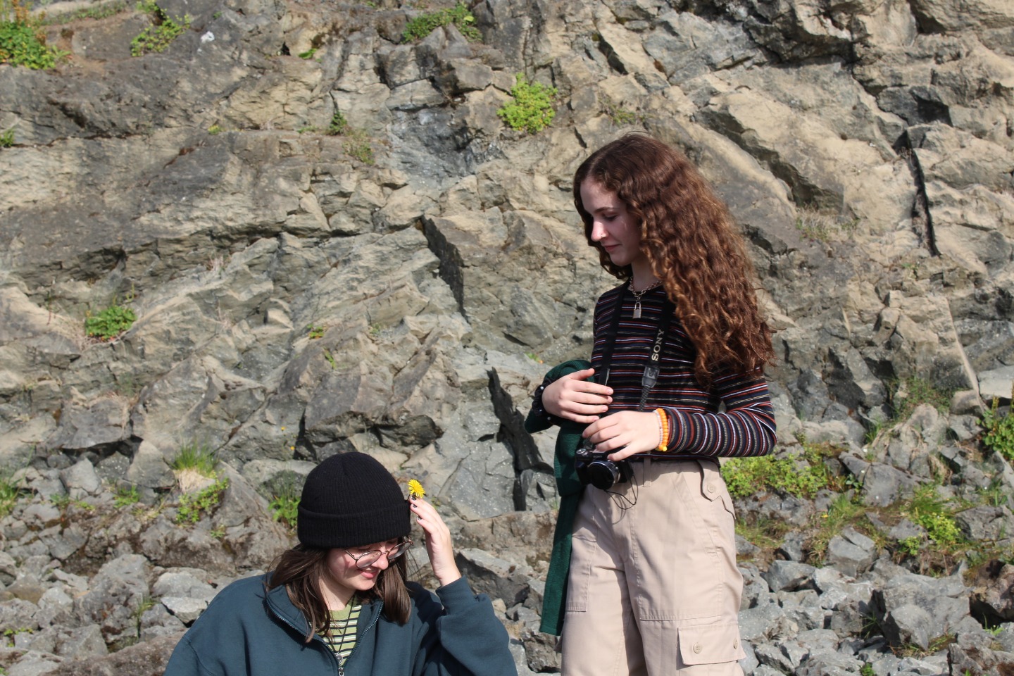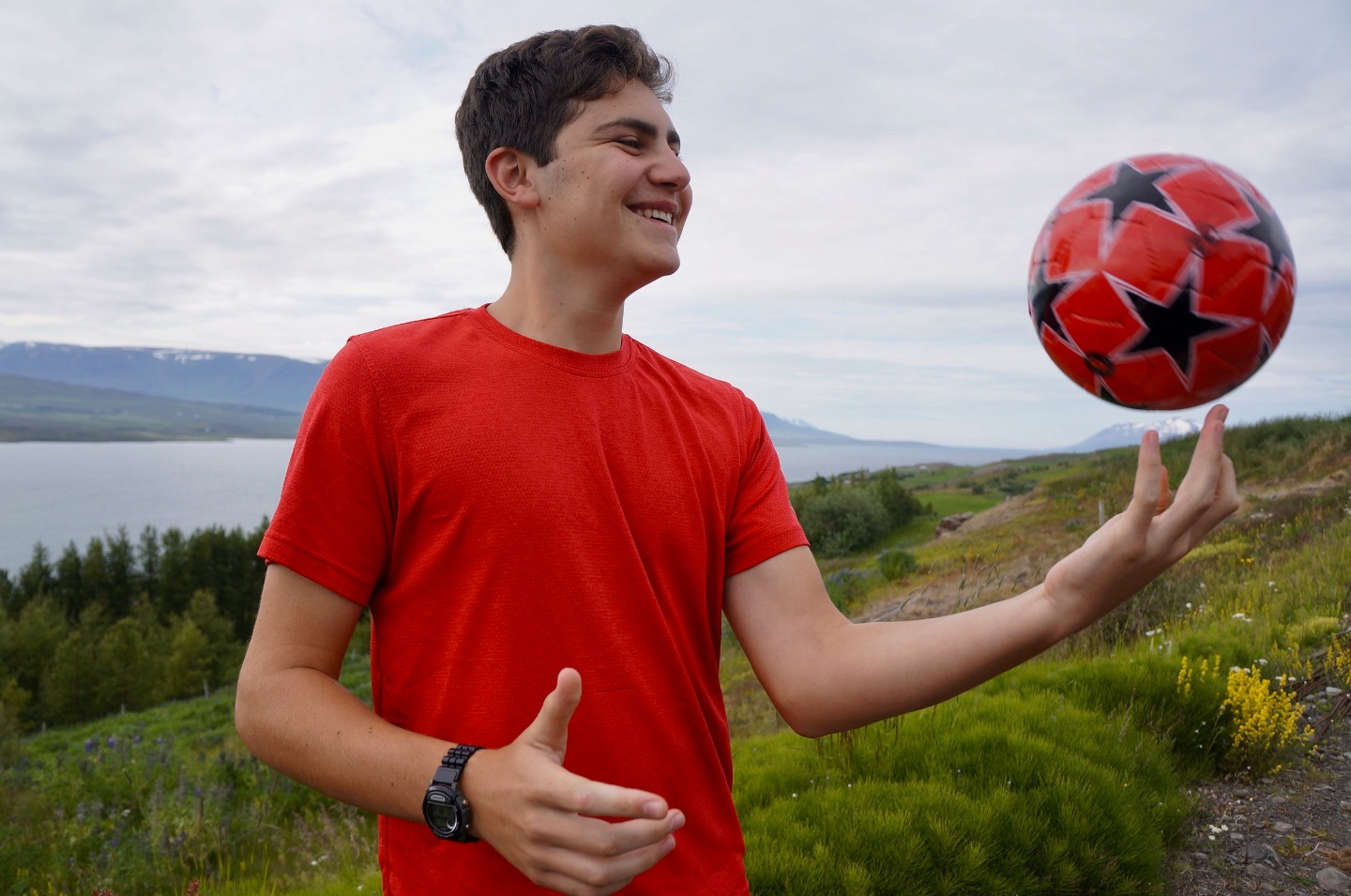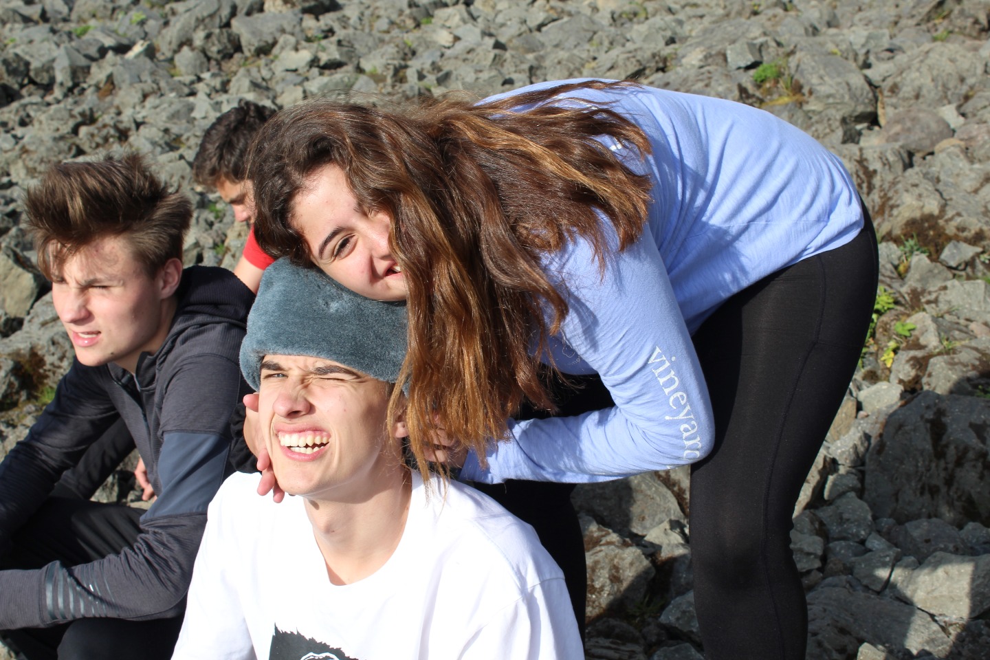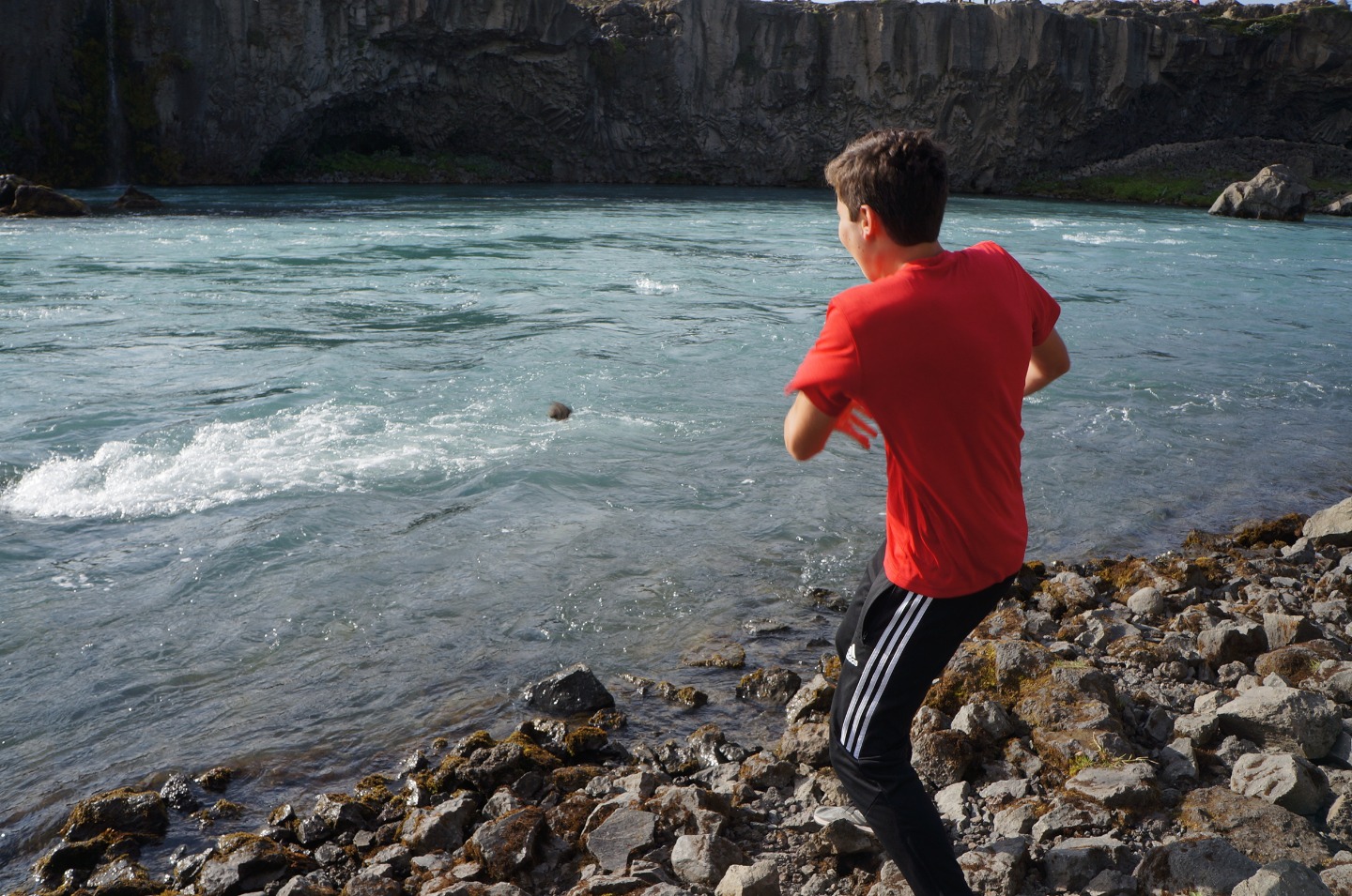 We woke up this morning around 8:45 again for breakfast before our seven-hour travel day out of Reykjavik. After some Cocoa Puffs, Skyr, and Nutella toast, we grabbed our bags and got on our bus. We talked and played two truths and a lie for a few hours before stopping for lunch along the way.. Back on the bus, we counted waterfalls, looked for horses and sheep, and occasionally cows for several hours. We later had another stop at a beautiful waterfall, Godafoss, where we took lots of pictures and explored for an hour. Then Sofi and I tried on furry hats for a solid half hour in the store before getting back on the bus. For the last few hours on the bus, we learned slang from our home towns and got to know each other a lot better. We saw an island inhabited by puffins, small penguin-like birds that can fly. At the end of the day, the seven hour bus drive had turned into a 10 hour travel day. When we finally arrived, we got our roommate assignments and everybody explored around the community while Sofi, Max, and I cooked dinner at 9:15. Even though it was a travel day, we still got to see amazing views and had a fun day.