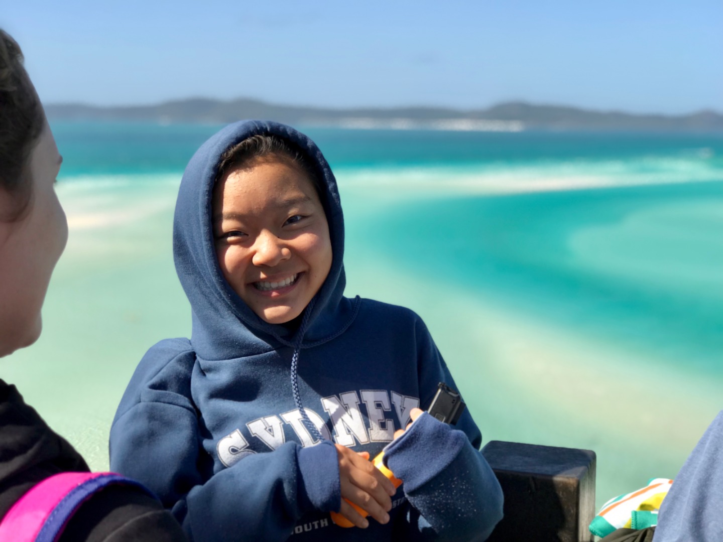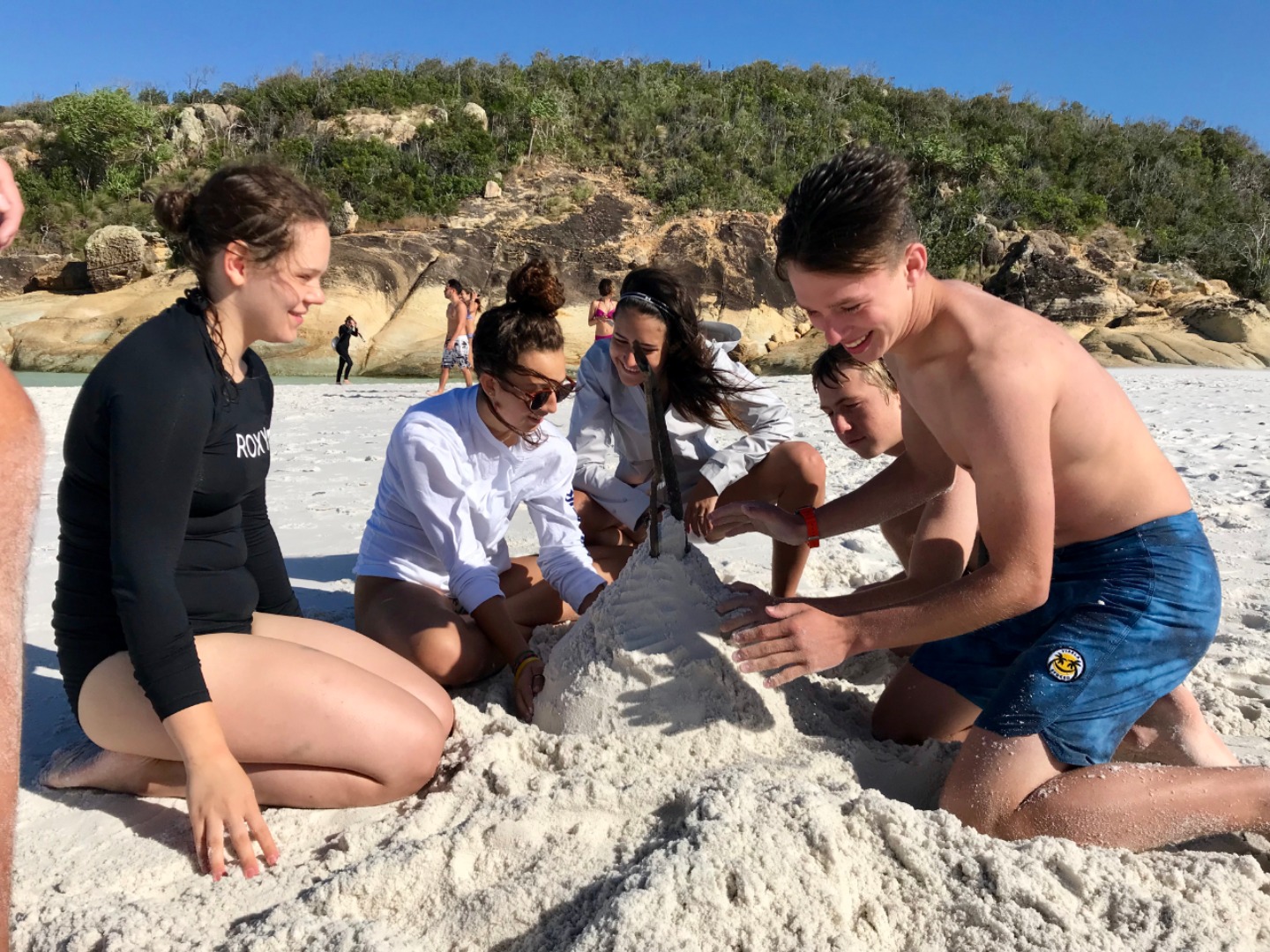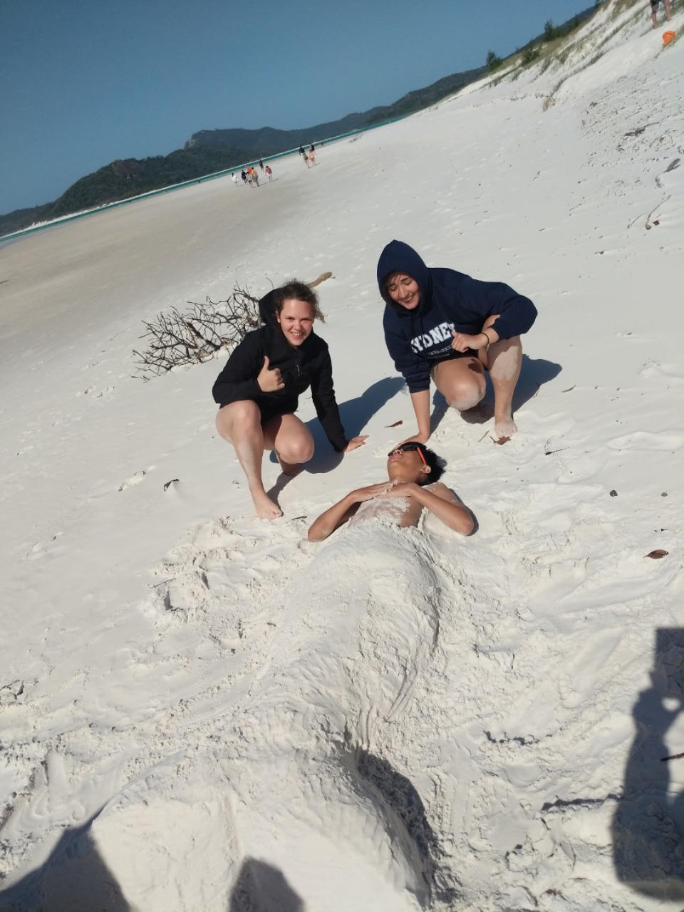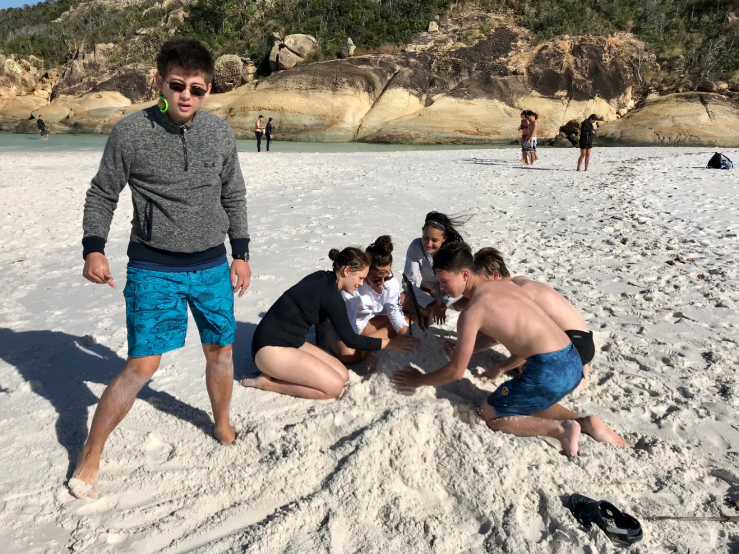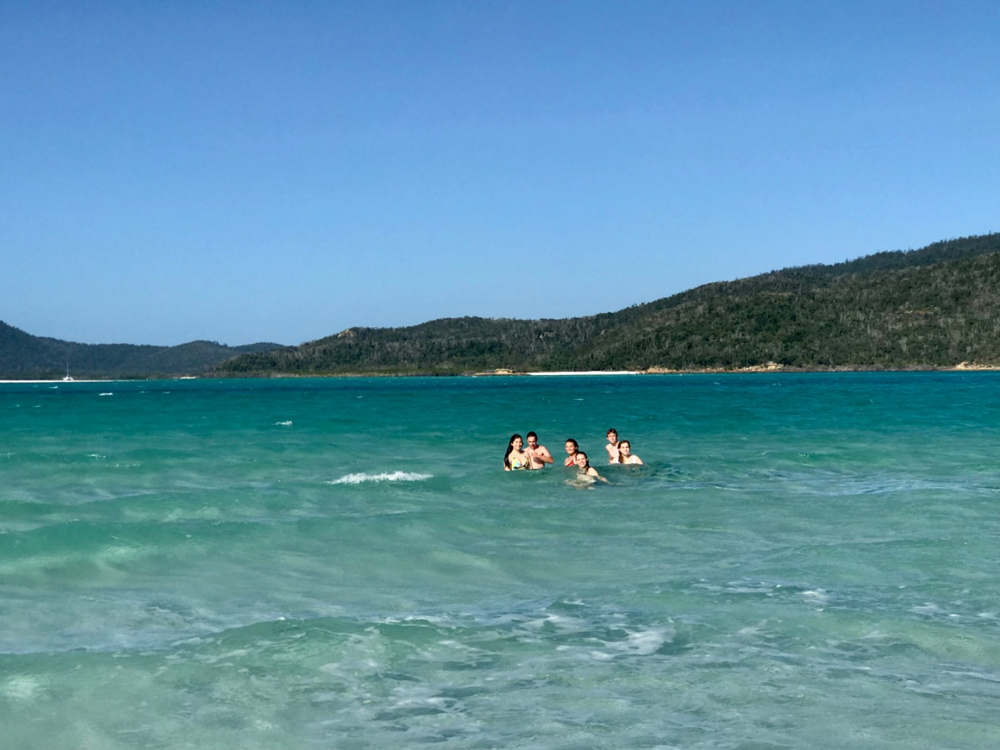 The title does not lie. That is what I will say. It does not lie. After a night of a meaningful conversation, we awoke to the busy ruckus of the morning rush for breakfast. I was tired, but deep down, I was excited for today. We were going to the beach with the whitest sand in the world! We went on the dinghy with Sarah to the beach where we stepped off to a large concession of tourists. We had a short hike towards the beach and Woah… The captain was not lying when he said that the sand was white as snow. The mix of the blue sea, sky, and the white sand were magnificent. We took some nice pictures and explored the picturesque sea. I was also a sand mermaid for about 15 minutes. We visited a cove where, for around 15 minutes, we were able to tan freely away from the wind. After that, we went on a small hike that looked over the turquoise bay. After that small adventure, we went back to the boat to chill out for the rest of the day. Overall, the white sand and lush cyan seas are something that will definitely stay with us for a lifetime; and I will never forget Whitehaven beach for years to come.