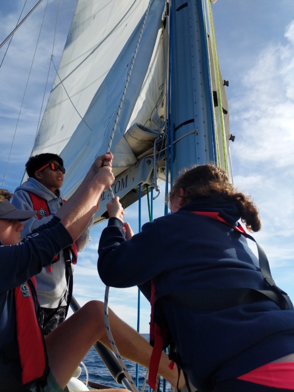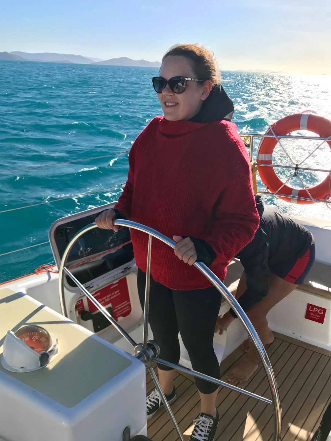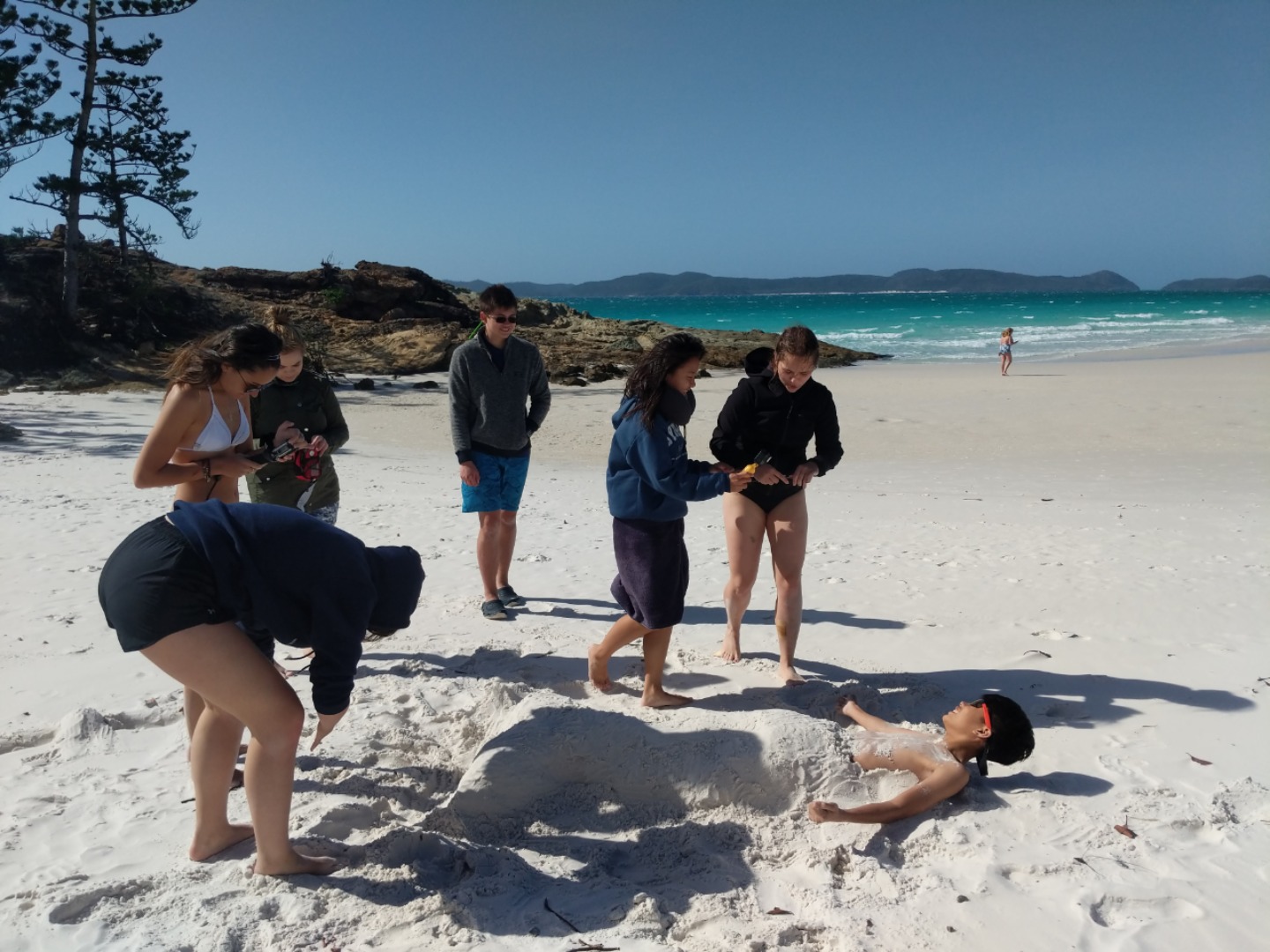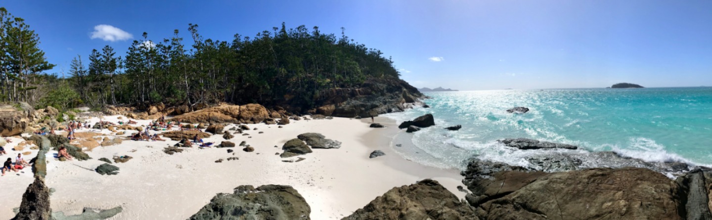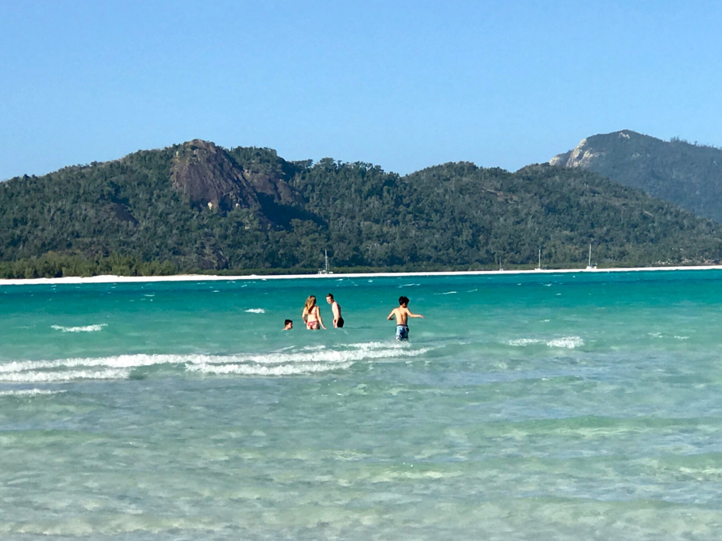 The title does not lie. That is what I will say. It does not lie. After a night of a meaningful conversation, we awoke to the busy ruckus of the morning rush for breakfast. I was tired, but deep down, I was excited for today. We were going to the beach with the whitest sand in the world! We went on the dinghy with Sarah to the beach where we stepped off to a large concession of tourists. We had a short hike towards the beach and Woah… The captain was not lying when he said that the sand was white as snow. The mix of the blue sea, sky, and the white sand were magnificent. We took some nice pictures and explored the picturesque sea. I was also a sand mermaid for about 15 minutes. We visited a cove where, for around 15 minutes, we were able to tan freely away from the wind. After that, we went on a small hike that looked over the turquoise bay. After that small adventure, we went back to the boat to chill out for the rest of the day. Overall, the white sand and lush cyan seas are something that will definitely stay with us for a lifetime; and I will never forget Whitehaven beach for years to come.