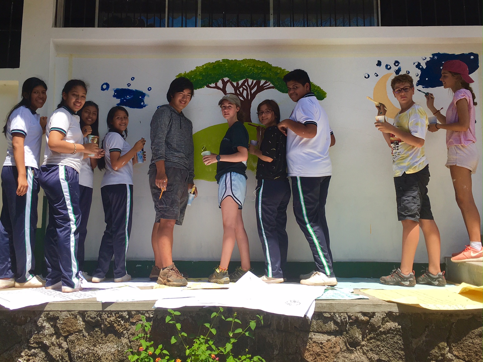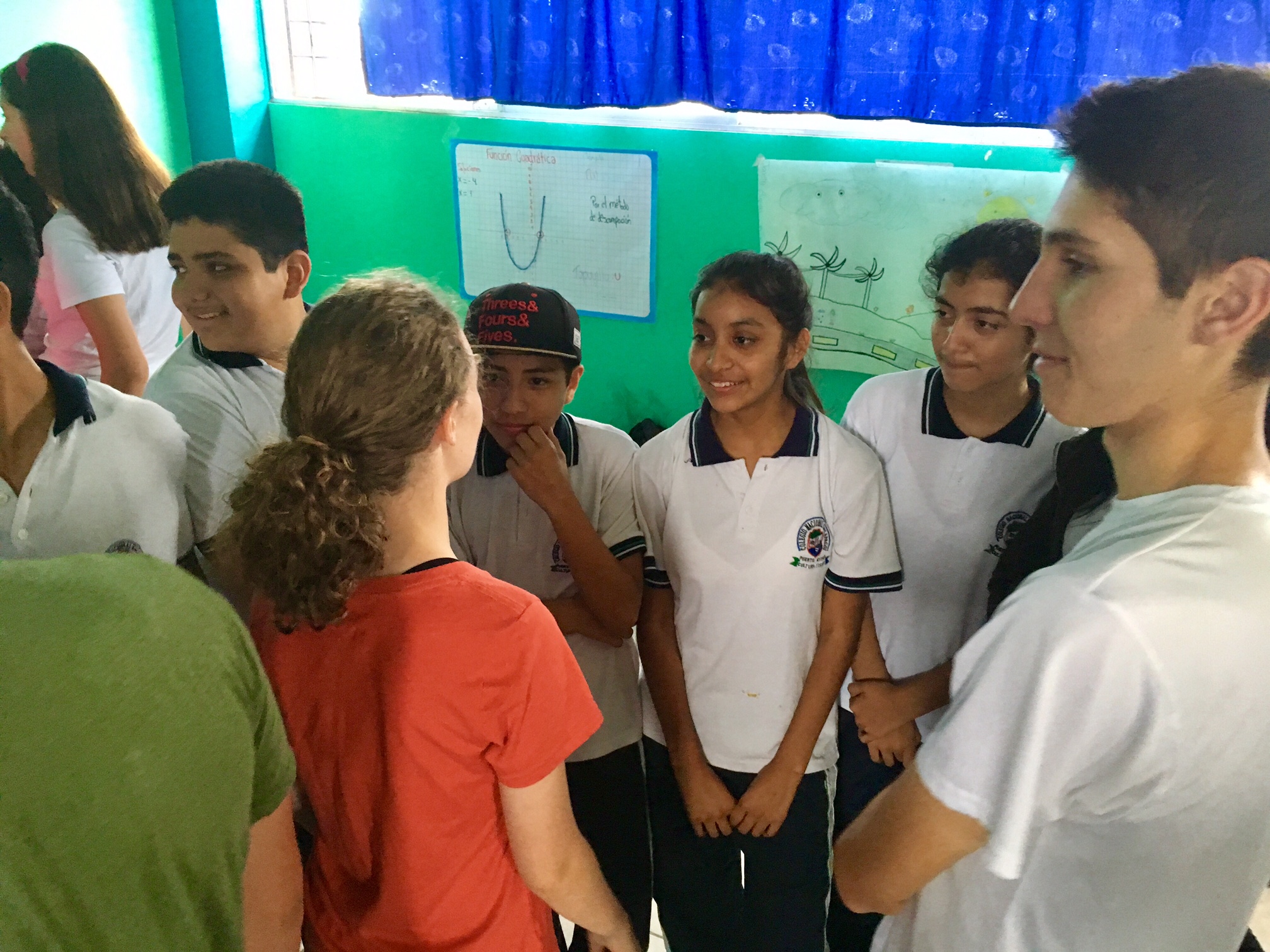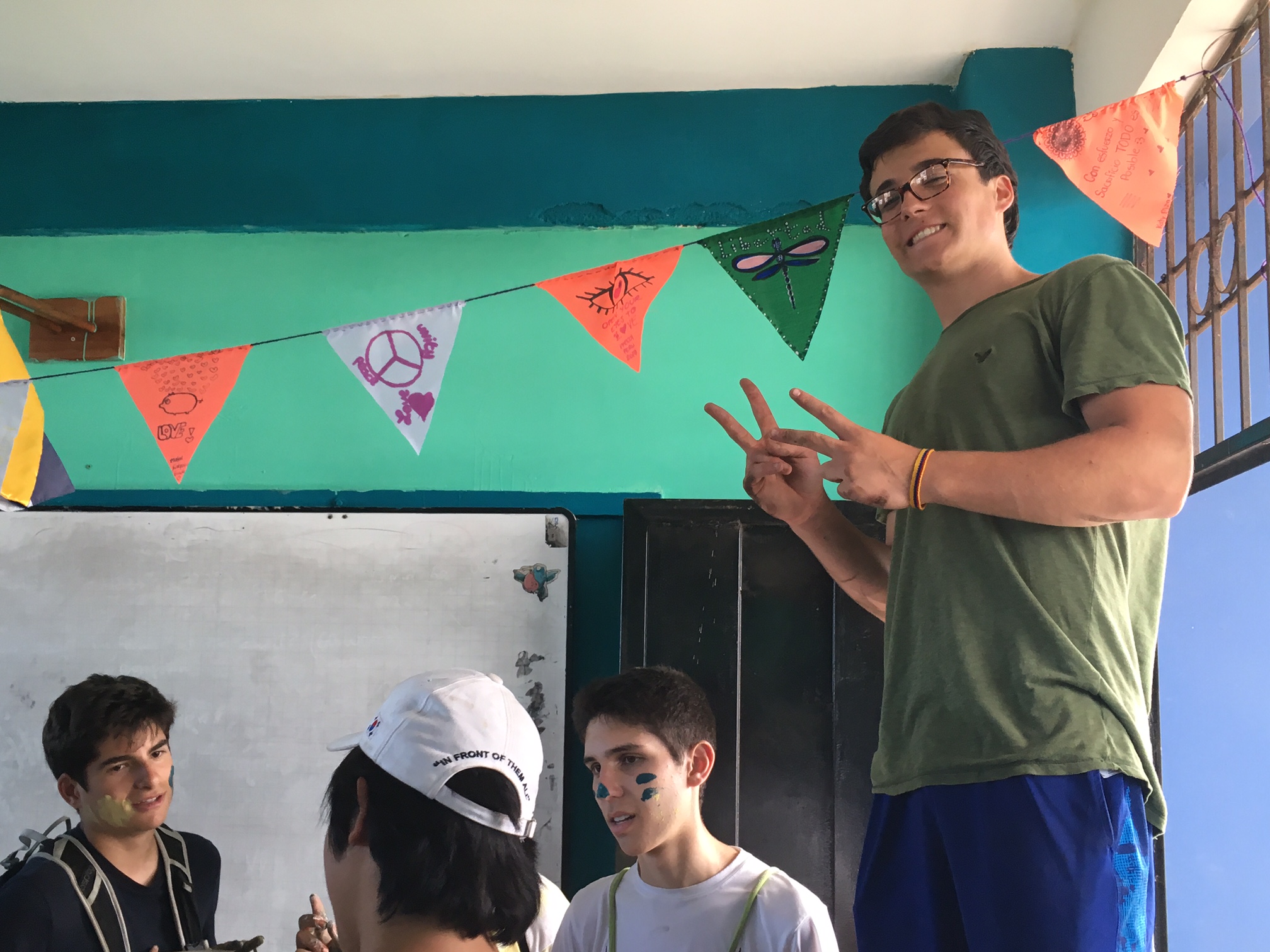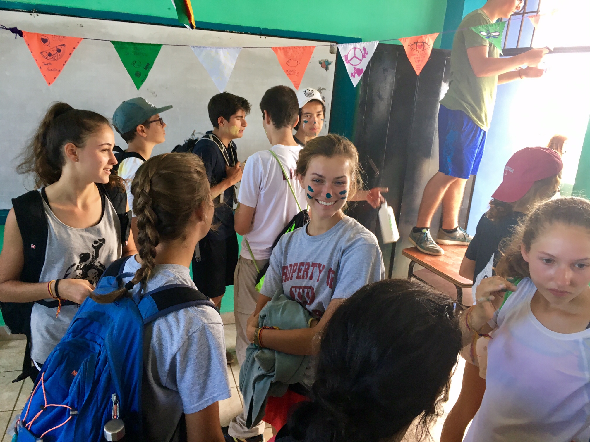 Today we went to volunteer at a local high school. After playing some warm-up games to get to know the students, we split up into different groups to do service work. My group was painting the theatre at the middle school. Although there were a few obstacles with cockroaches running around, accidentally painting a gecko, and general confusion, we came together to accomplish a lot. After we finished working, we went to eat lunch and then met some of the people from the school to play soccer. In the evening, we walked around and went shopping at a store where everything was made out of recycled materials. It was really fun to get to know the students from the high school and see the performance they put on to thank us after.