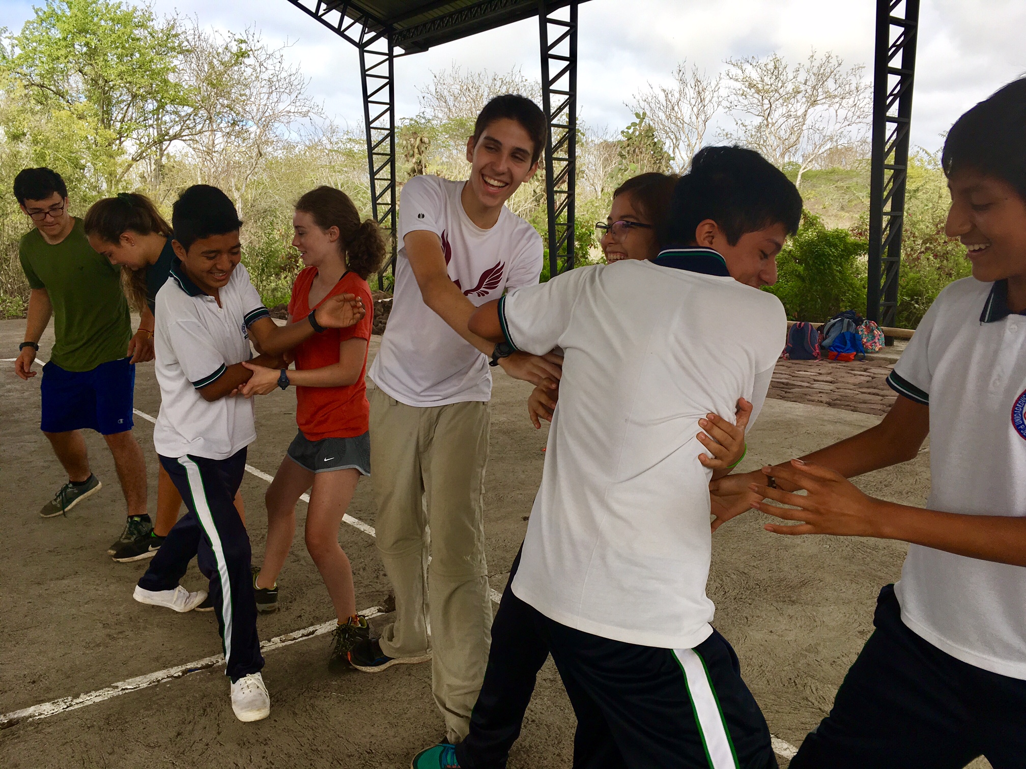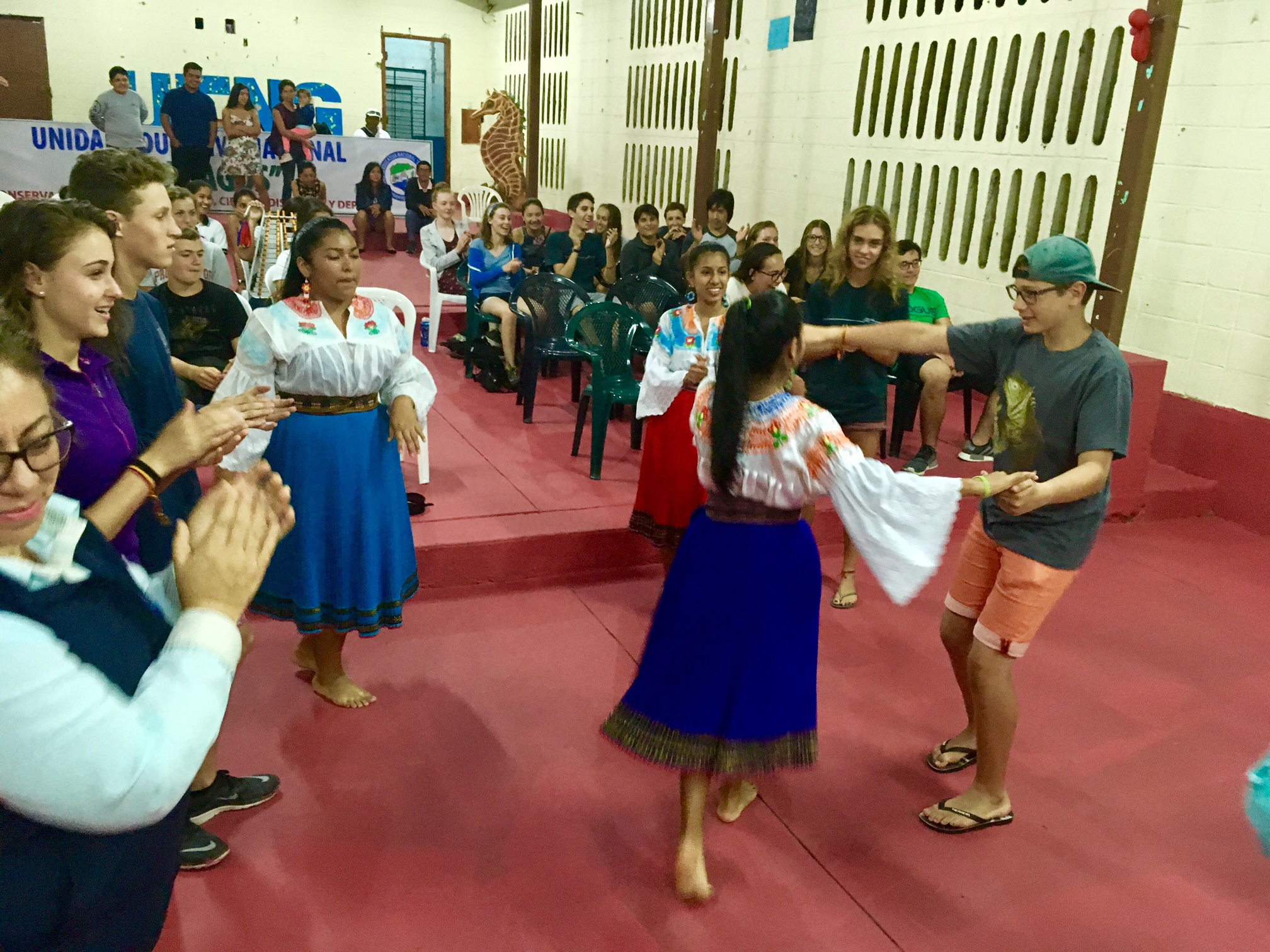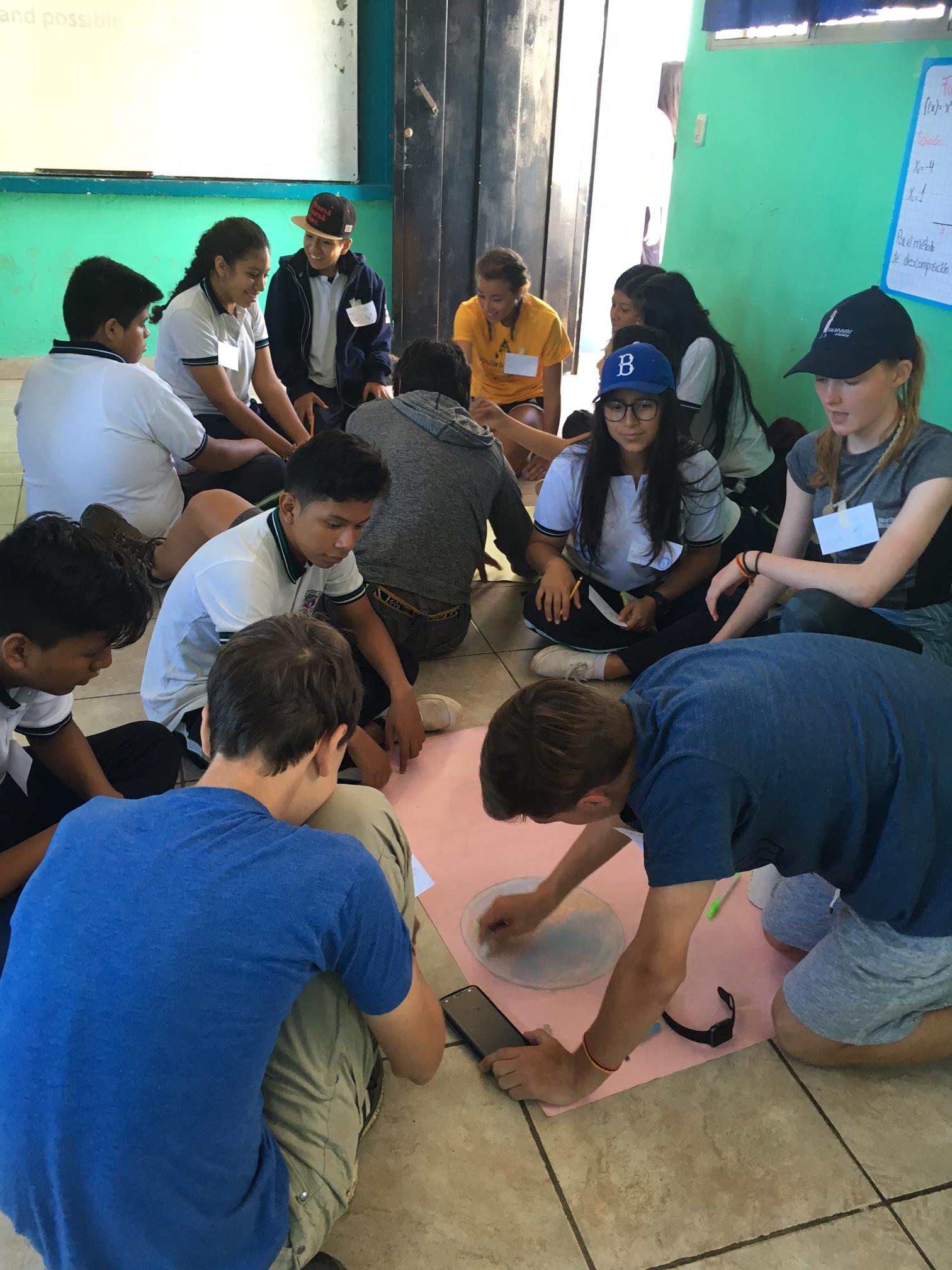 Today we went to volunteer at a local high school. After playing some warm-up games to get to know the students, we split up into different groups to do service work. My group was painting the theatre at the middle school. Although there were a few obstacles with cockroaches running around, accidentally painting a gecko, and general confusion, we came together to accomplish a lot. After we finished working, we went to eat lunch and then met some of the people from the school to play soccer. In the evening, we walked around and went shopping at a store where everything was made out of recycled materials. It was really fun to get to know the students from the high school and see the performance they put on to thank us after.