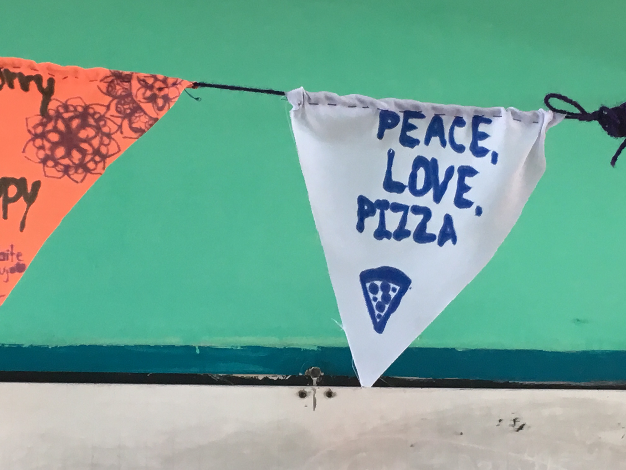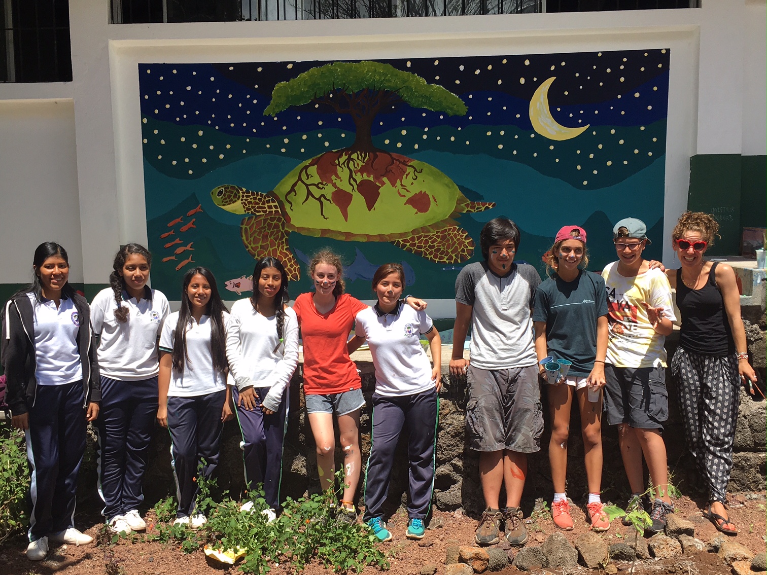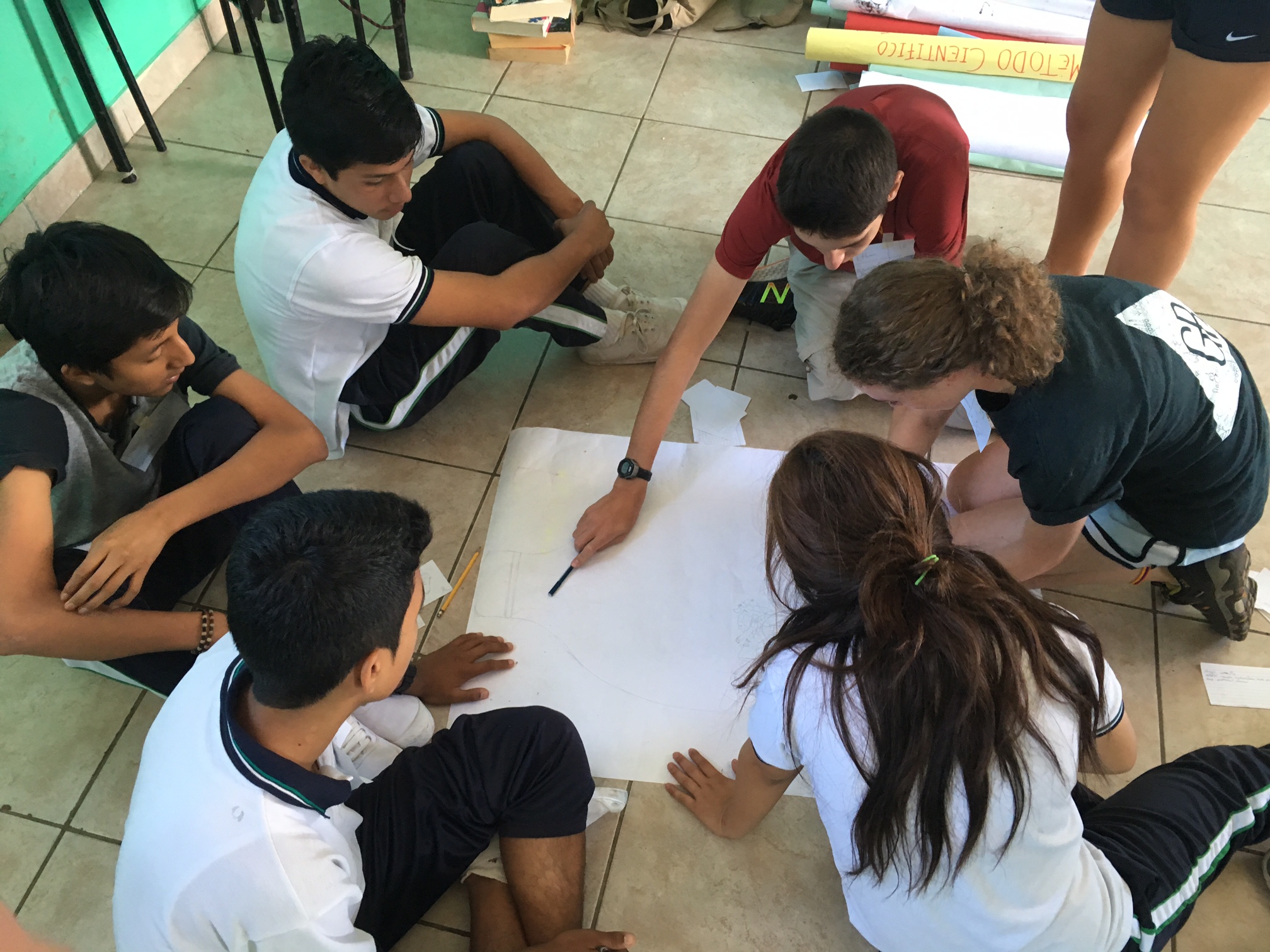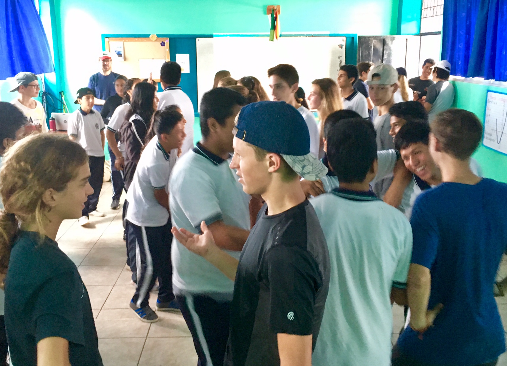 Today we went to volunteer at a local high school. After playing some warm-up games to get to know the students, we split up into different groups to do service work. My group was painting the theatre at the middle school. Although there were a few obstacles with cockroaches running around, accidentally painting a gecko, and general confusion, we came together to accomplish a lot. After we finished working, we went to eat lunch and then met some of the people from the school to play soccer. In the evening, we walked around and went shopping at a store where everything was made out of recycled materials. It was really fun to get to know the students from the high school and see the performance they put on to thank us after.