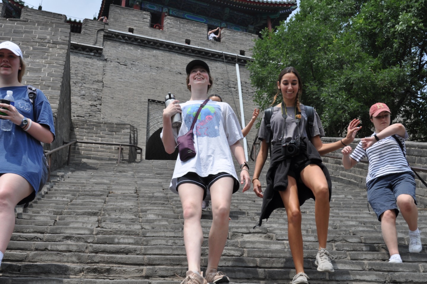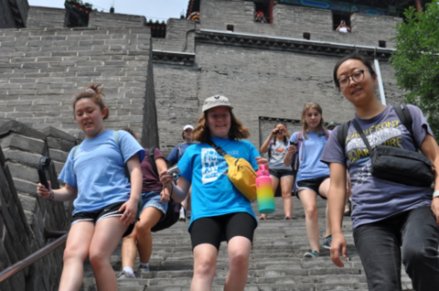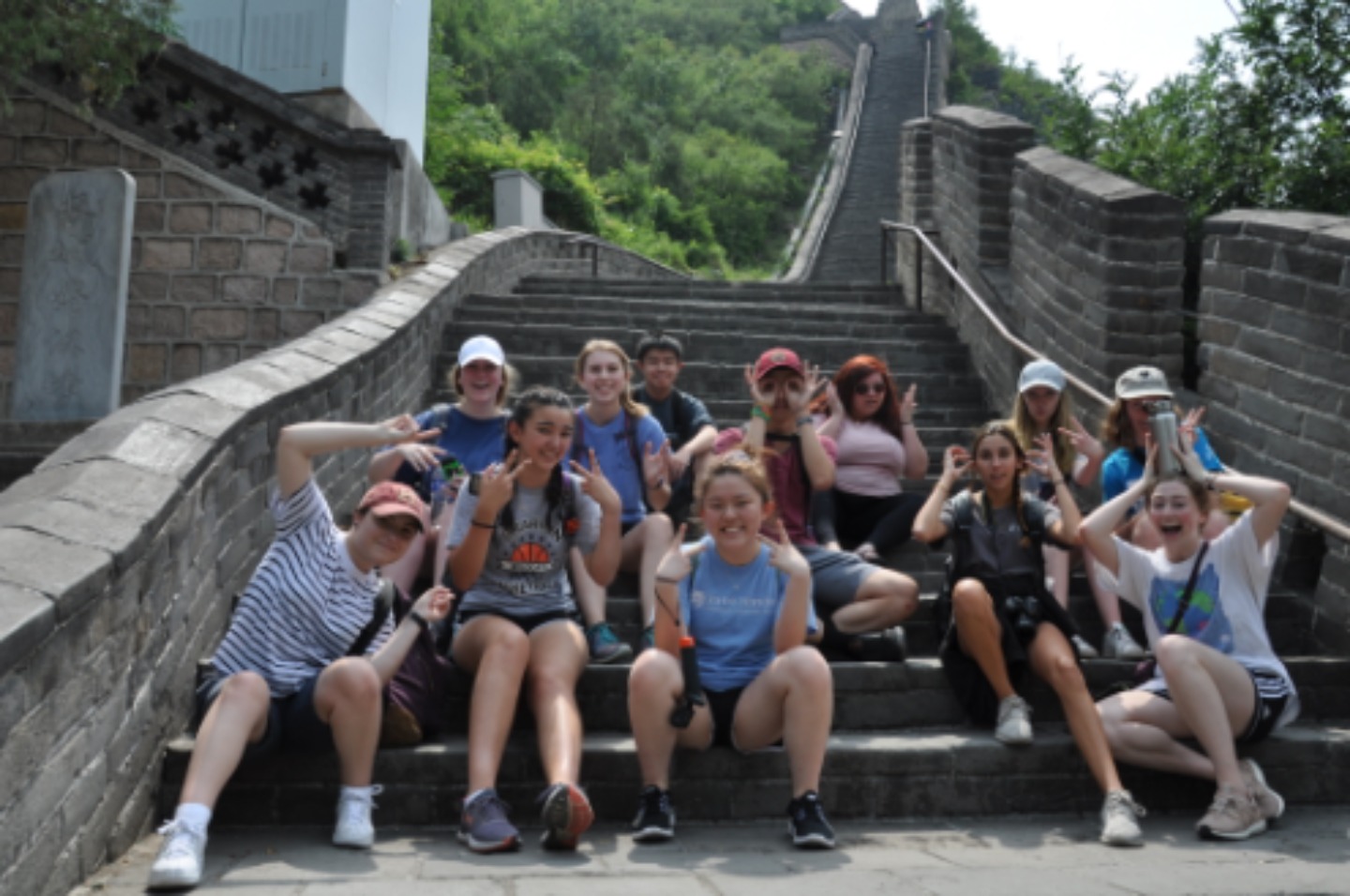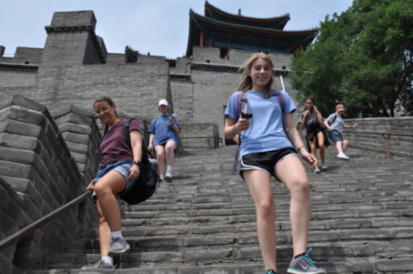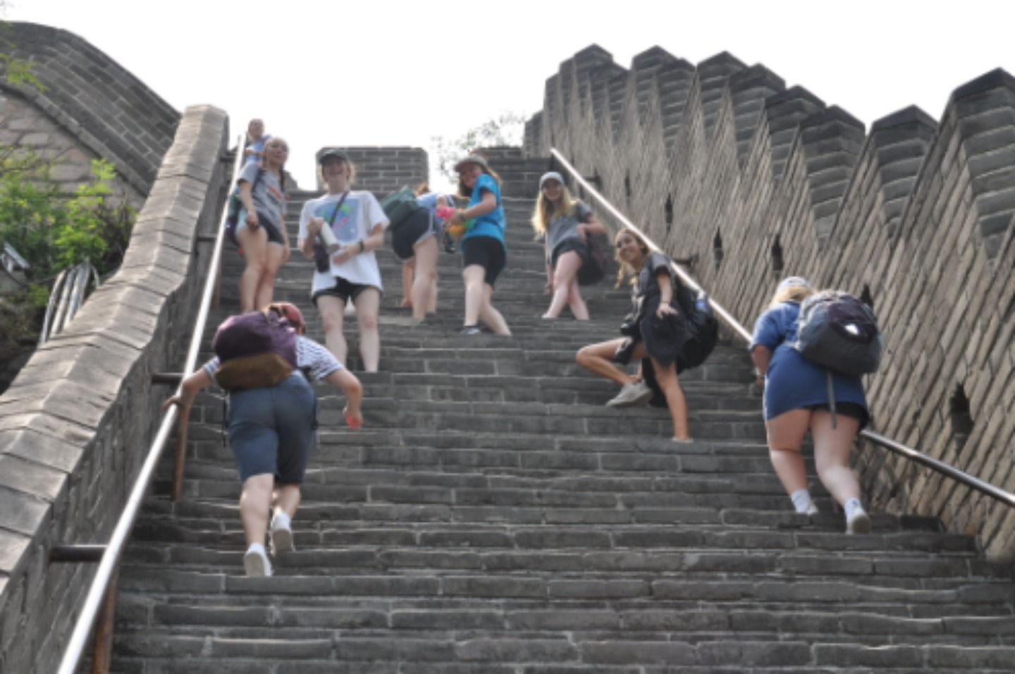 Today was such a crazy day. We did so much it was unbelievable! We went to the Great Wall of China, took a painting class, and went on our first overnight train ride. Around 10 am, we started our day and went to the Great Wall. The views were amazing. The mountains were so tall, nothing I have seen before. There was so much walking involved; the steps were so steep there. Walking to the top was equal to 44 flights of stairs. Which as you can tell is a lot. We had to drink so much water to stay hydrated. Even though it was so hot out, it will be something I will never forget. After the Great Wall, we went back to our bus. As we were driving, we passed a store called “Wumart.” Everyone lost it. Everyone wanted to go because it reminded us of the store “Walmart” at home. We talked about the store for hours…literally.