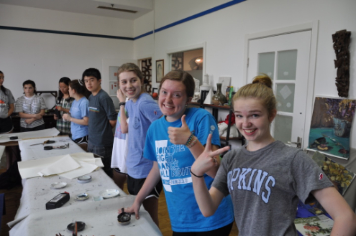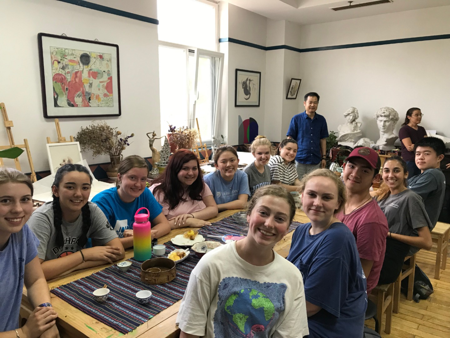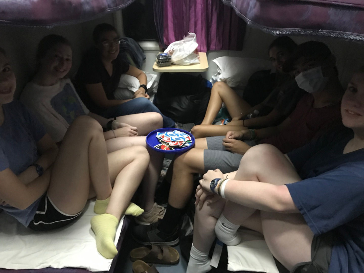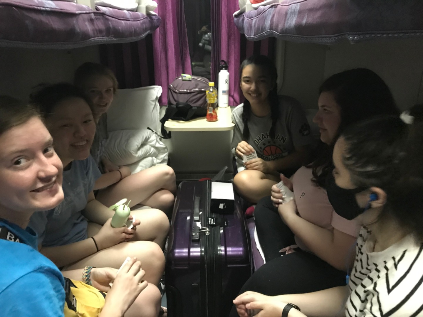After a while, we arrived at the painting class. It was so interesting to learn about traditional Chinese painting. We had a choice to paint either mountains or a flower. All the paintings came out so amazing. After painting, they gave us tea and biscuits. When we left the painting class, we passed by Wumart again, and yes we all freaked out again over it. We stopped by a local market to grab snacks for the overnight train ride. We found really cool stuff like cucumber chips and pineapple Fanta. It was so different from American foods. We arrived at the train station shortly after, it took a while to get through all the lines, but after we went to Starbucks and a gift shop. As we boarded the train, we went to our different compartments to sleep. The train was so hot, a lot of us got little fans to keep us cool. Even though the ride was a struggle at first, bonding and laughing with everyone was worth the struggle.