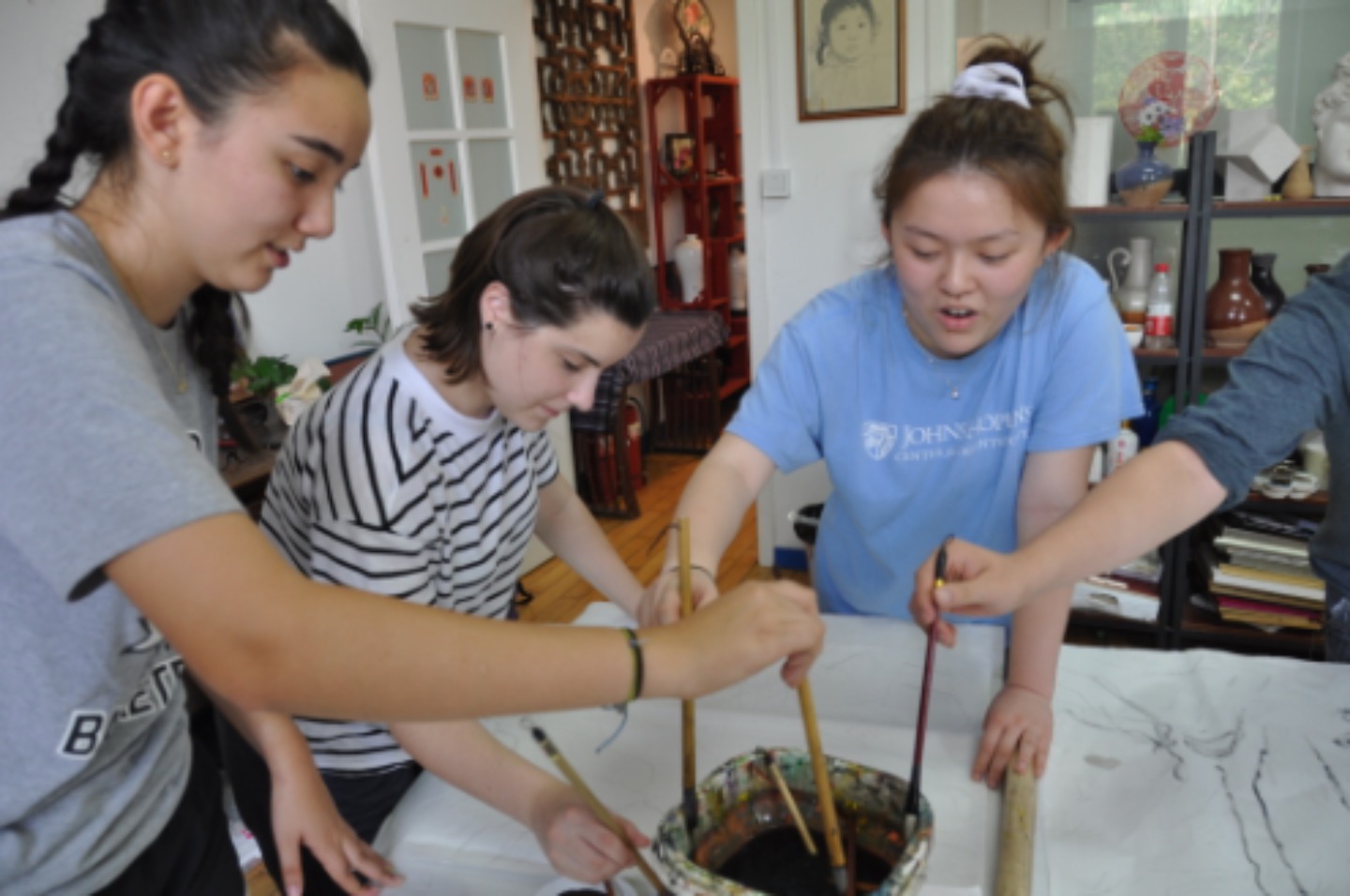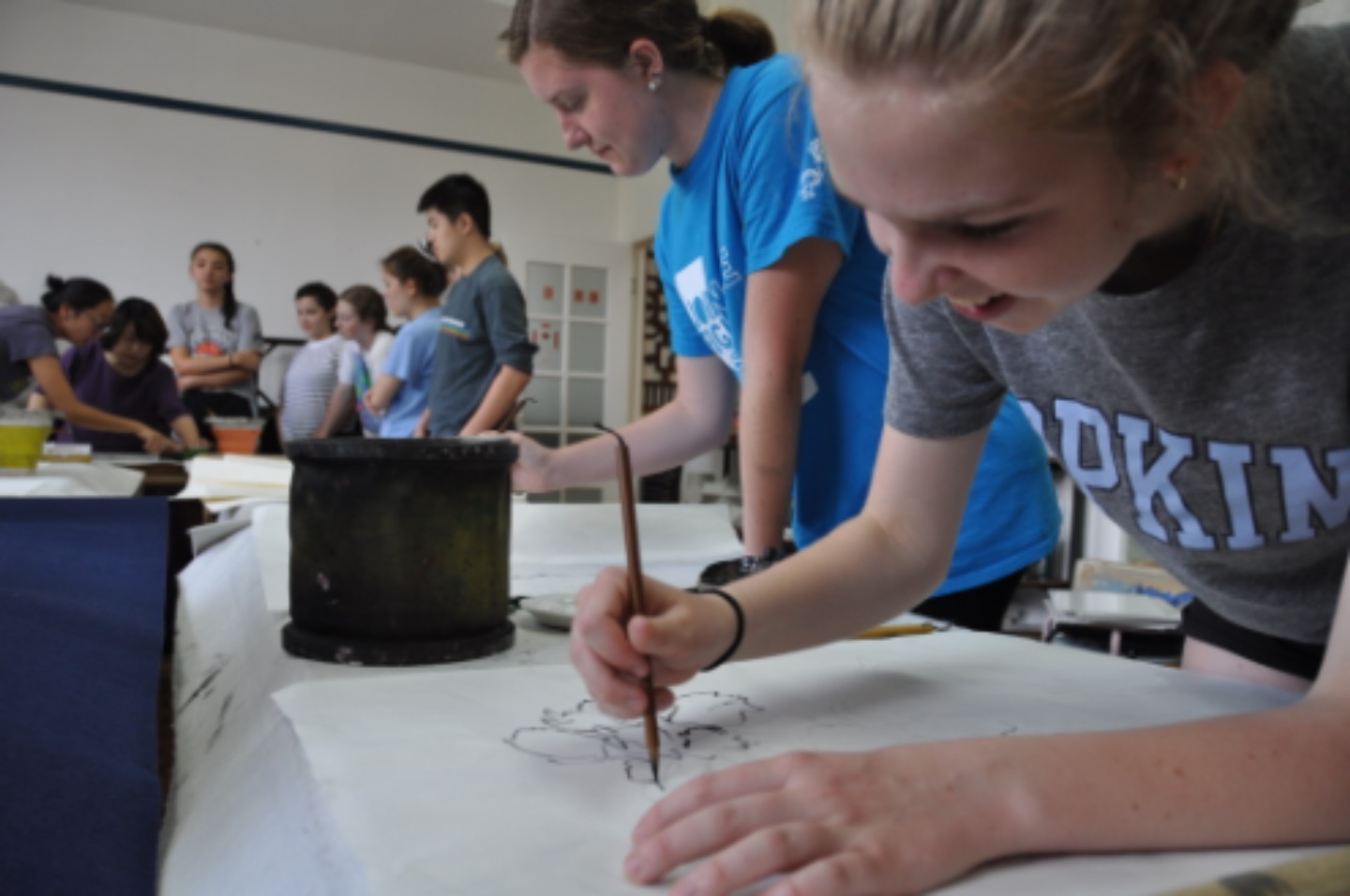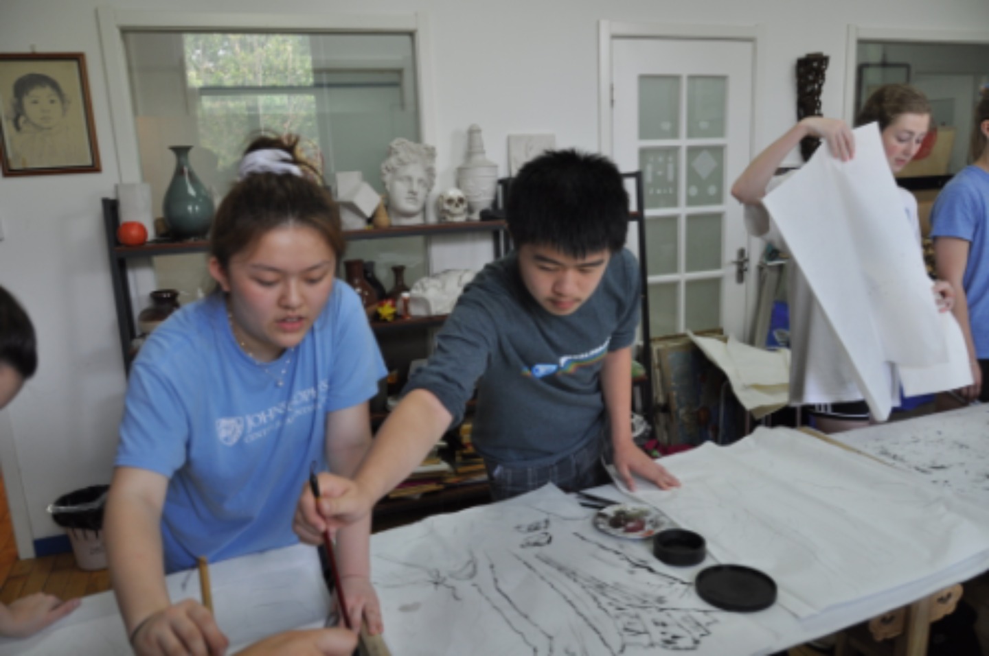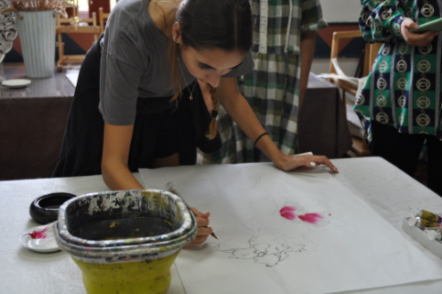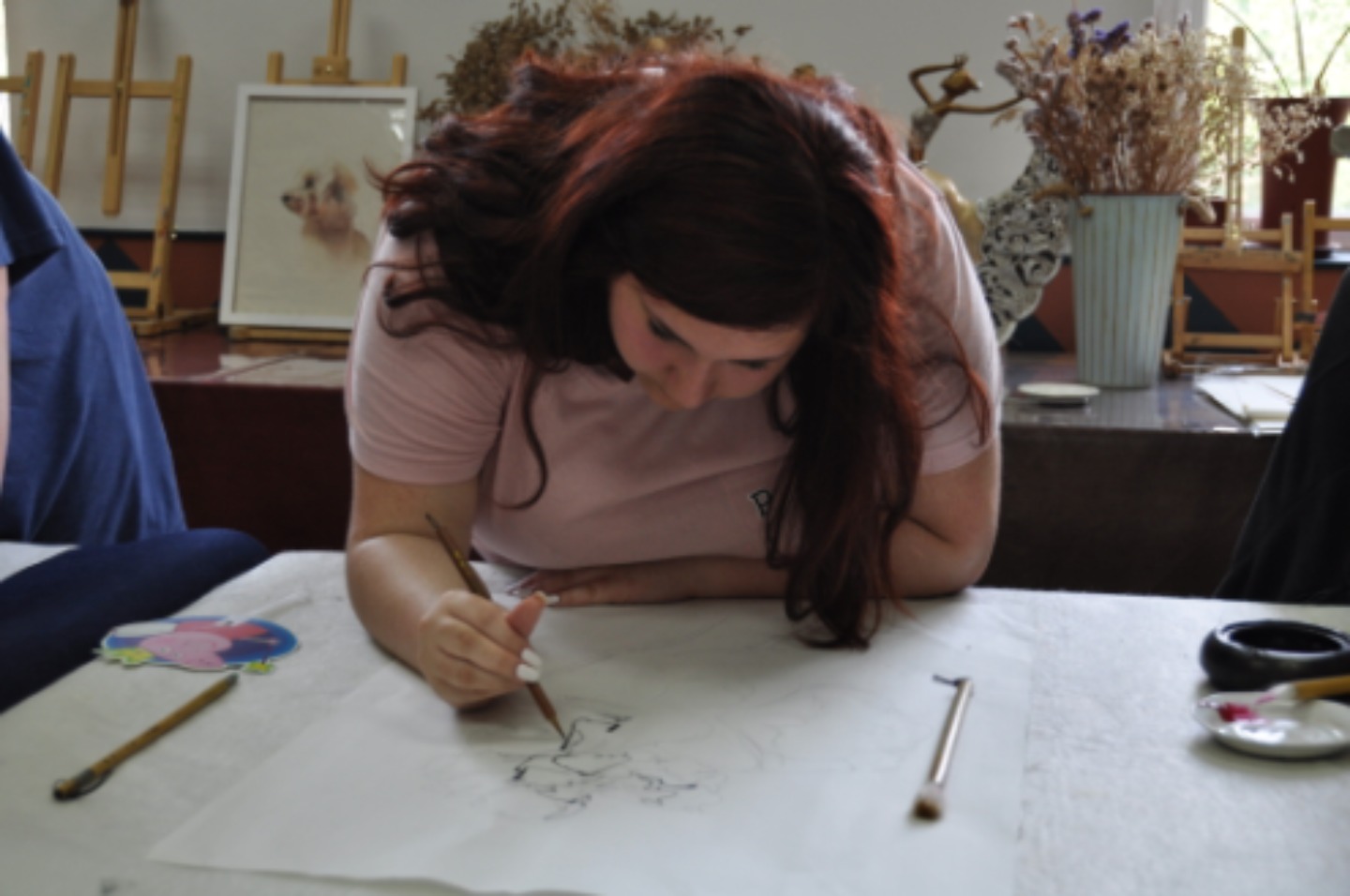 After a while, we arrived at the painting class. It was so interesting to learn about traditional Chinese painting. We had a choice to paint either mountains or a flower. All the paintings came out so amazing. After painting, they gave us tea and biscuits. When we left the painting class, we passed by Wumart again, and yes we all freaked out again over it. We stopped by a local market to grab snacks for the overnight train ride. We found really cool stuff like cucumber chips and pineapple Fanta. It was so different from American foods. We arrived at the train station shortly after, it took a while to get through all the lines, but after we went to Starbucks and a gift shop. As we boarded the train, we went to our different compartments to sleep. The train was so hot, a lot of us got little fans to keep us cool. Even though the ride was a struggle at first, bonding and laughing with everyone was worth the struggle.