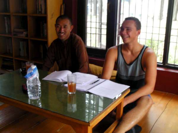 Today the group met with their Mutual Learning Partners again. Immediately my learning partner took me to the Dalai Lama’s temple. Our phones and cameras were taken away before entering. A crowd had formed around a couple of cars. In one of the cars, the Dalai Lama was sitting waving.