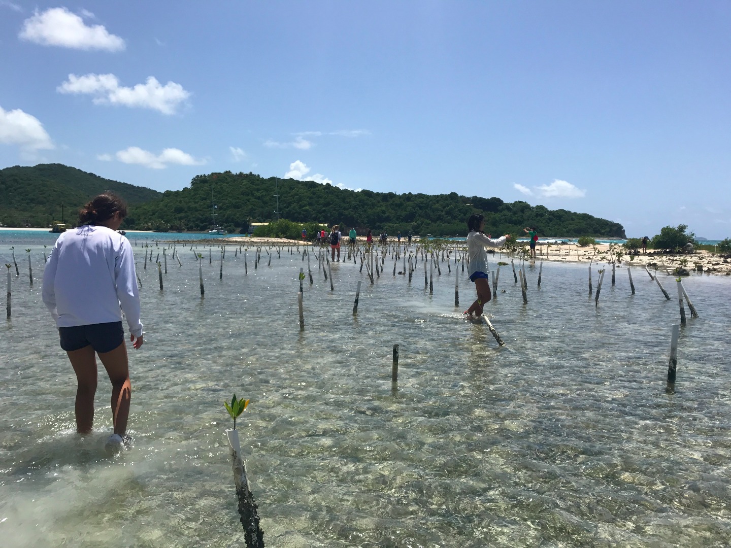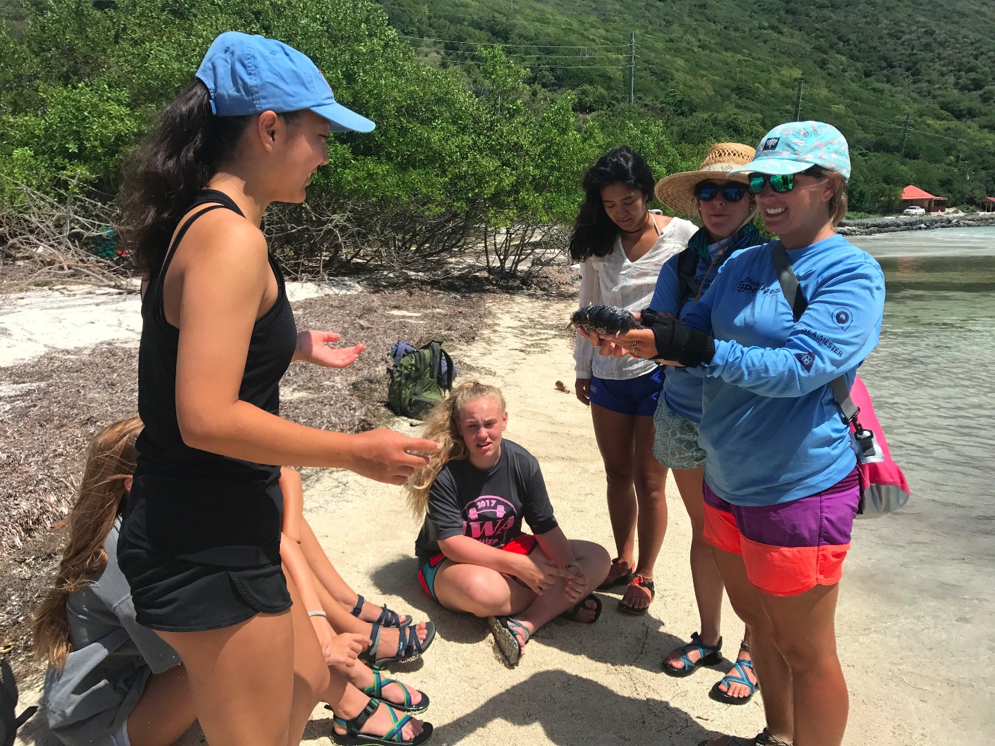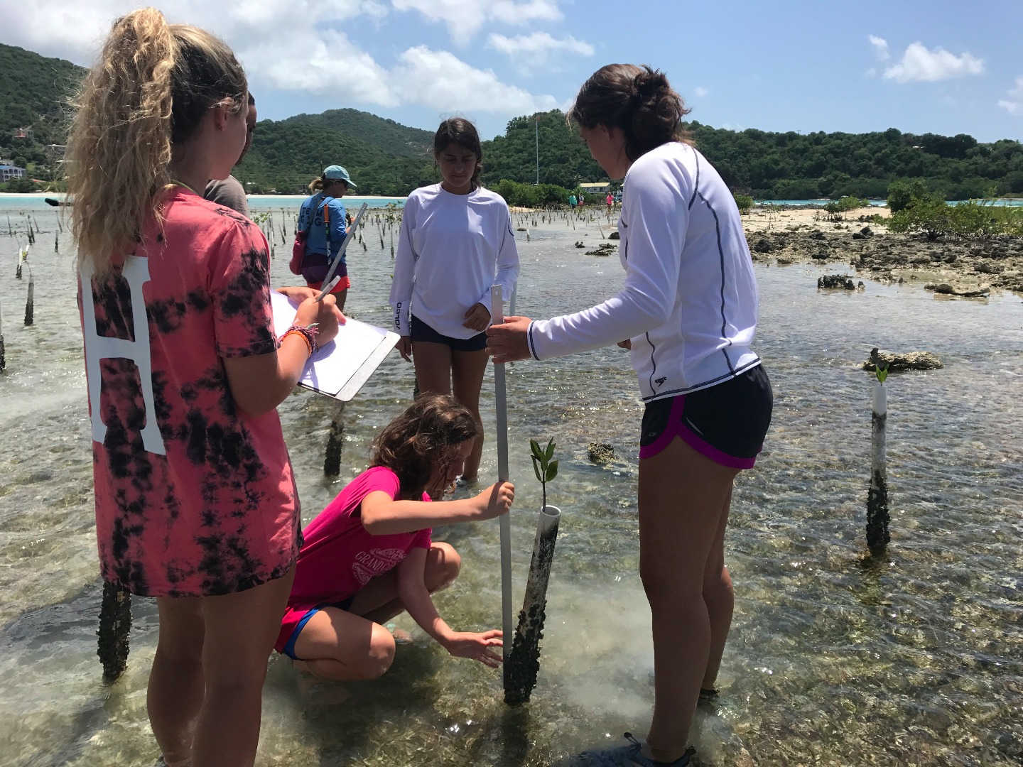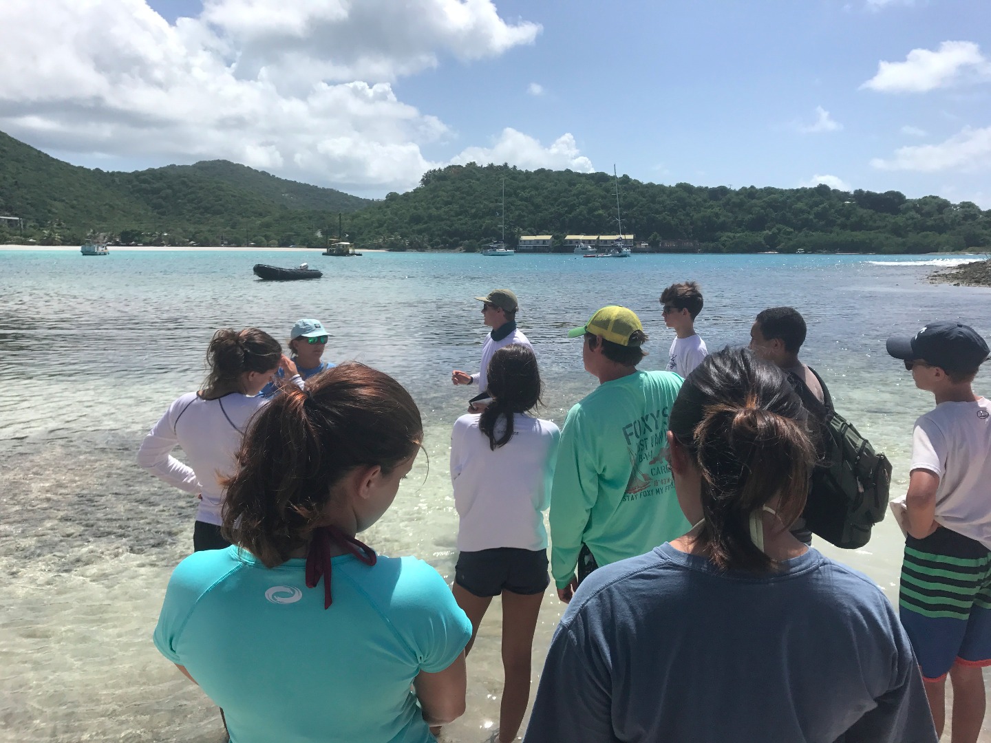 The day was started late with Elliot’s classic, delicious pancakes, which we all devoured quickly. We then rode the dinghy to Brandywine Bay where we measured and collected data on mangrove trees, which had been planted by previous Go Beyond students. Following a morning filled with hard work, we headed to Road Town where we ate lunch and had some time to shop. After, we sailed back to Brandywine Bay and Elliott took a few students back to the Mangrove site to take down coordinates on where they are located while the remaining crew members cleaned up the entire boat. We welcomed Zach, who boarded our boat to visit his fiancée, who is one of the staff on another boat. After taking a quick dip in the water, we sailed to Peter Island and crushed the Beez Chasers in a race. We showered and then were served Mexican Food to please our stomachs after a long days work.